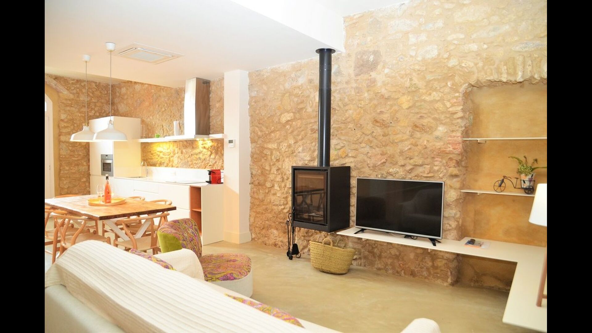 The holiday home has combined the authentic with the modern style, and the result is absolutely great. The house, which is originally from the 1780’s, mixes the traditional Catalan stone walls and antique tables with new designer furniture and equipment and all sorts of other modern facilities, so you get a real, authentic experience with all of today’s comforts.