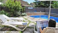 Der private Gartenist klein und gemütlichundistideal für eine Familieauf der Suche nacheinemprivaten Außenbereichund hervorragenden Einrichtungen.Es hat einen kleinenPool mitgroßenSonnenliegen,einen kleinenKinderspielplatz undeineüberdachte Terrasse, diemit einemGrillplatzverbunden ist. Eine perfekte Stelle, um die langen warmen Sommerabendezu genießen oder um ein wenigSchatten aufdie warmen Sommertagenzu haben.