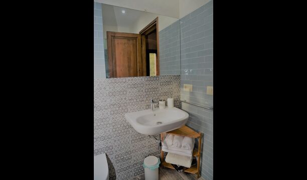 There are three bedrooms located up on the first floor. The first bedroom is a double room with a large double bed. It is also possible to set up an extra single bed in the bedroom, if you are more than 10 guests visiting. The next bedroom is a large triple room with three single beds. The third bedroom is also a triple room but with a double bed and a single bed. It is also possible to set up an extra bed in this bedroom. This bedroom also has the special feature of having a small balcony with the most stunning view looking out at the beautiful surroundings. There is also another very large covered terrace located on the first floor, with wooden benches and a small table. The last bedroom is located on the second floor with extra privacy. It is a very large bedroom with a double bed, and with the possibility of having another 2 extra beds set up. All of the bedrooms have ensuite bathrooms.