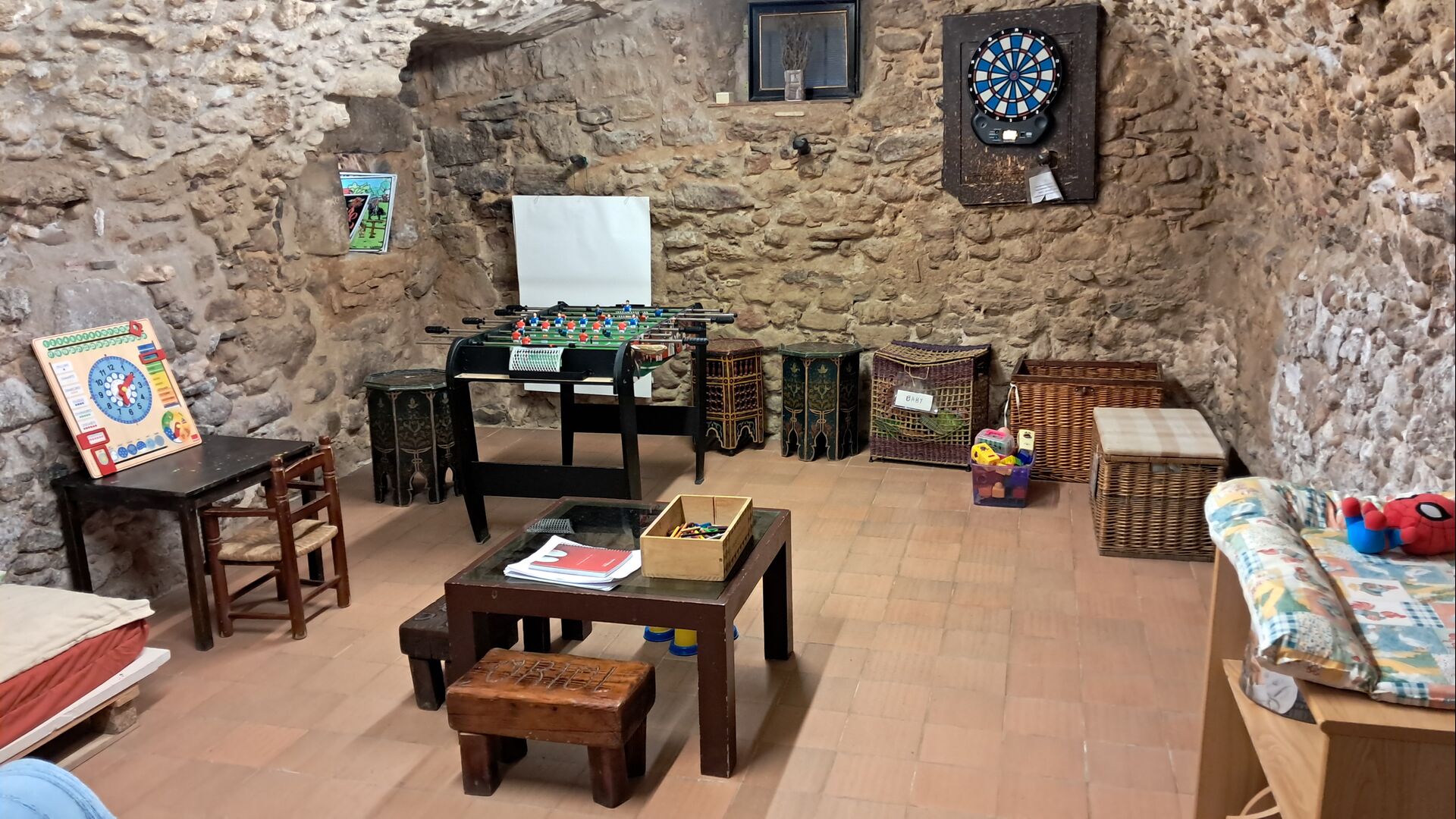 Darüber hinaus gibt es ein Spielzimmer, in dem sich die Kinder vergnügen können – kommt unter anderem mit einem Tischfußball-Setup.