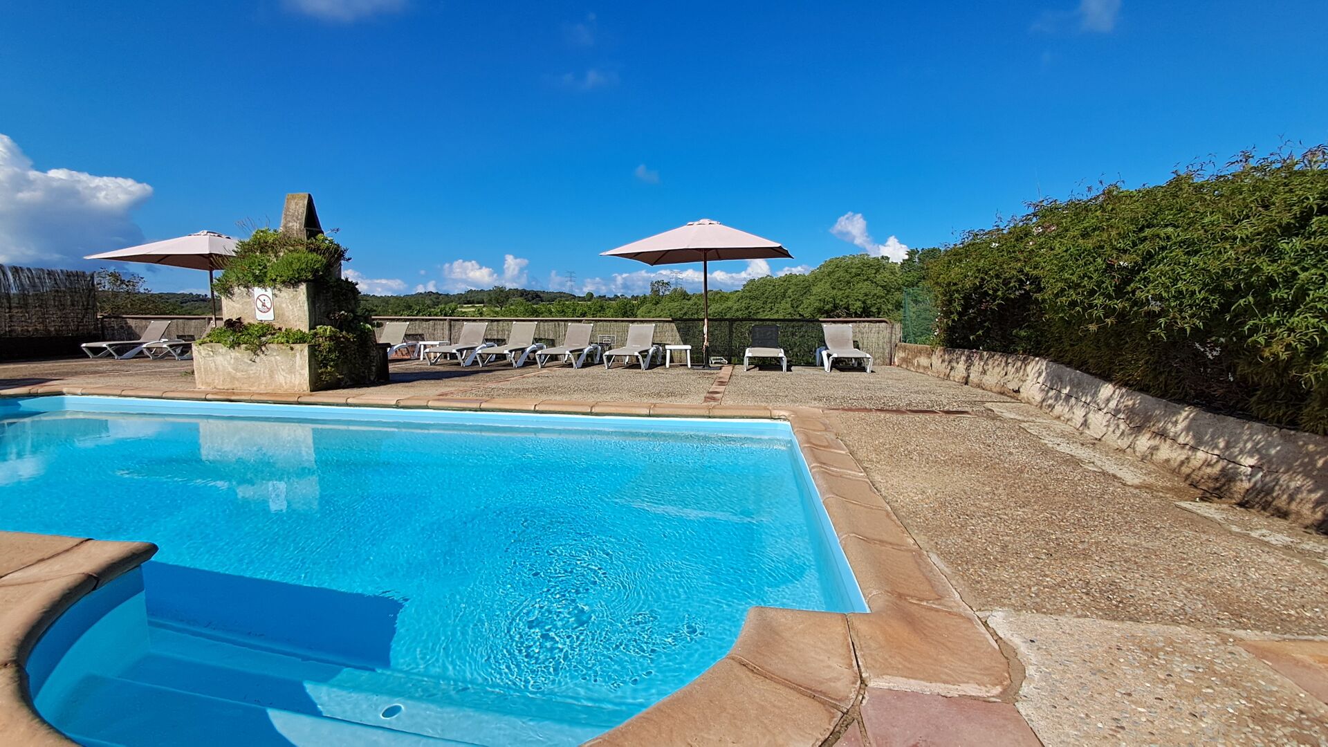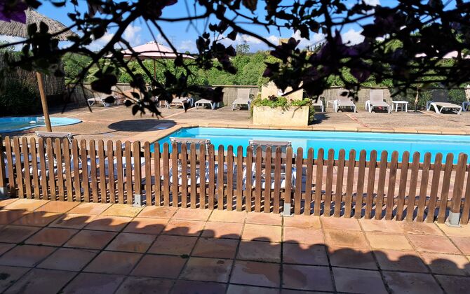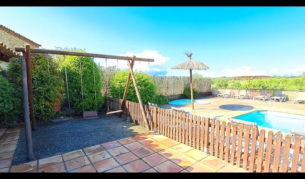 Eine davon ist dergemeinsame Gemeinschaftspool mit einem separaten runden Pool für die Kinder. Beide Pools liegen im selben Bereich, der eingezäunt ist. Es gibt auch mehrere Sonnenliegen zum Entspannen und Entspannen. Auf der anderen Seite des Zauns gibt es eine Schaukel für die Kinder.