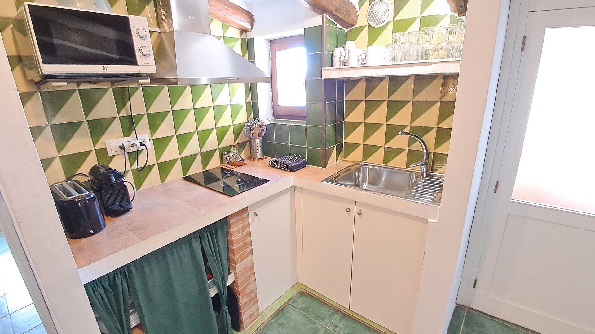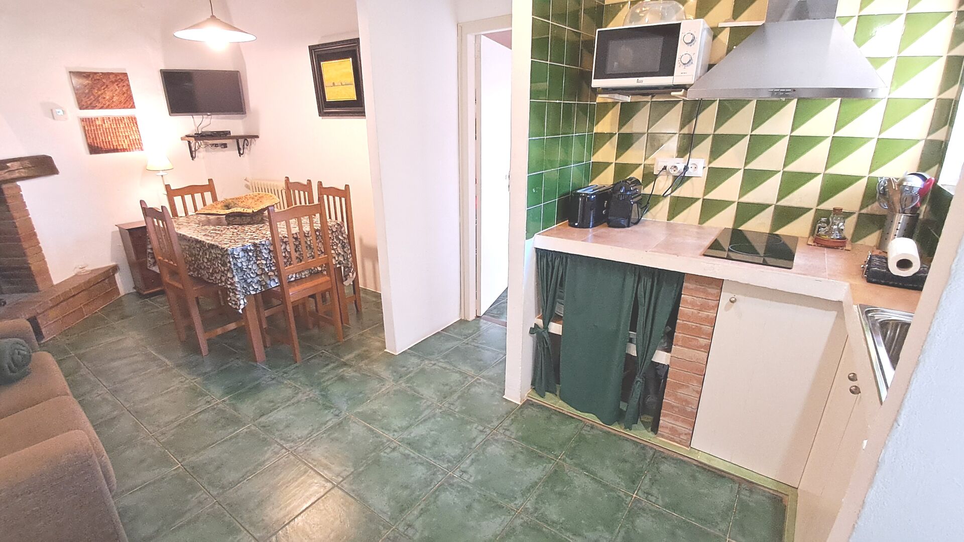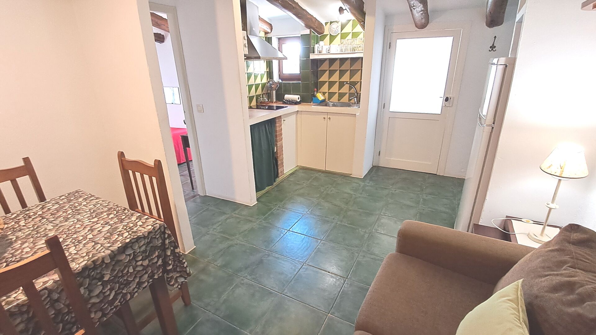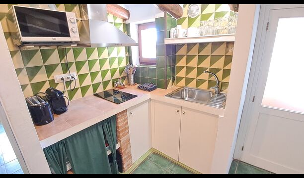 Can de Gato - El Rebost ist eine 60 m² Wohnung im ersten Stock des Bauernhauses der Unterkunft. Es besteht aus einer offenen, 17 m2 großen kombinierten Wohnküche. In der Küche finden Sie einen Kühl-/Gefrierschrank, einen Toaster, eine Nespresso-Kapselkaffeemaschine und eine Mikrowelle. Das Esszimmer ist klimatisiert. Außerdem finden Sie dort einen Sat-TV und einen Kamin.