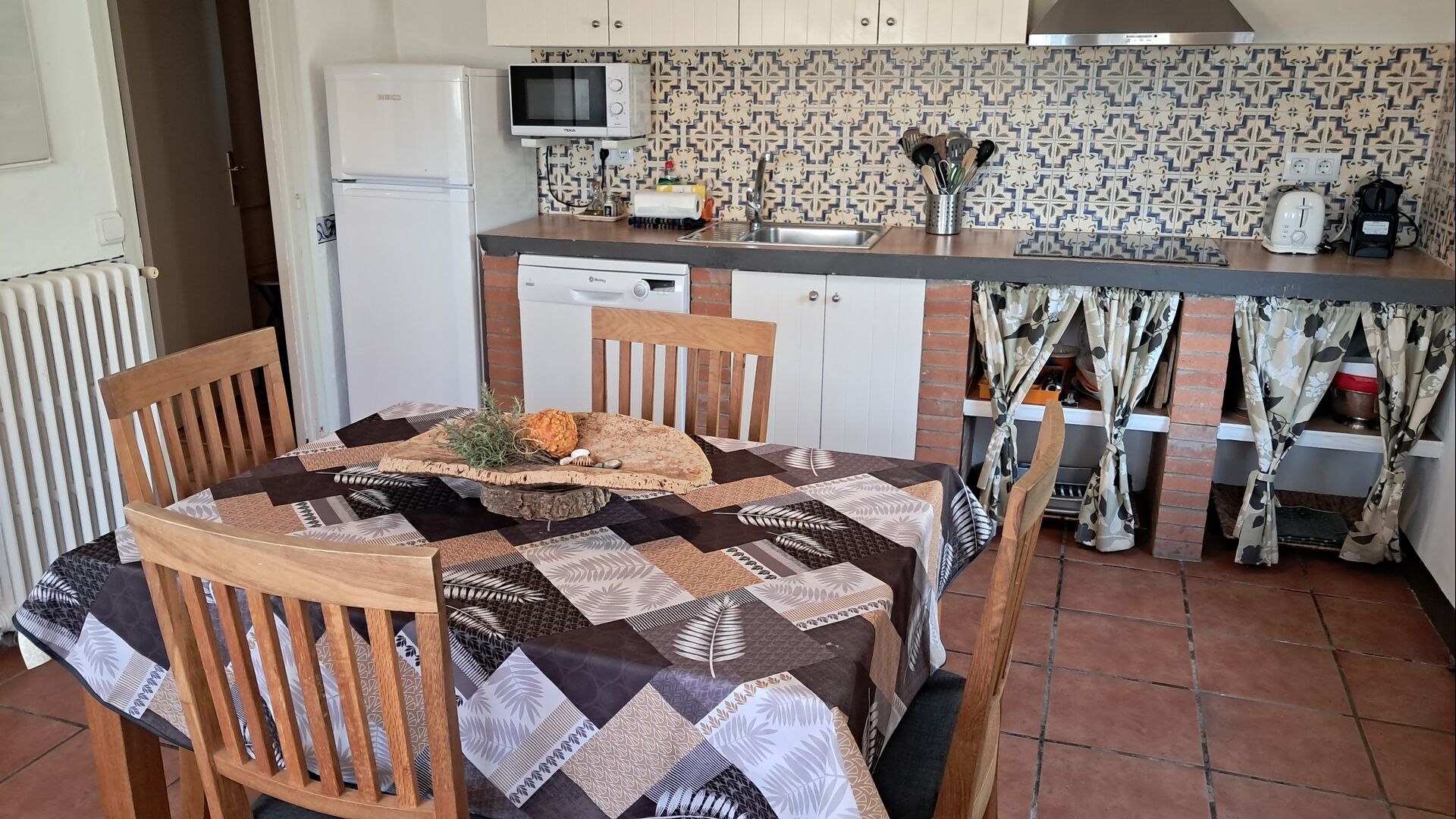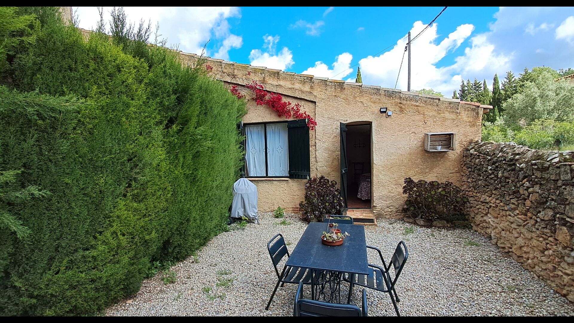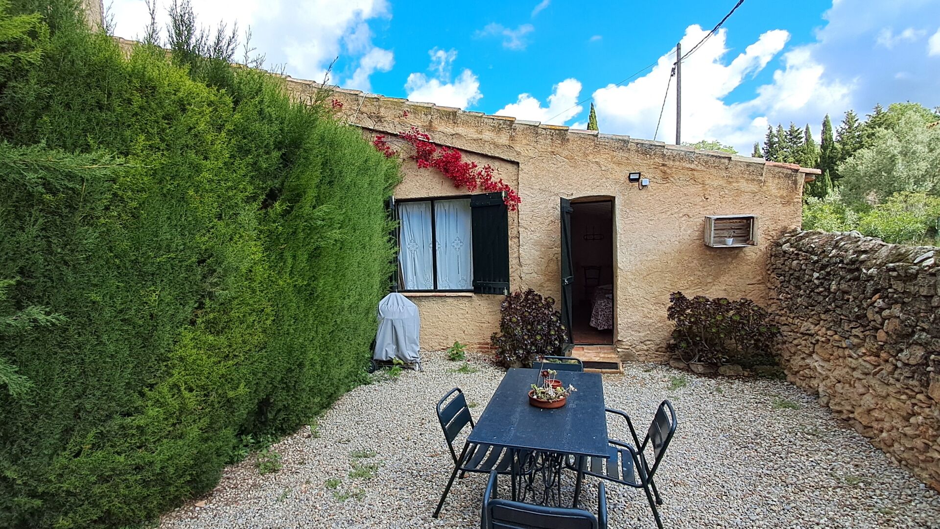 Die private Terrasse ist ideal, wenn Sie einen Hund mitbringen, da sie vollständig geschlossen und etwa 30 m2 groß ist. Sie eignet sich natürlich auch ideal als Terrasse mit Tisch und Stühlen und einer Propangasheizung, wenn Sie außerhalb der Saison kommen. Es gibt eine zweite Terrasse vor dem Eingang der Wohnung als Teil der Gemeinschaftseinrichtungen, aber ideal für diese Wohnung. An warmen Tagen spenden die Bäume Schatten.
