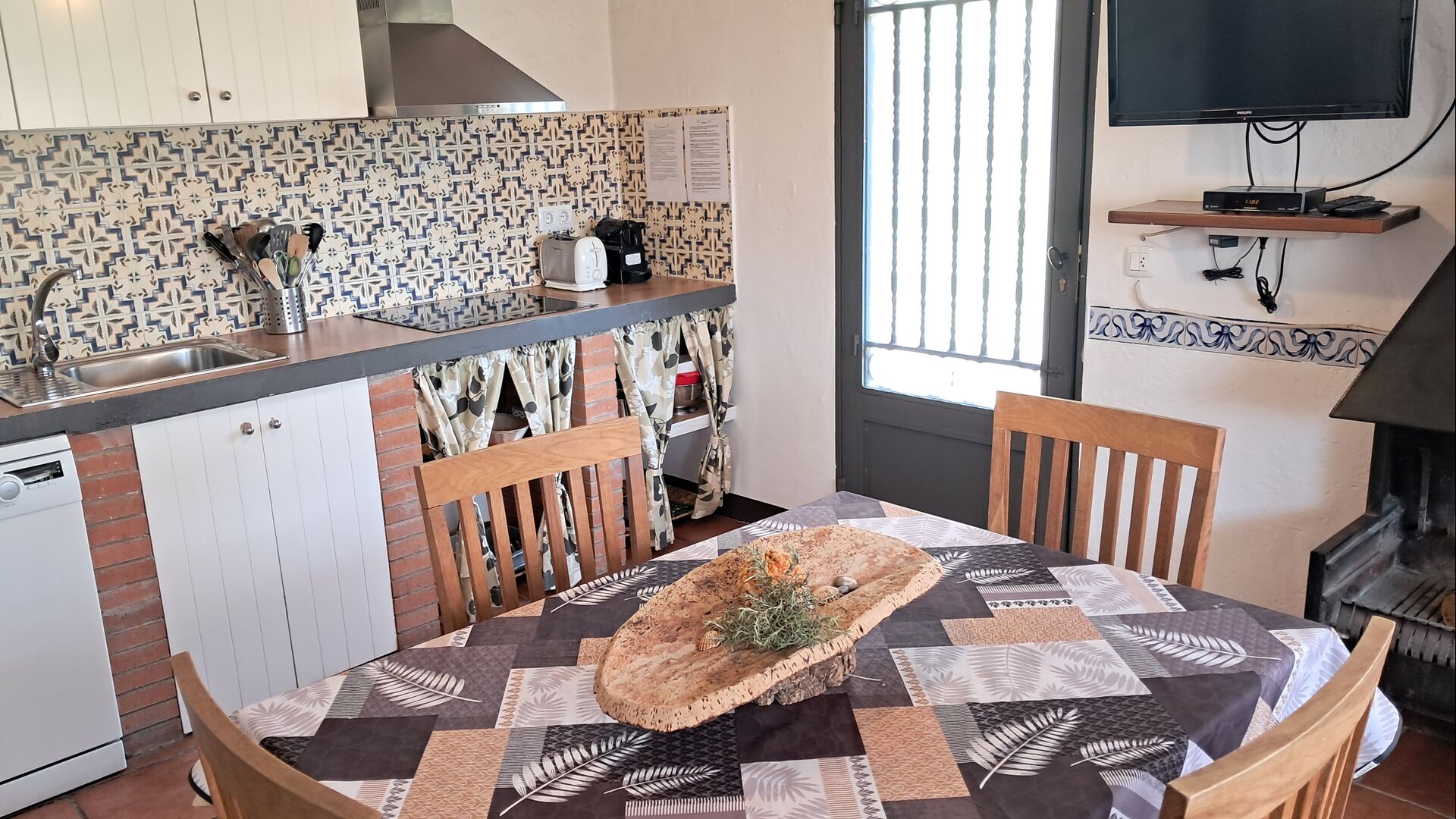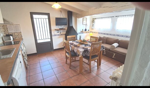 Die Küche ist in den Gemeinschaftsraum integriert. Sie ist gut ausgestattet mit Geschirrspüler, Kühl-/Gefrierschrank, Toaster, Kapselkaffeemaschine Nespresso, Mikrowelle und Cerankochfeld.