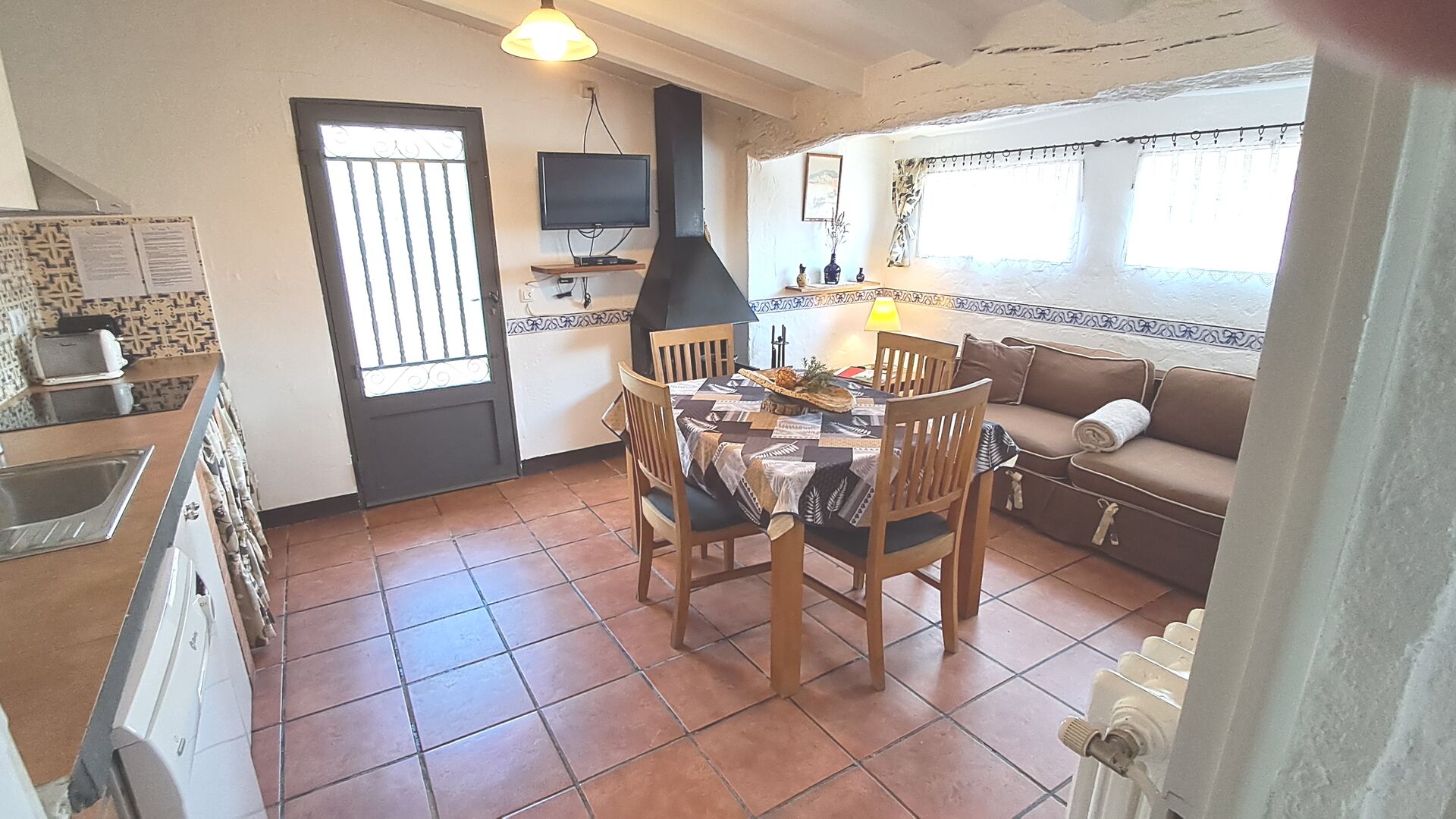 Der Gemeinschaftsraum verfügt über einen Esstisch, ein Sofa und WLAN. Satellitenfernsehen und Kamin.