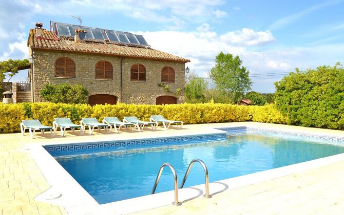 Der Garten hat zahlreiche Olivenbäume, Blumen, eine große Rasenfläche und es gibt auch einen Grillplatz. Der Poolbereich ist sehr gut. Er ist aus Sicherheitsgründen eingezäunt und verfügt über einen großen Swimmingpool von 12 x 6 Metern, der für ein Ferienhaus recht groß ist. Der Pool hat römische Stufen, was praktisch ist, wenn Sie mit kleinen Kindern reisen. Der Poolbereich ist außerdem mit Sonnenschirmen und vielen Sonnenliegen ausgestattet.
