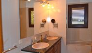 Zurück im ersten Stock finden Sie auch die gut ausgestattete Küche, offen zum Esszimmer und mit direktem Zugang zur Außenterrasse. Von der Terrasse führt eine Treppe direkt in den Garten und zum Poolbereich, sodass Sie keinen Umweg um das Haus machen müssen.