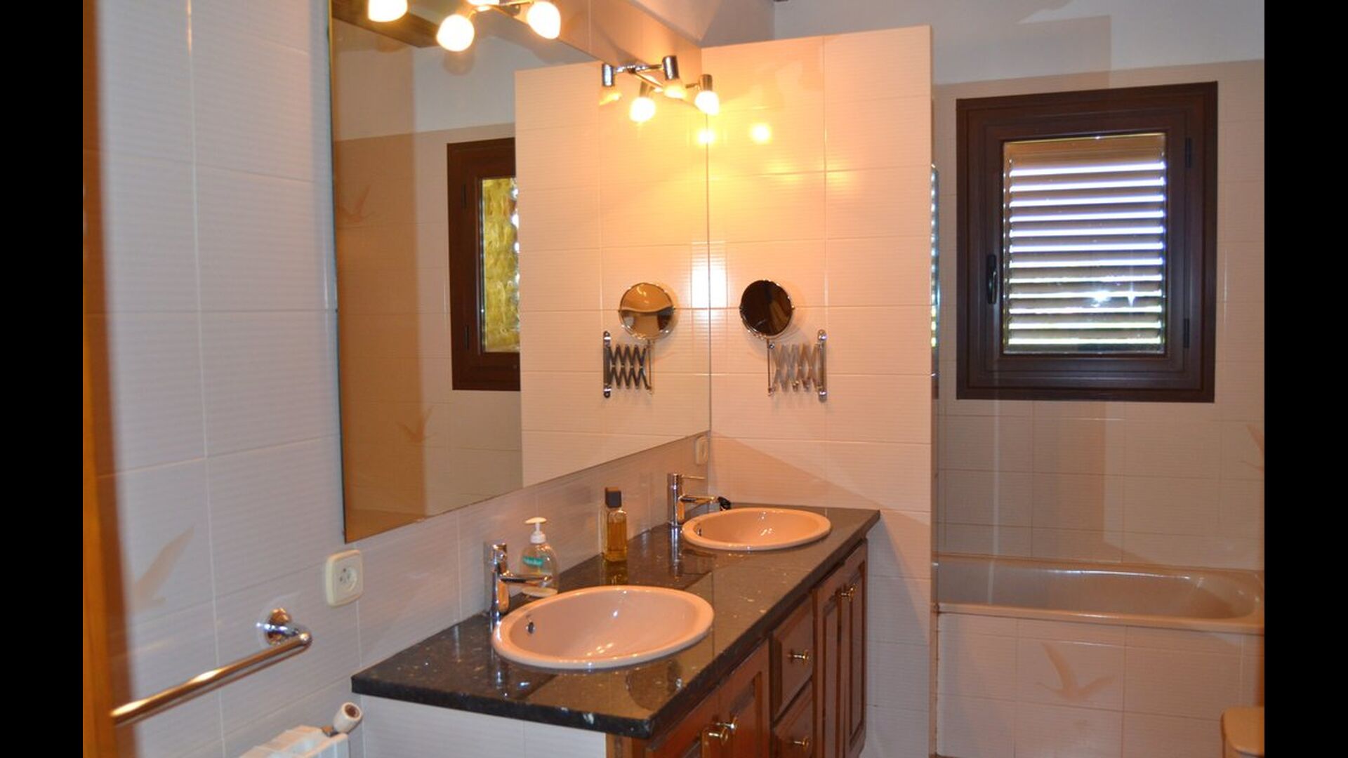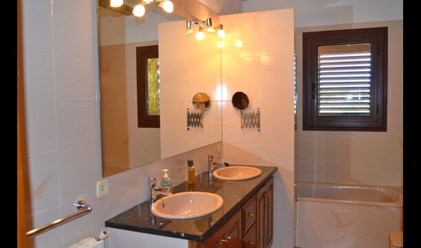 Das Haus liegt ohne Nachbarhäuser und von der Terrasse im ersten Stock oder vom Poolbereich aus haben Sie einen herrlichen Blick auf die schöne Umgebung. Das Ferienhaus verfügt über 5 schöne Doppelzimmer (4 mit Doppelbetten und 1 mit zwei Einzelbetten) sowie 2 Einzelzimmer, alle im ersten Stock, wo ein Gemeinschaftsraum Zugang zu den Schlafzimmern und den 3 Badezimmern bietet. Im zweiten Stock gibt es einen Chill-out-Bereich mit zwei Sofas an einem Ende und einem Billardtisch am anderen Ende.