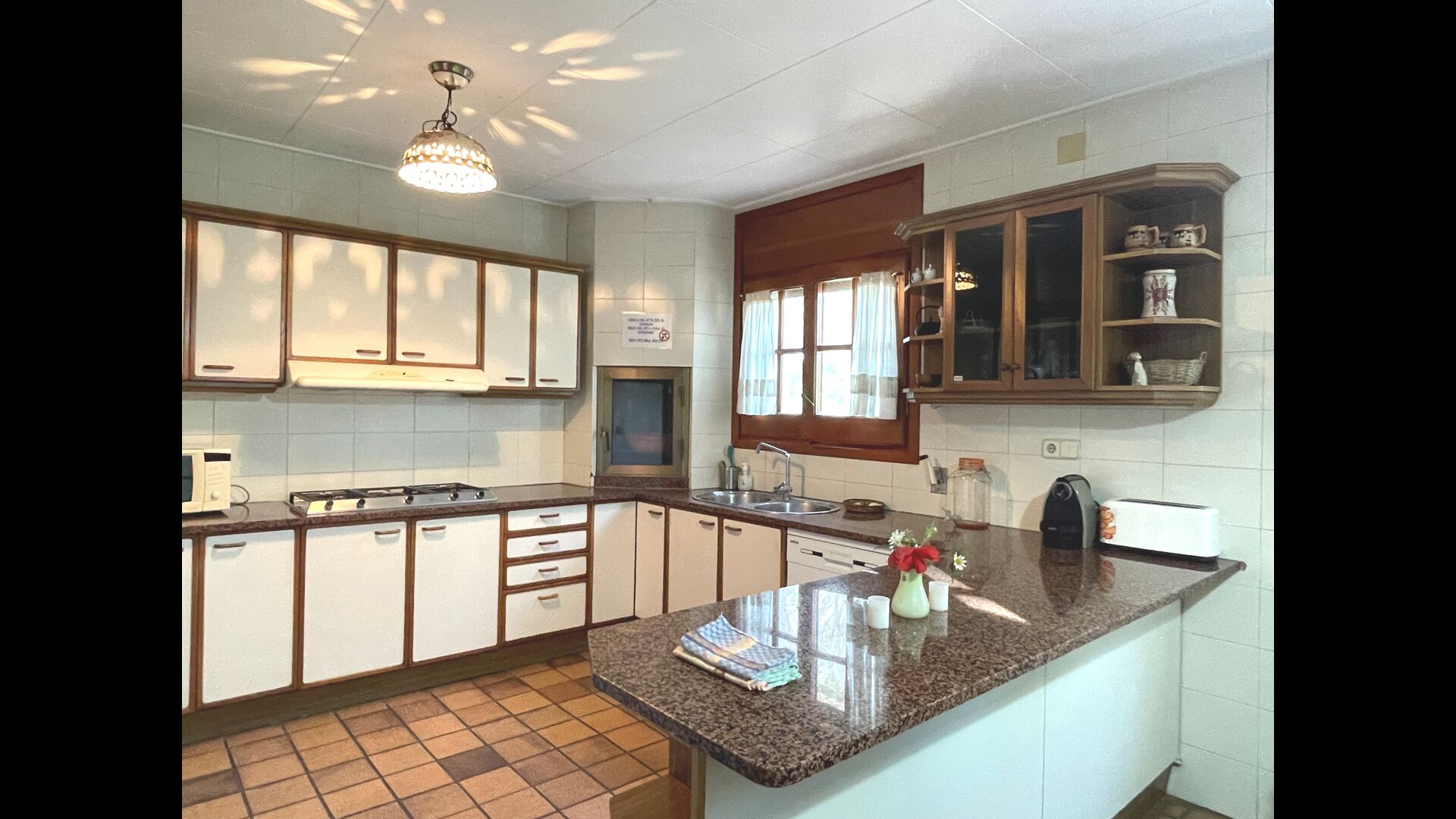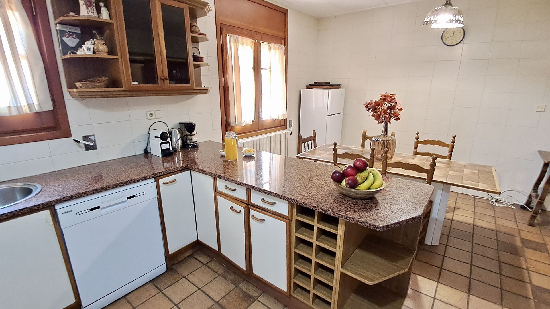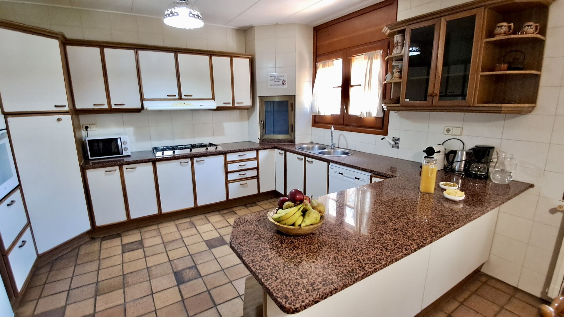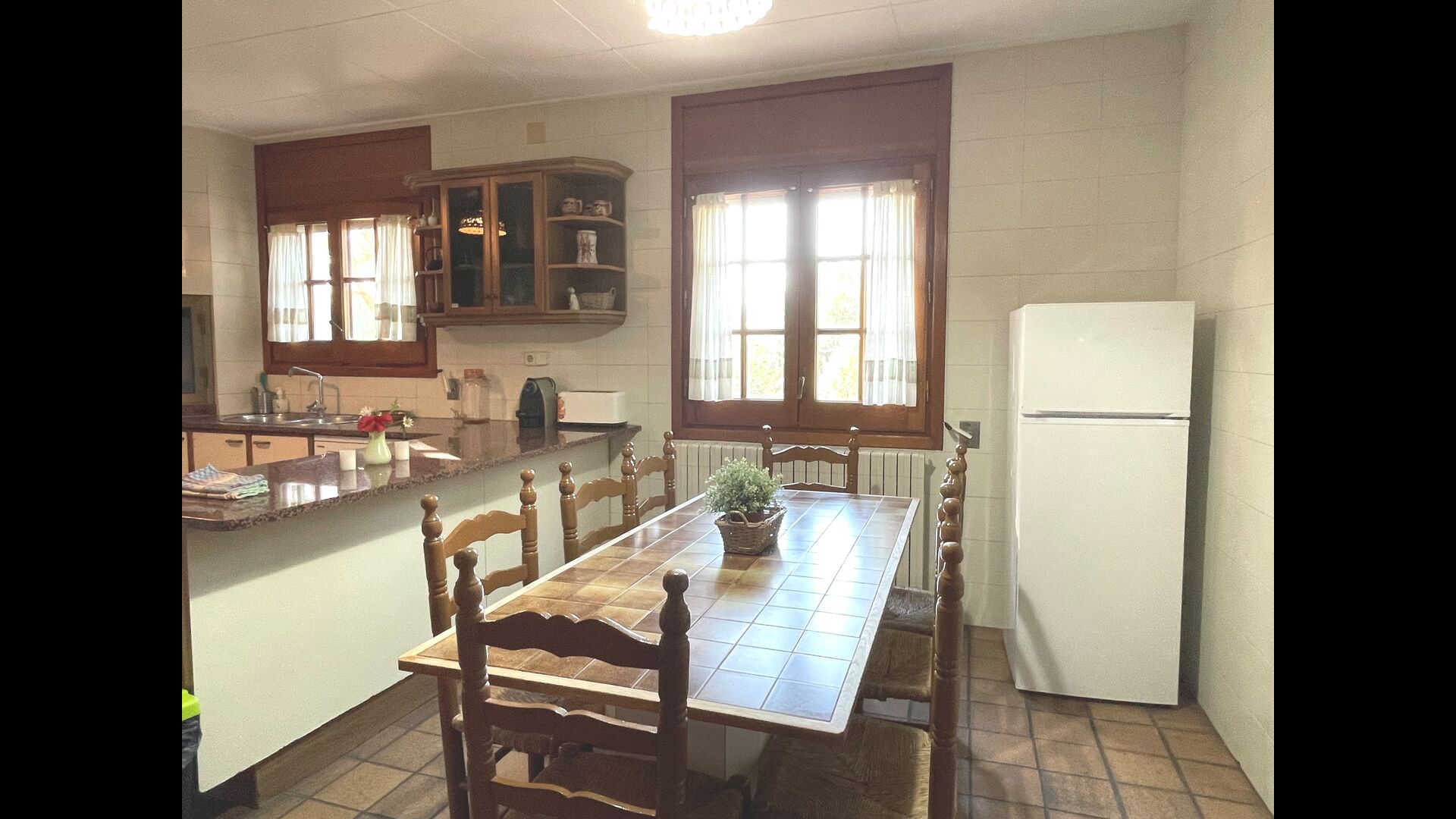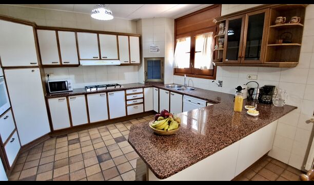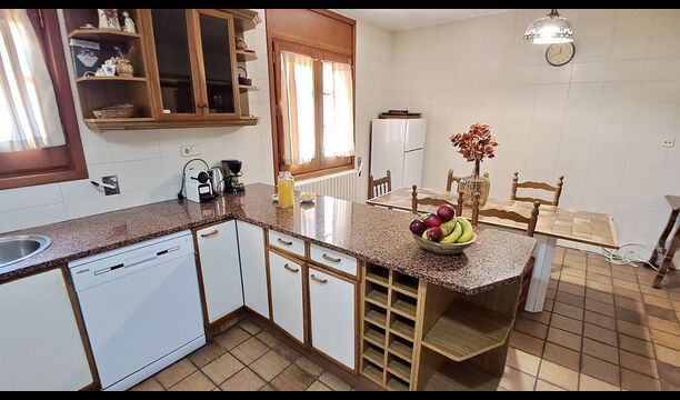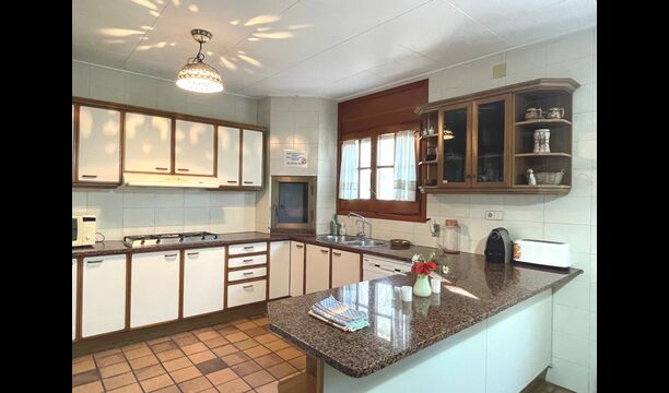 Die Küche befindet sich direkt daneben, so dass Sie vonder Küche aus bequem zum Essbereich, zum Außenterrassenbereich mit Blick auf den Golfplatz und zum Poolbereich gelangen. Die Küche ist sehr gut ausgestattet mit 2 Kühlschränken, Herd, Kochplatten, Geschirrspüler, Nespresso, Mikrowelle, Toaster usw. Außerdem gibt es einen kleineren Essbereich, ideal zum Frühstück.