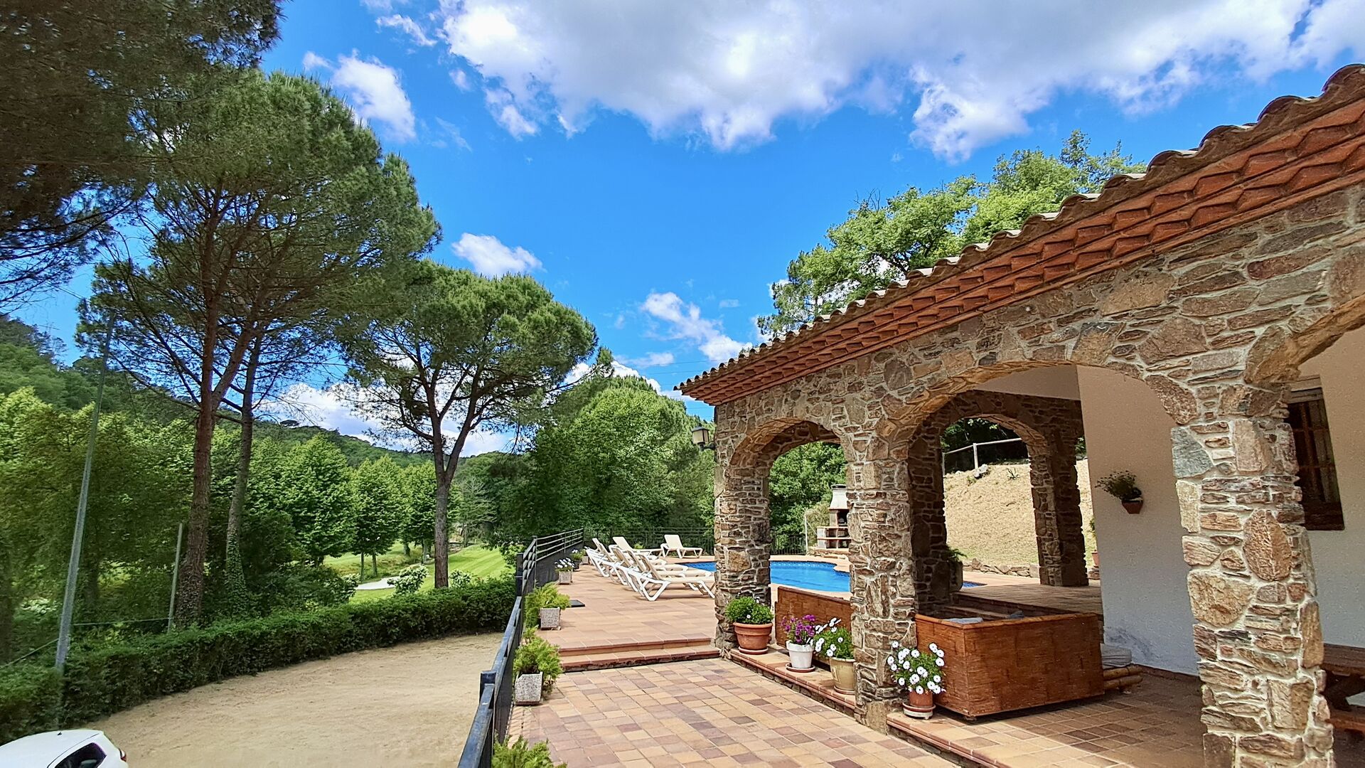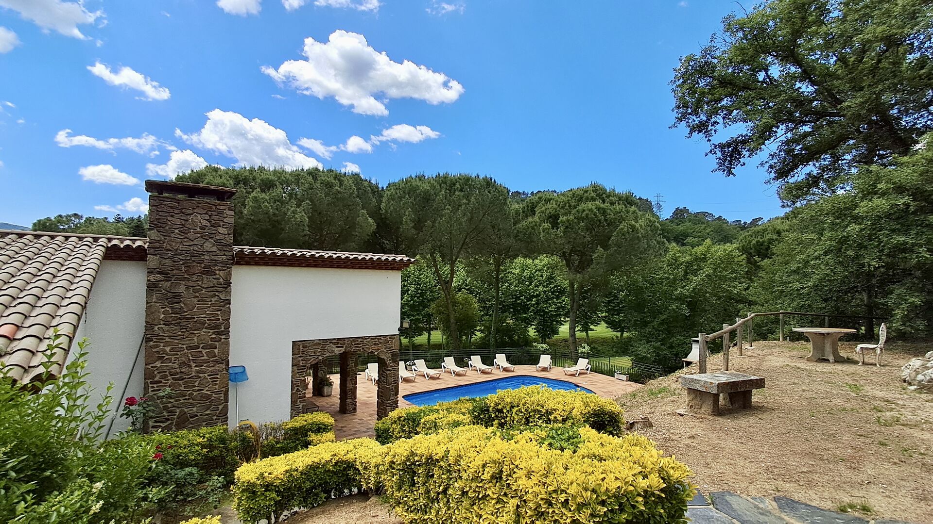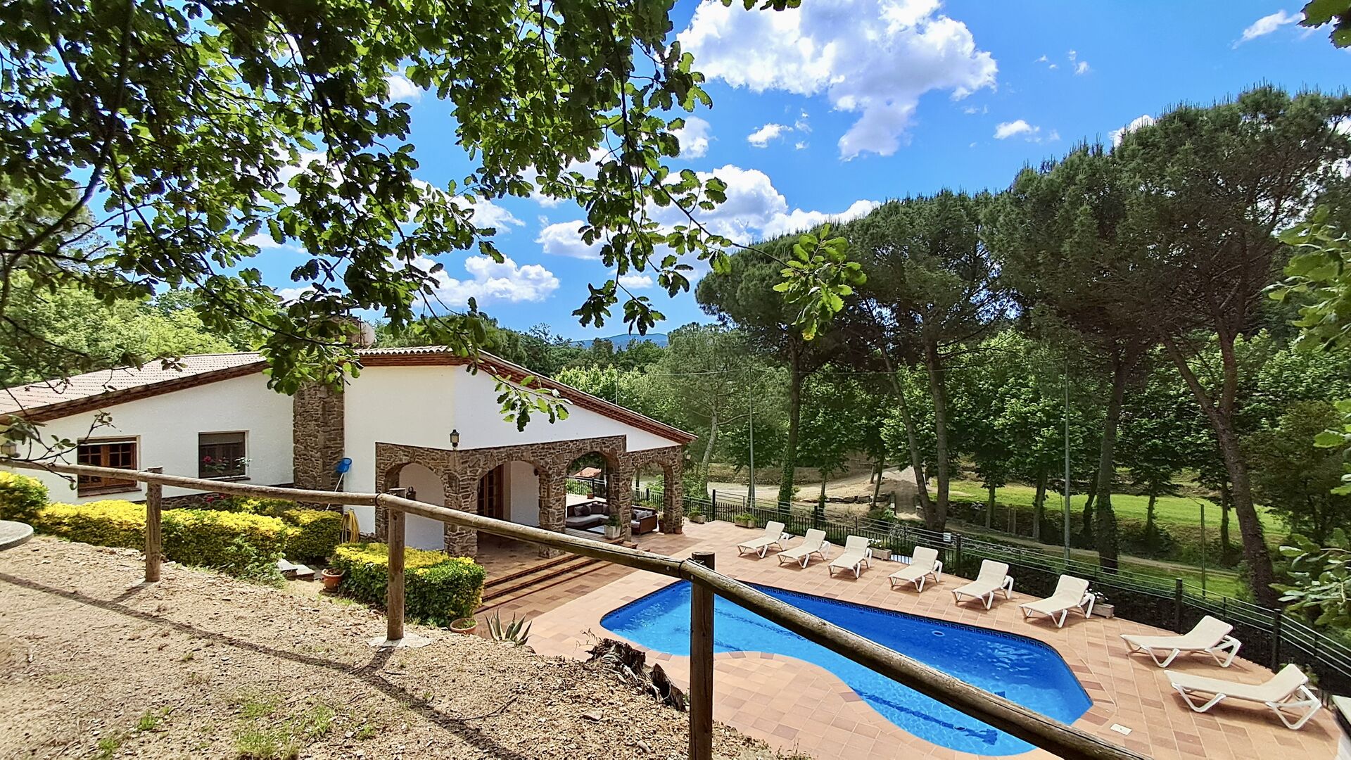 Casa Cabet Nova bietet ein gut integriertes Ferienhaus mit dem Golfplatz als einzigem Nachbarn und liegt etwas unterhalb des Hauses. Außerdem sieht man nur bewaldete Berge, was eigentlich erstaunlich ist, da die nächste Stadt und der Bahnhof nur 5 km entfernt sind. weg. Von hier aus haben Sie auch Zugang zur Autobahn AP-7, sodass Ausflüge nach Girona (40 Minuten), Barcelona (50 Minuten) und zu den Stränden der Costa Daurada (35 Minuten) sehr einfach sind. Natürlich gibt es auch einige sehr schöne Spaziergänge in der Natur.