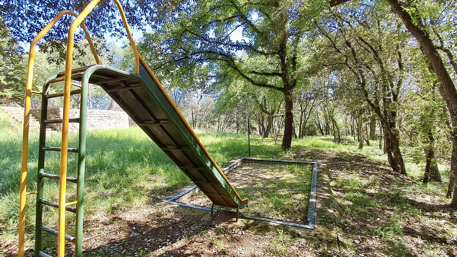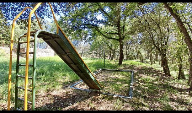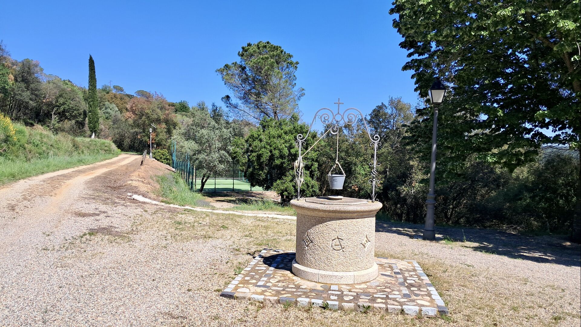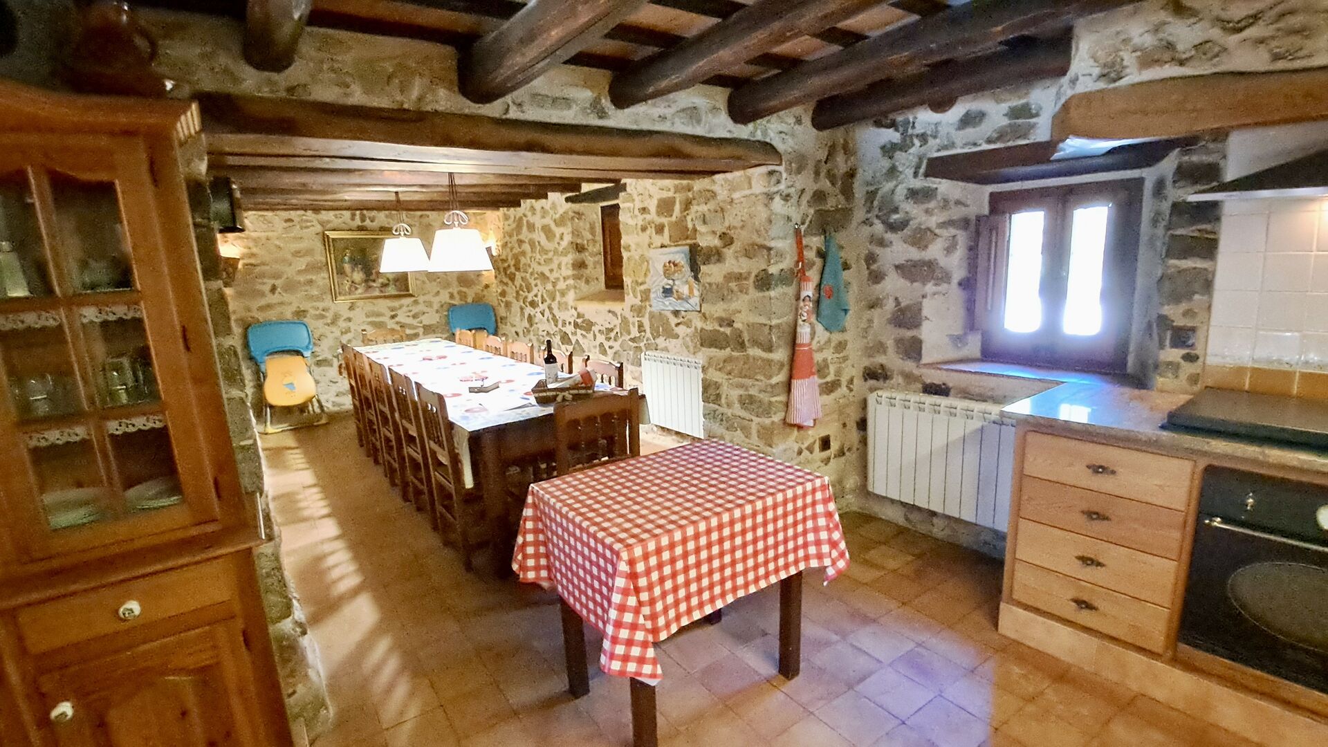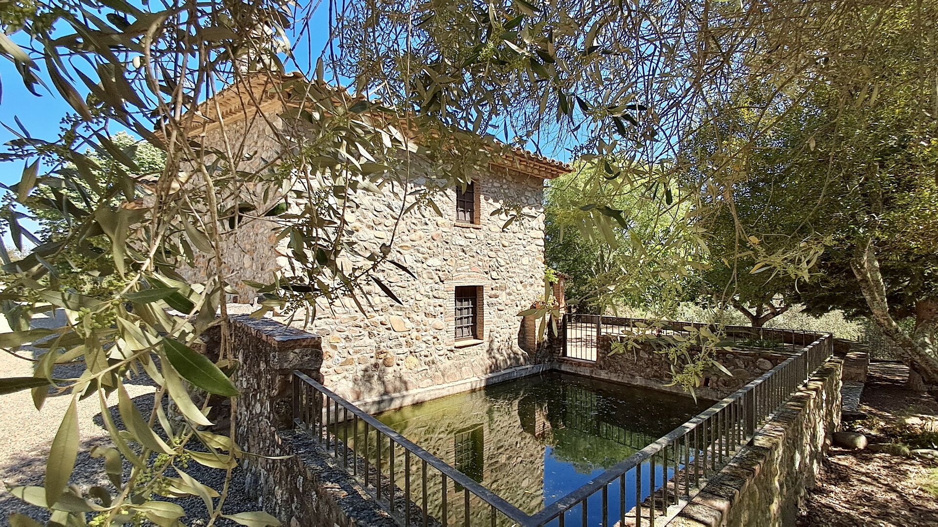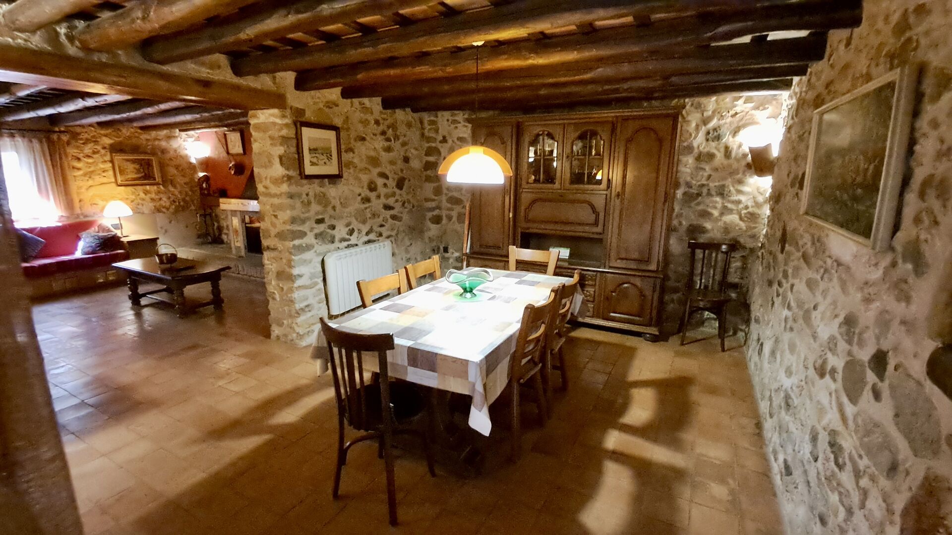 Hier werden die Gäste von zwei riesigen Zypressen nahe dem Eingang des Hauses begrüßt. Vor langer Zeit war dies ein Signal für Fremde, dass das Haus eine Mahlzeit und ein Bett zum Schlafen anbot (nur eines bedeutete, dass man gerne eine Mahlzeit bekommen durfte). Der vordere Terrassenbereich ist groß und an der Seite des Hauses befindet sich ein geräumiger überdachter Grillplatz mit Außenküche und einem schönen Blick über das Tal.