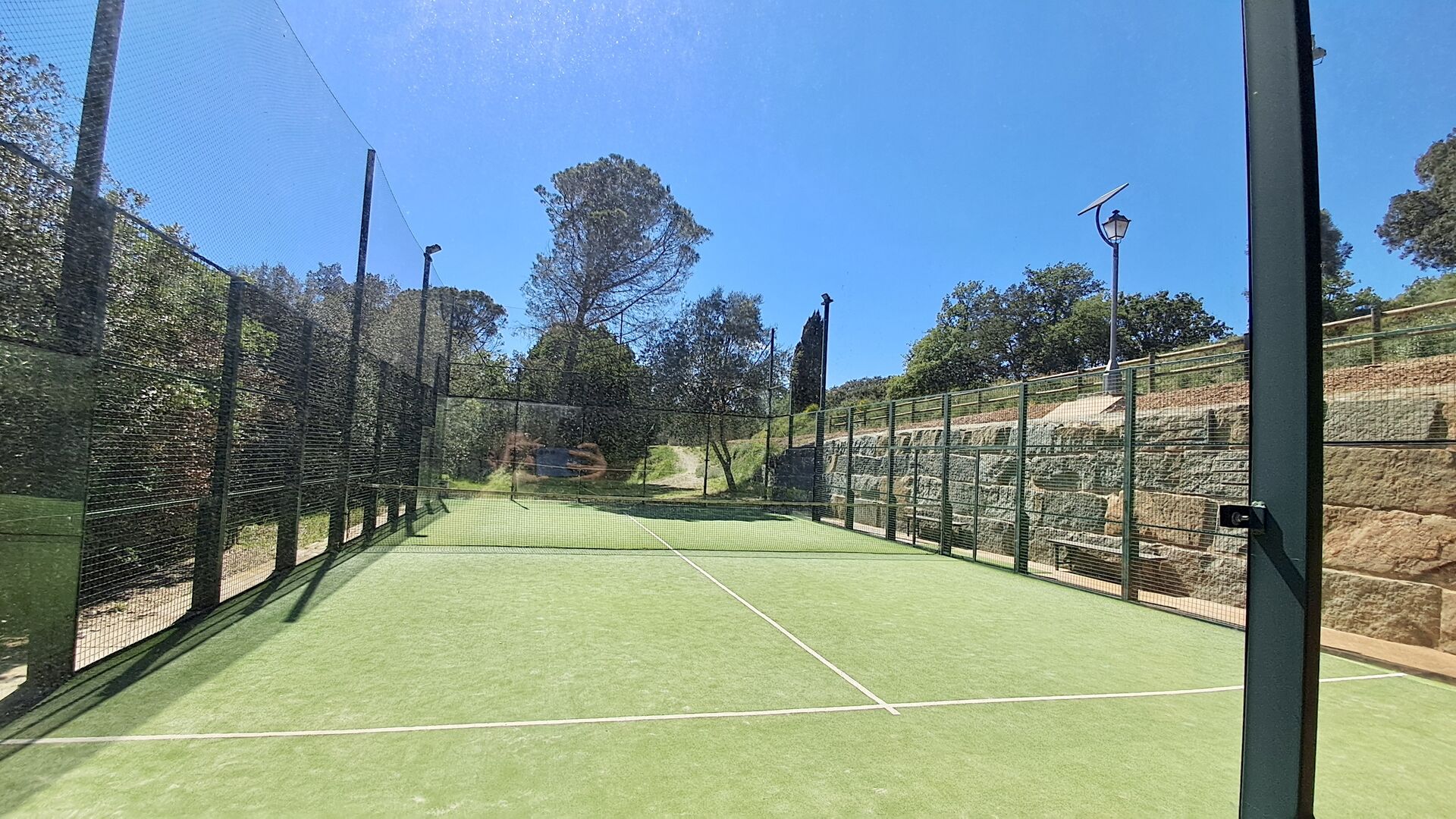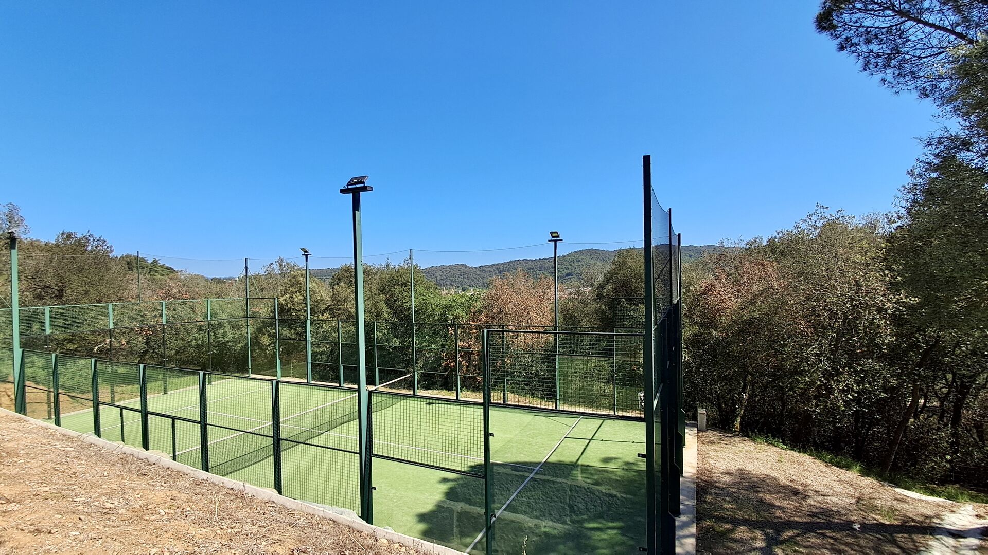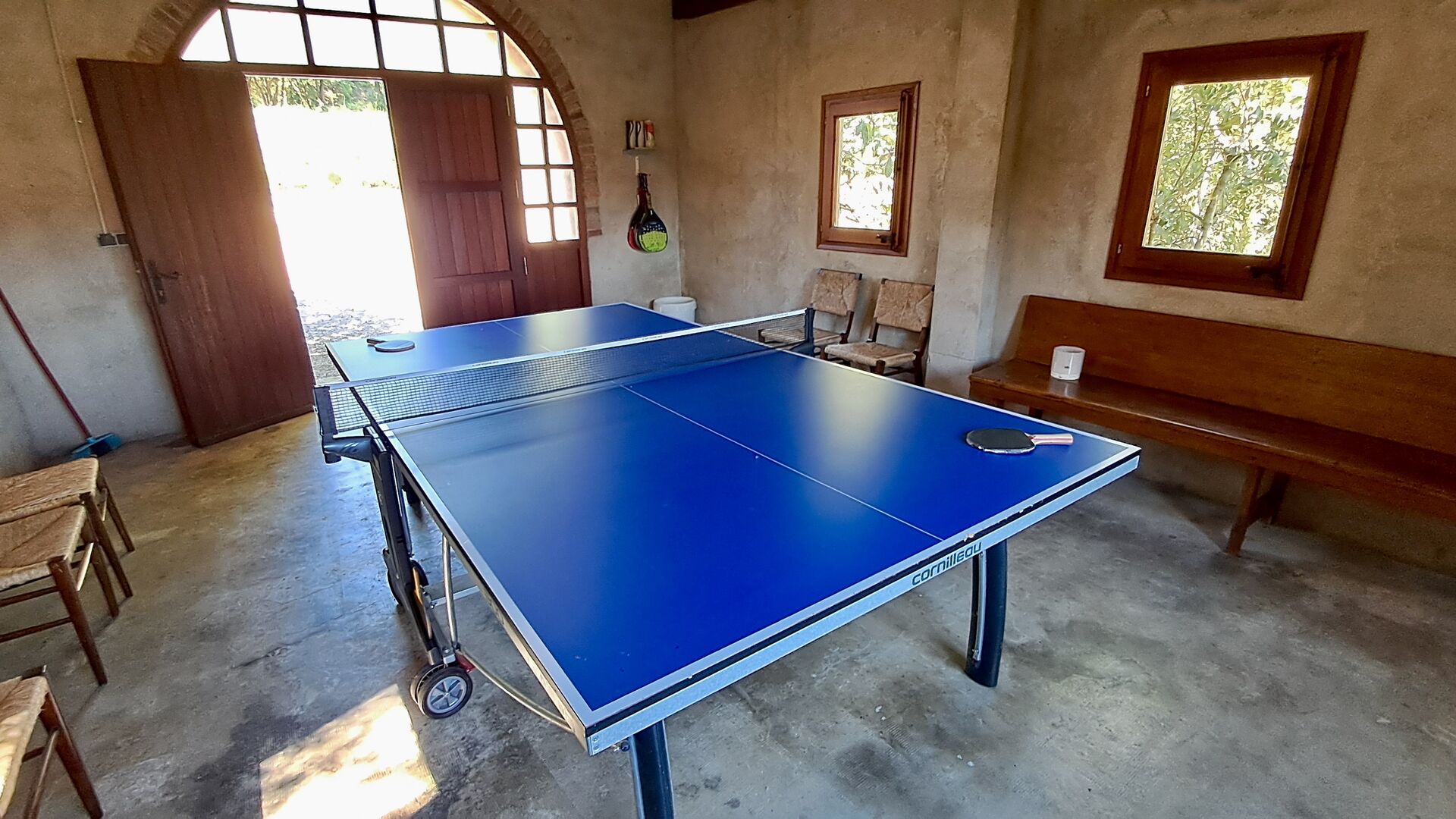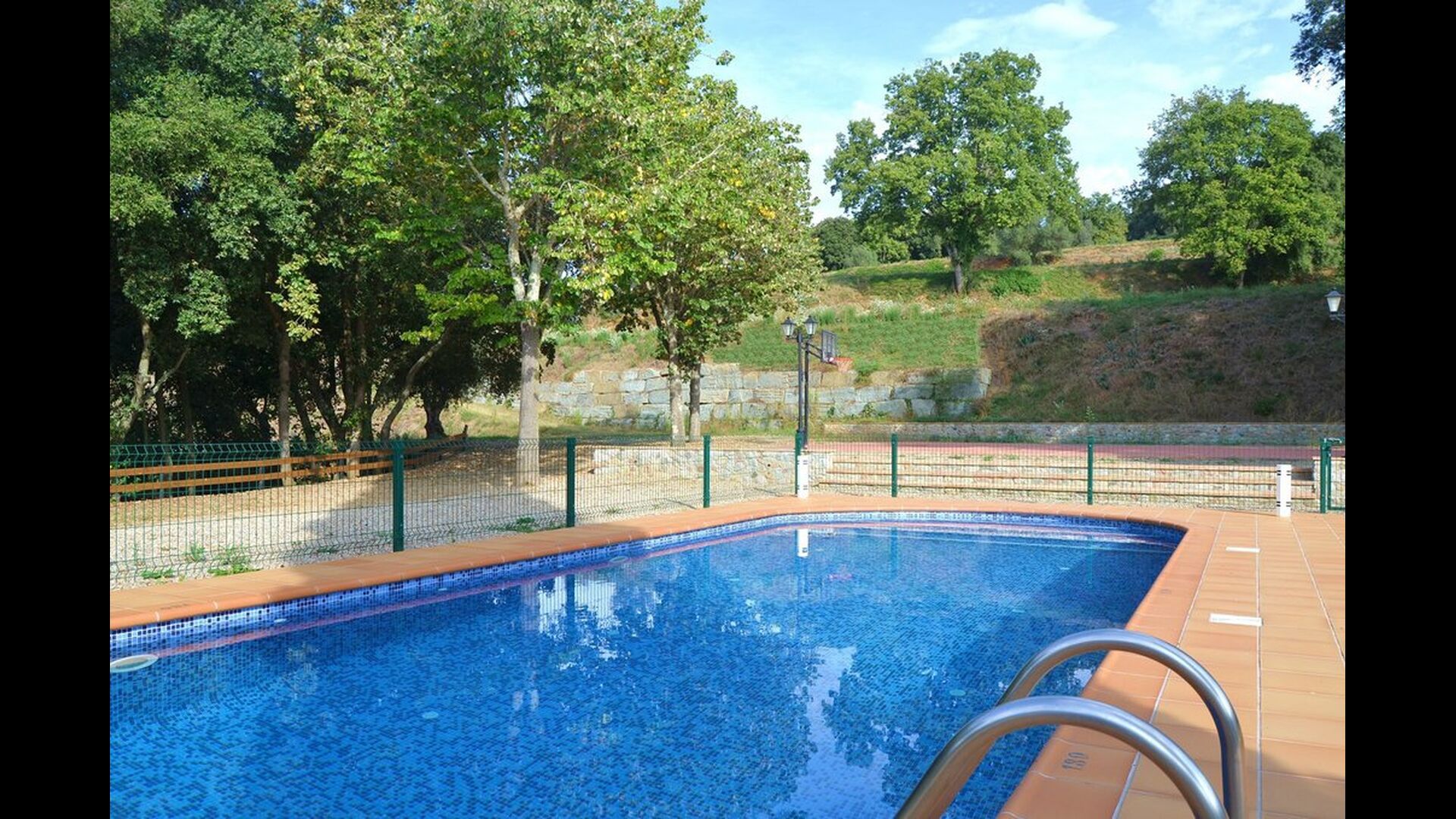 Der Garten verfügt über einen schönen eingezäunten Poolbereich mit vielen Liegestühlen und hier gibt es auch einen Bereich zum Fußball- oder Basketballspielen. An einem kleinen Häuschen im hinteren Teil ist eine Tischtennisplatte und eine kleine Sitzecke aufgestellt. Der gesamte Außenbereich ist riesig und die Aussicht hier ist atemberaubend und von hier aus kann man wirklich die Stille und die atemberaubende Natur genießen.