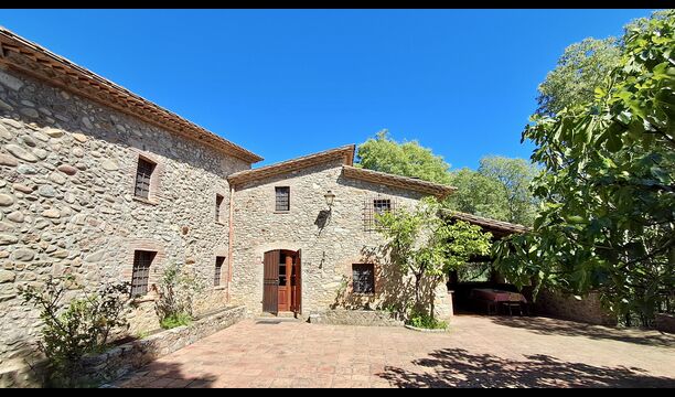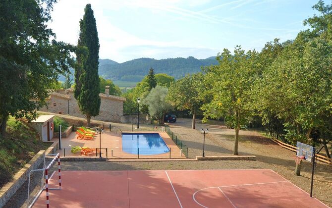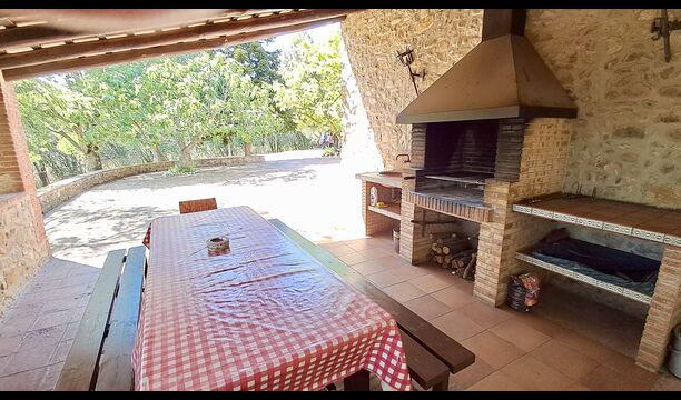 Es ist kaum zu glauben, dass ein schönes Haus wie Casa de Cuaña nur 7 km entfernt liegt. aus Girona, der zweitgrößten Stadt Kataloniens. Casa de Cuaña, ein Ferienhaus für 12 Gäste, liegt in einer hügeligen Gegend, umgeben von Bergen und Wäldern mit dem Tal Vally Bescanó. im Hintergrund. Das nächste Dorf mit Supermarkt und Geschäften ist 4 km entfernt. weg.