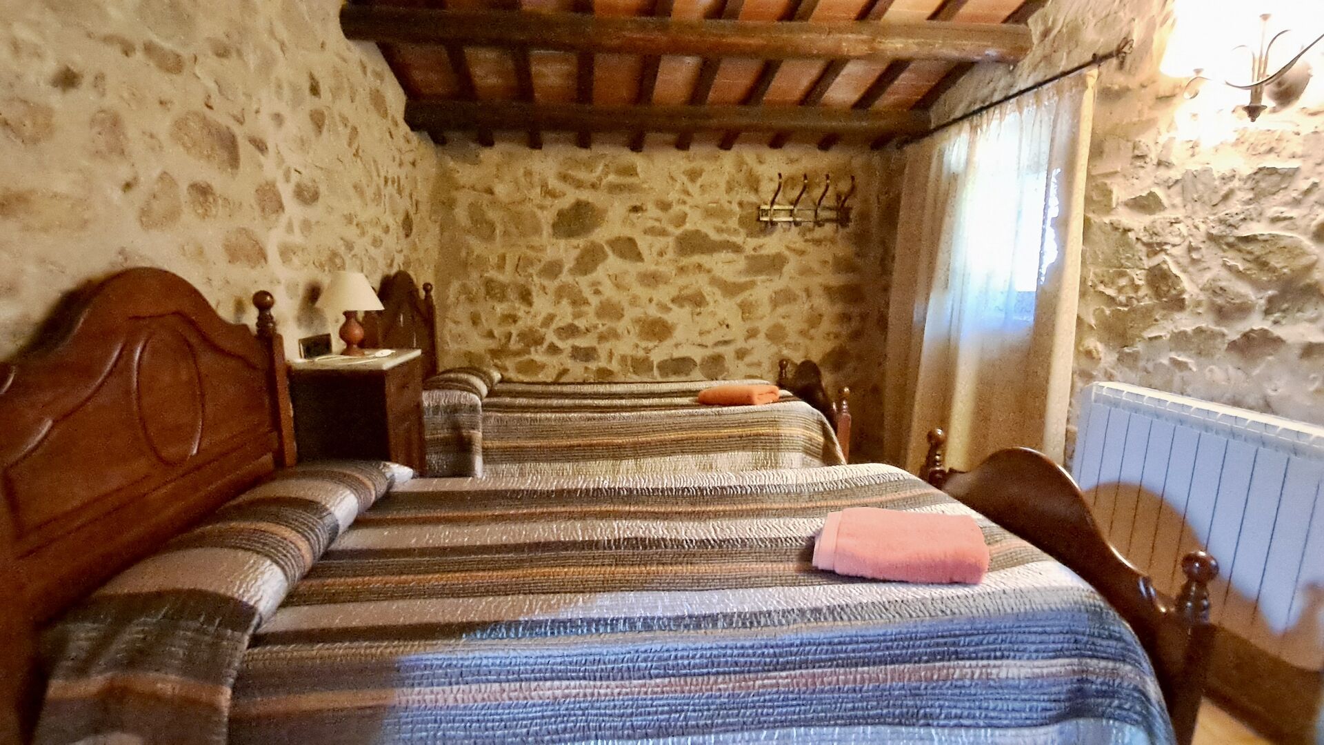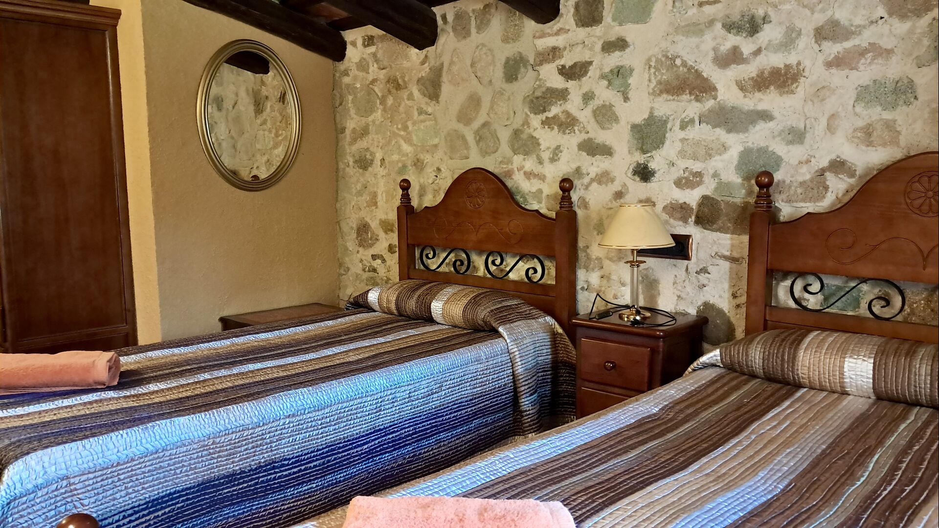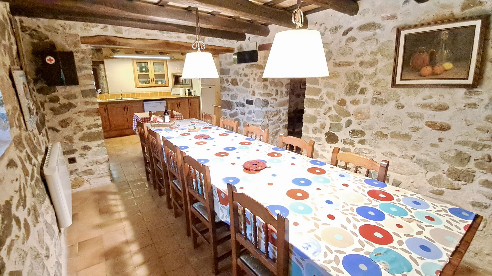 Das Haus selbst wurde komplett renoviert, und zwar mit großem Respekt vor dem Haus, das aus dem frühen 18. Jahrhundert stammt. Das Haus verfügt über 6 geräumige und schön eingerichtete Schlafzimmer. Es gibt 3 Zimmer mit Doppelbetten und 3 Zimmer mit Einzelbetten. Es gibt 3 moderne Badezimmer und eine traditionelle spanische Küche mit allen modernen Annehmlichkeiten. Neben der Küche finden Sie das schöne Esszimmer und neben dem Wohnbereich einen weiteren kleineren Essbereich. Der Wohnbereich verfügt über Sat-TV und einen Kamin (für den Winter).