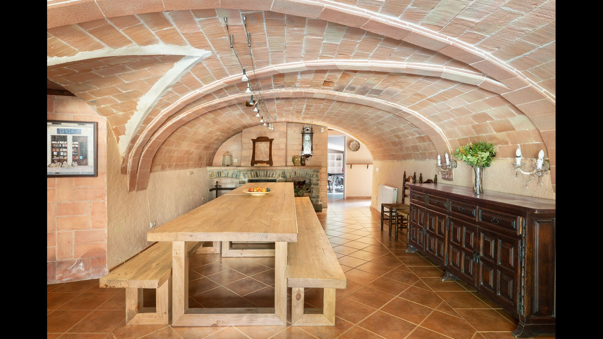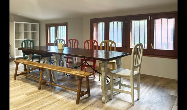 Das wunderschöne Erdgeschoss versetzt Sie zurück in die Geschichte, da die authentische Struktur erhalten geblieben ist, die wunderschönen Bögen, die die Decke sowohl im Speisesaal als auch im Wohnzimmer und in der Bibliothek mit Billard bilden . Mit Blick auf den Garten gibt es ein moderneres Wohnzimmer mit Sofas und Fernseher. Schließlich gibt es eine große, moderne Küche mit vielen Küchengeräten und einfachem Zugang durch offene Schränke. Es ist natürlich auch mit Backofen, Cerankochplatten, zwei Geschirrspülern, doppeltem Kühl-/Gefrierschrank und vielem mehr ausgestattet. Es gibt auch einen Tisch, der praktisch für das Frühstück ist.