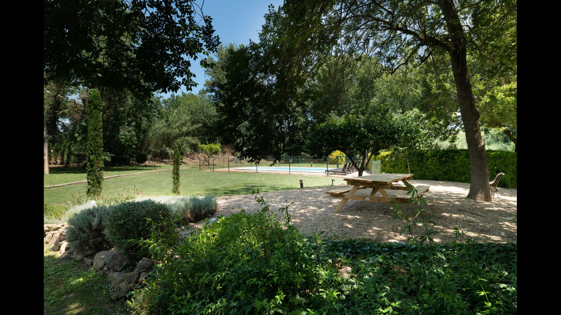 Auf dem Grundstück lässt sich auch die Zeit wie im Flug vergehen, nicht zuletzt für die Kinder. Schaukeln, Fußballtore, Brettspiele und Tischtennis und natürlich das Schwimmbad und das WLAN werden sie beschäftigen. In der Zwischenzeit können Sie einen Kaffee oder ein Glas Wein genießen, ein Buch lesen, in den vielen gemütlichen Ecken, die Sie überall finden, Schatten oder Sonne, wie Sie es bevorzugen.
