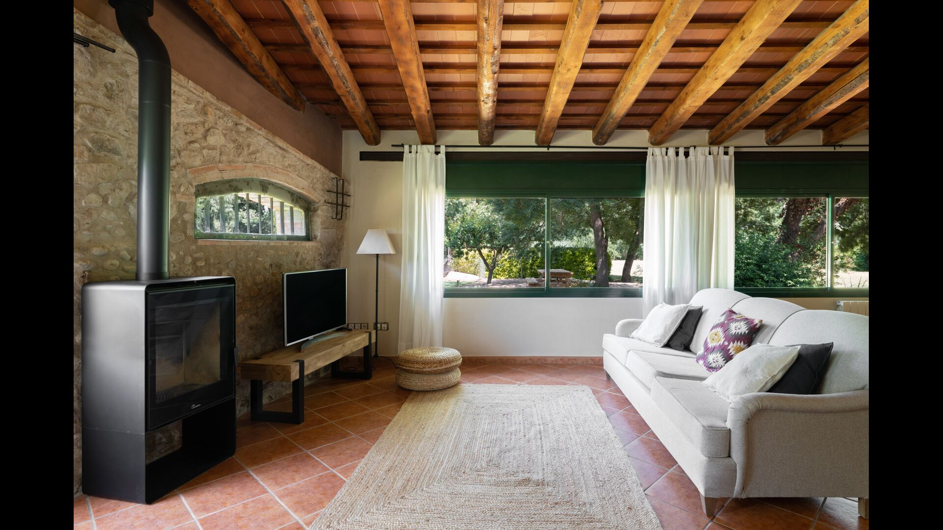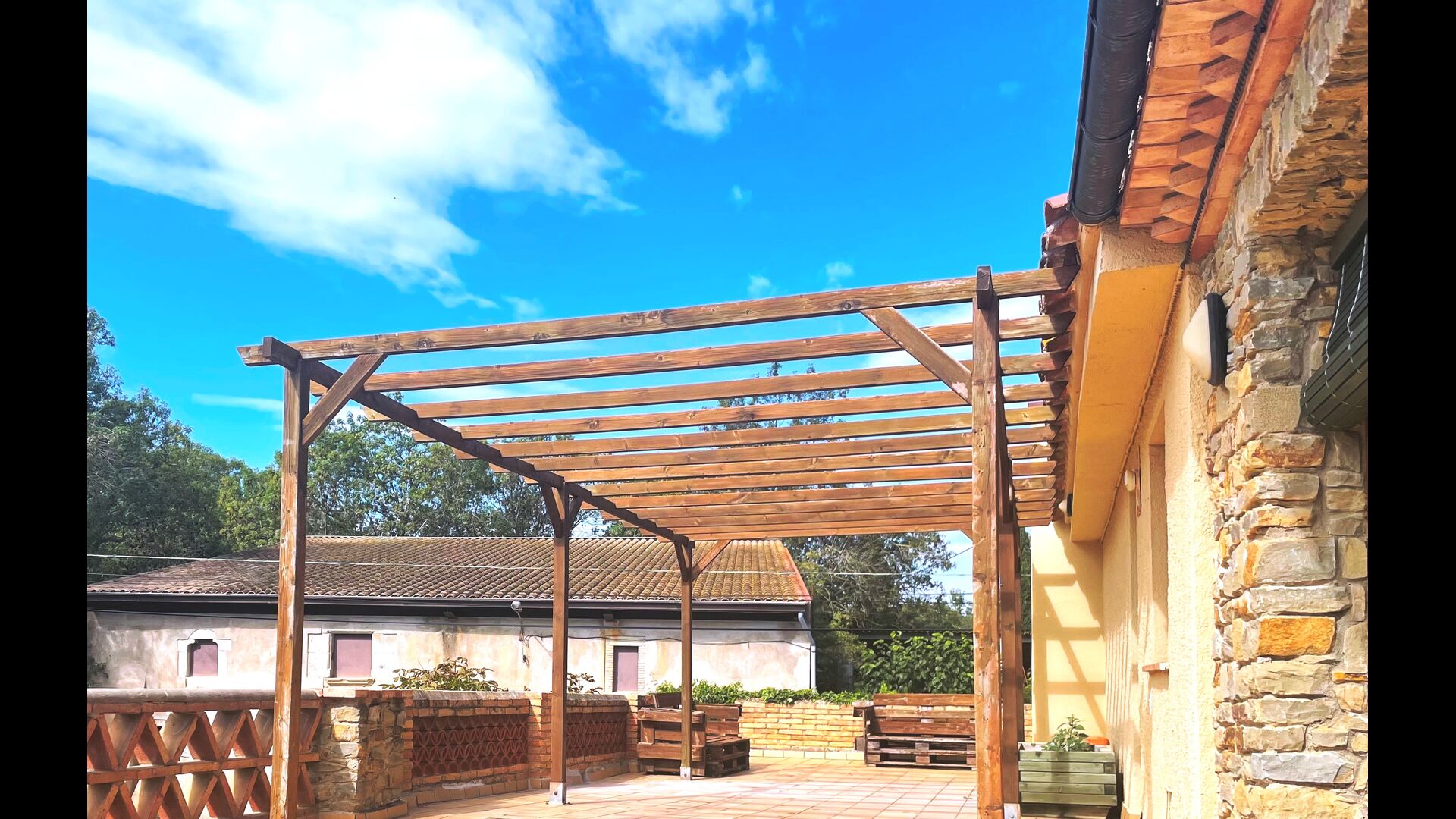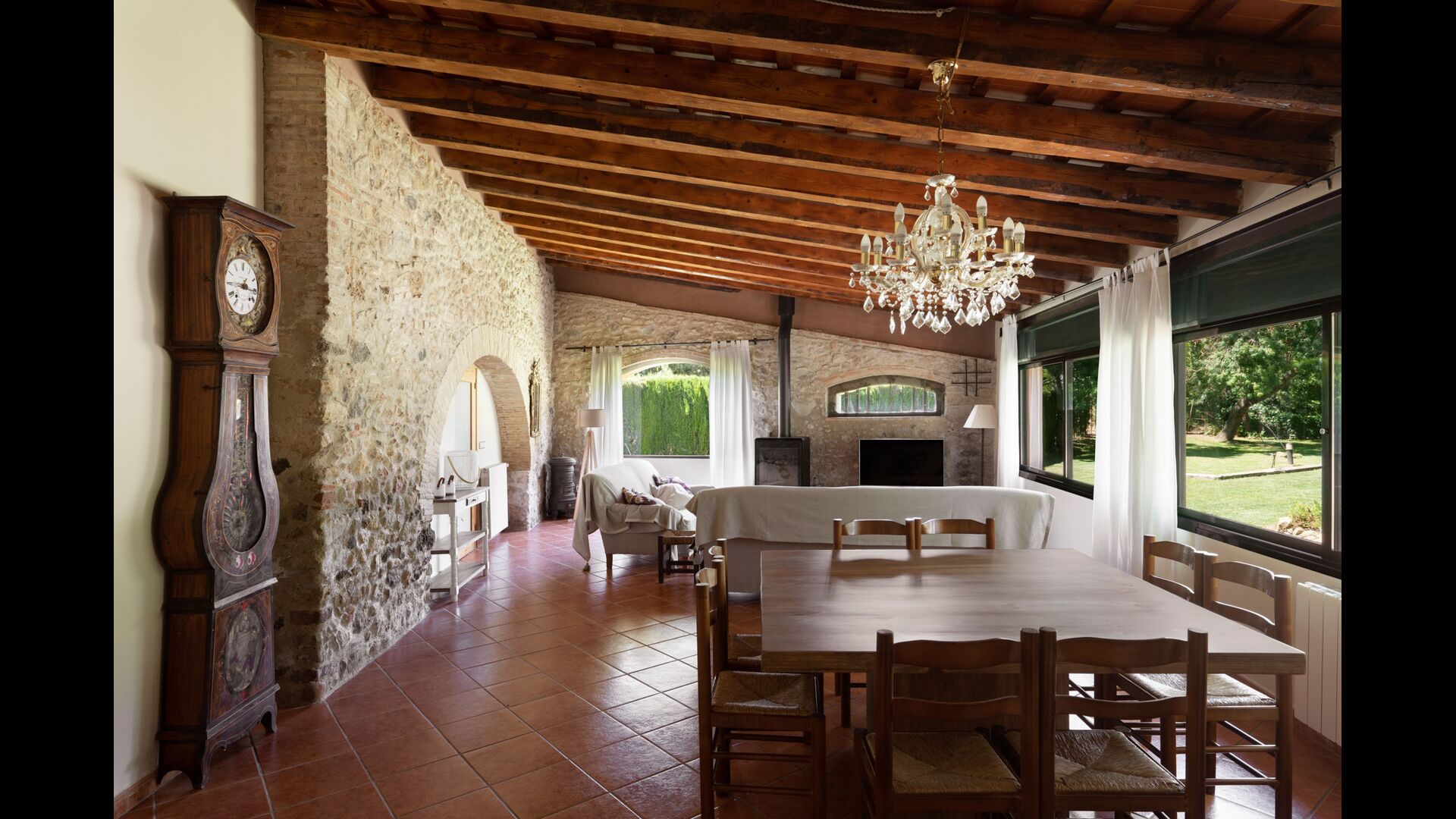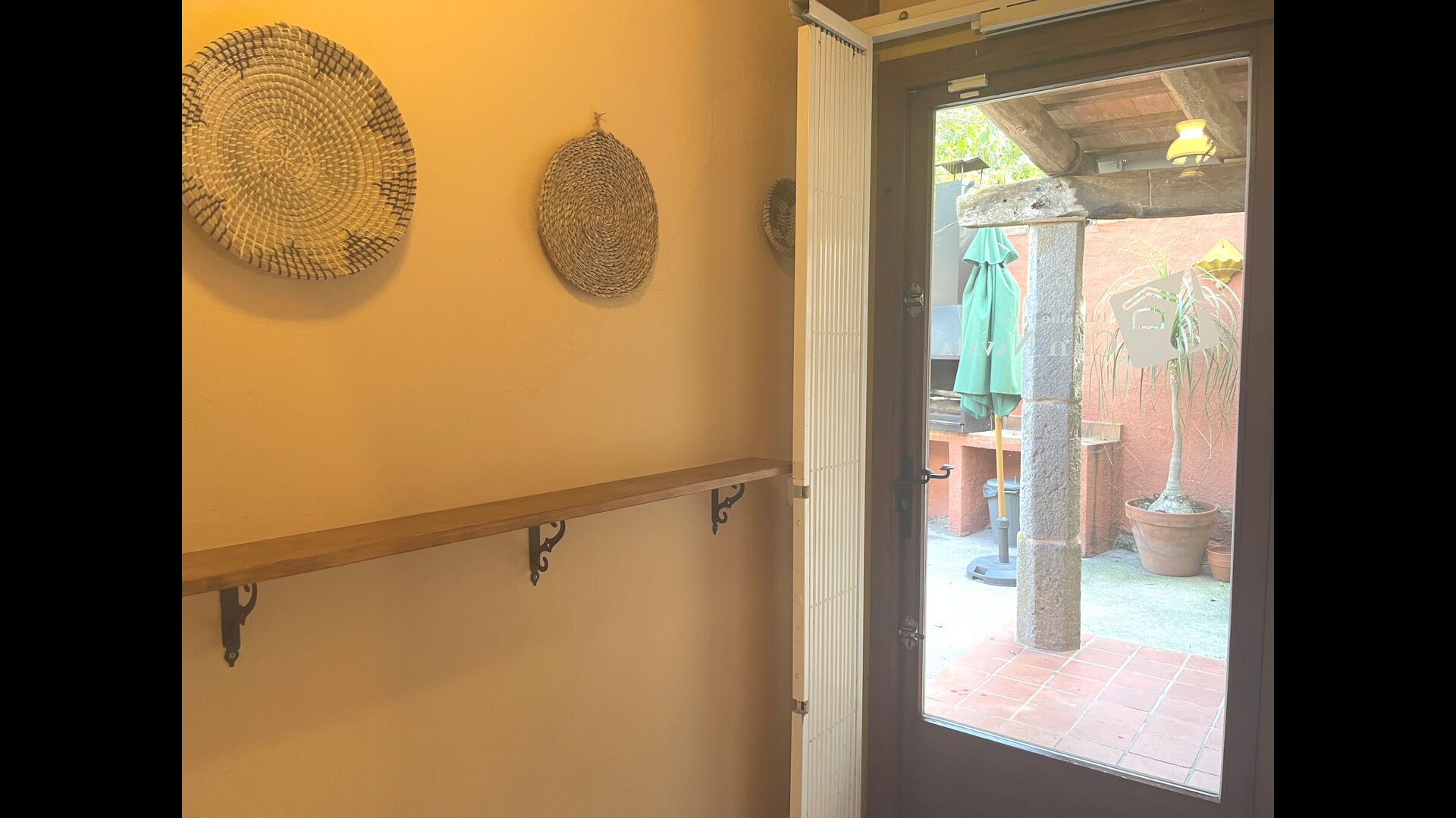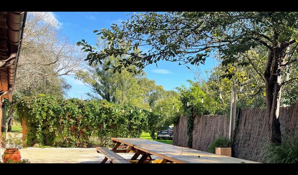 Die Terrasse ist so gelegen, dass Sie den Pool und den Rest des Gartens leicht im Auge behalten können, und sie befindet sich auch in der Nähe des Barbecue im Hof gelegen. Der Innenhof ist ideal für Ihre Mahlzeiten, da dort auch ein großer Tisch steht und dieser dann direkt mit der Küche verbunden ist.