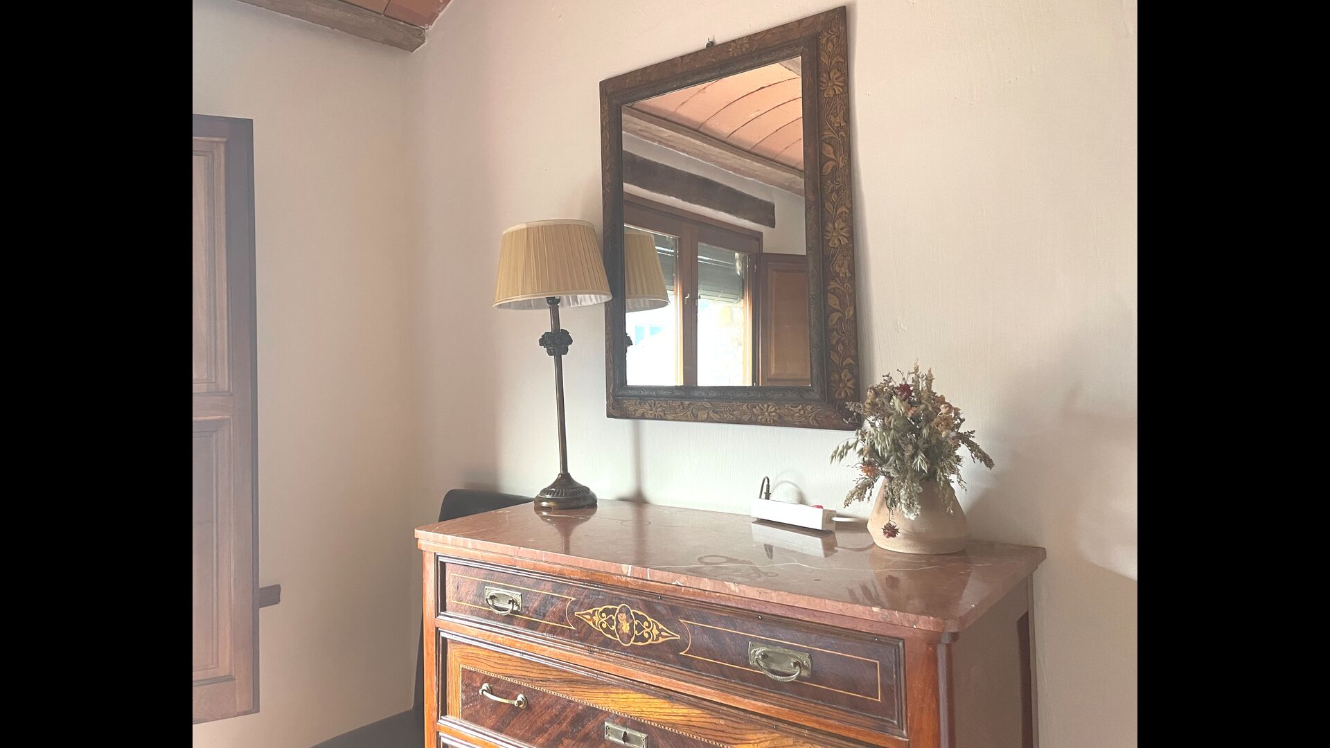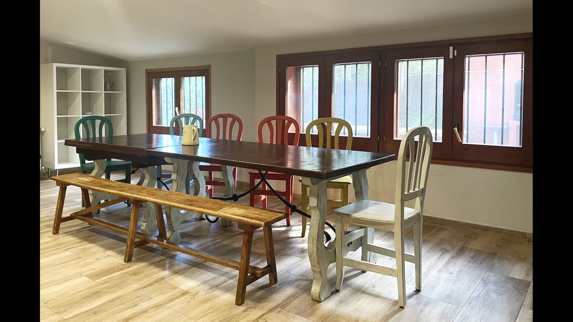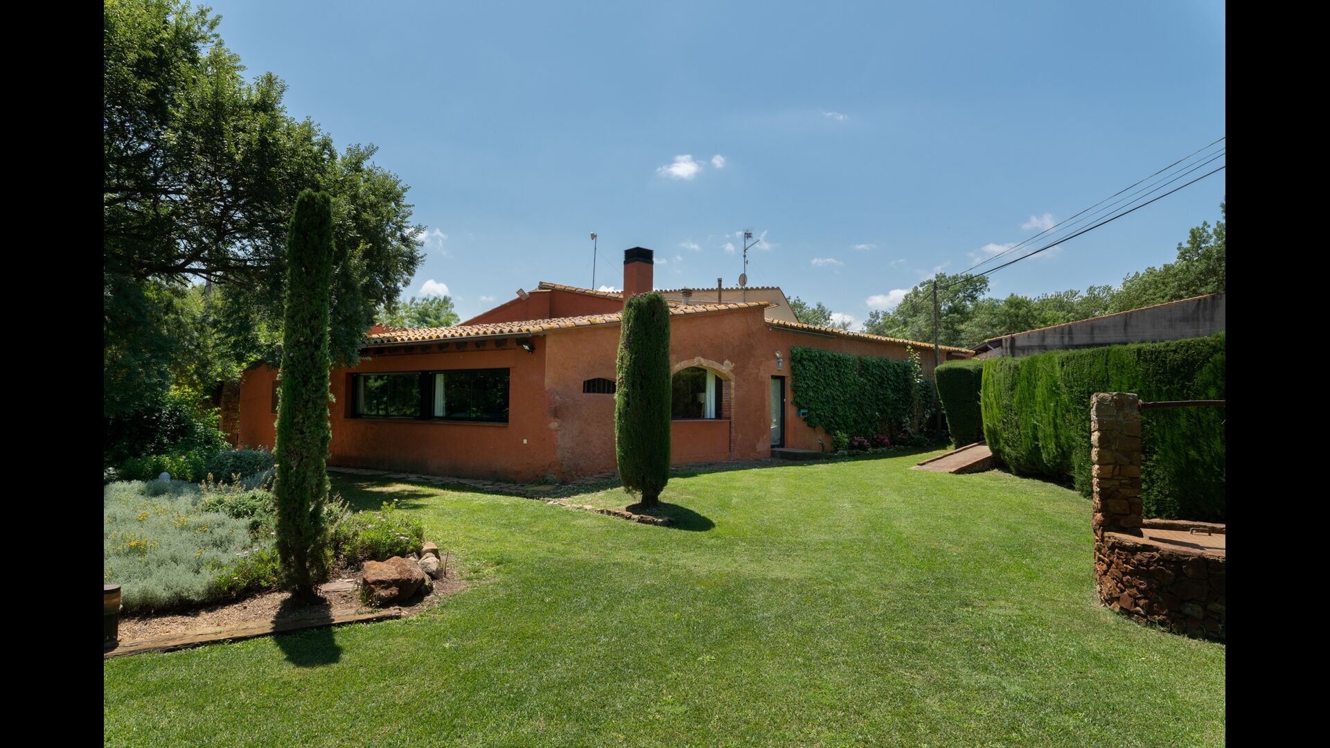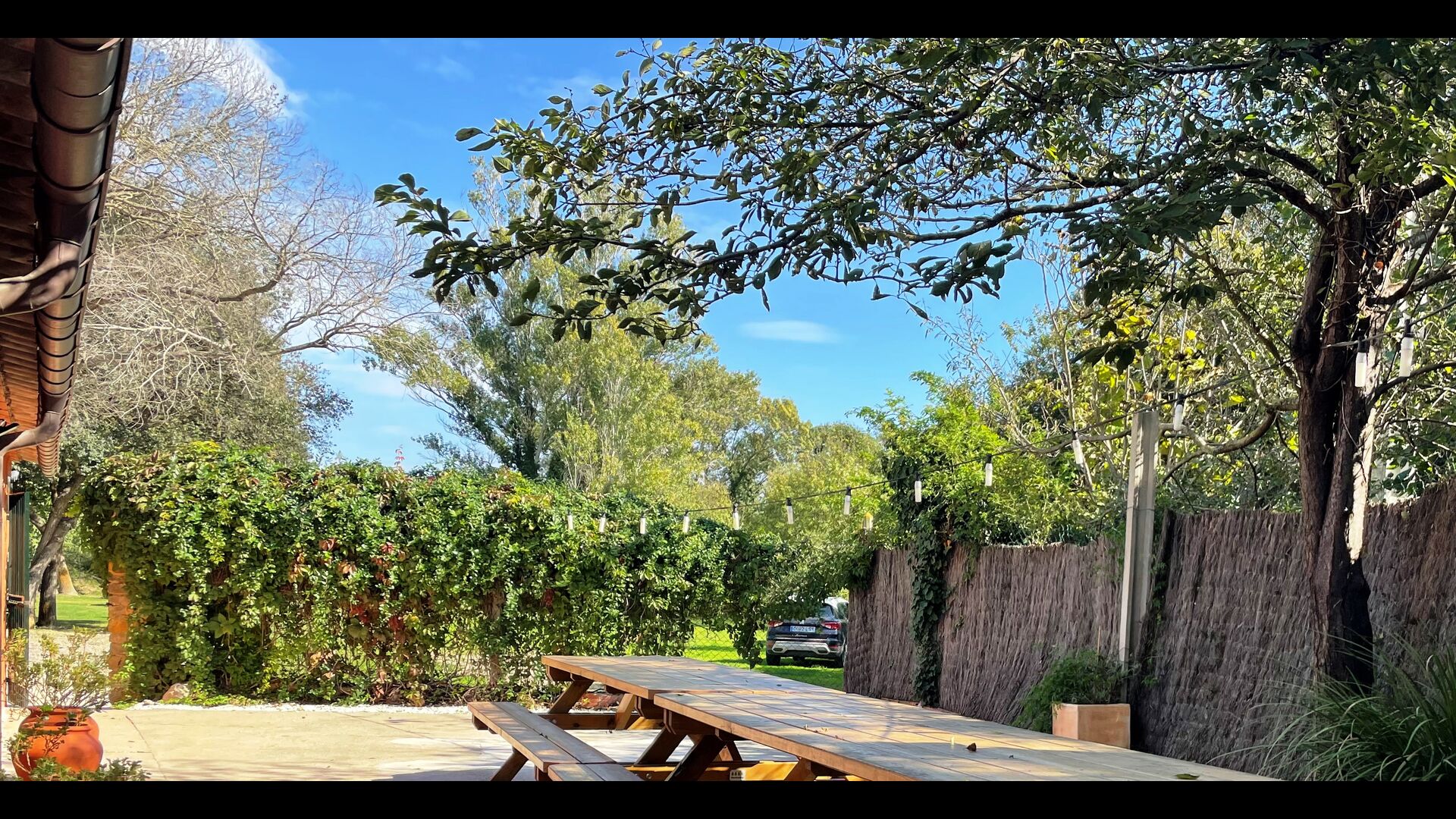 Die Terrasse ist so gelegen, dass Sie den Pool und den Rest des Gartens leicht im Auge behalten können, und sie befindet sich auch in der Nähe des Barbecue im Hof gelegen. Der Innenhof ist ideal für Ihre Mahlzeiten, da dort auch ein großer Tisch steht und dieser dann direkt mit der Küche verbunden ist.