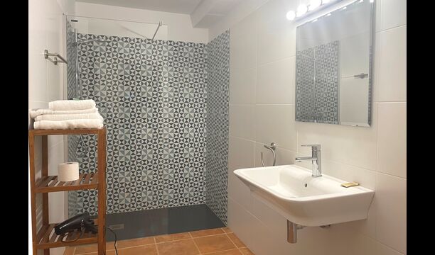 Das Haus ist sehr groß und bietet 9 Schlafzimmer, 7 davon mit Badezimmern ensuite. Es gibt zwei zusätzliche Badezimmer im Haus und auch die Möglichkeit, ein 10. Schlafzimmer bei Bedarf. Auch die Bettenaufteilung ist sehr flexibel, so können je nach Bedarf Dreibett- oder Vierbettzimmer arrangiert werden. Zwei der Schlafzimmer im ersten Stock haben auch Zugang zur Terrasse im ersten Stock, die der perfekte Ort ist, um ein Buch zu lesen oder bei Sonnenuntergang ein Glas Wein zu trinken.