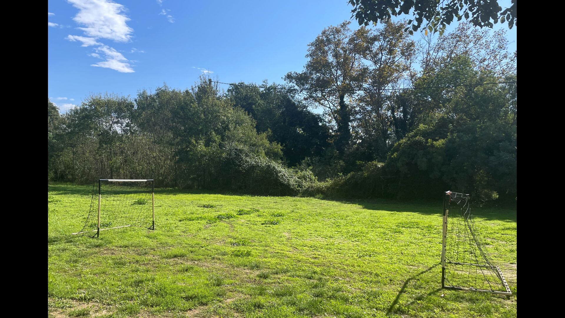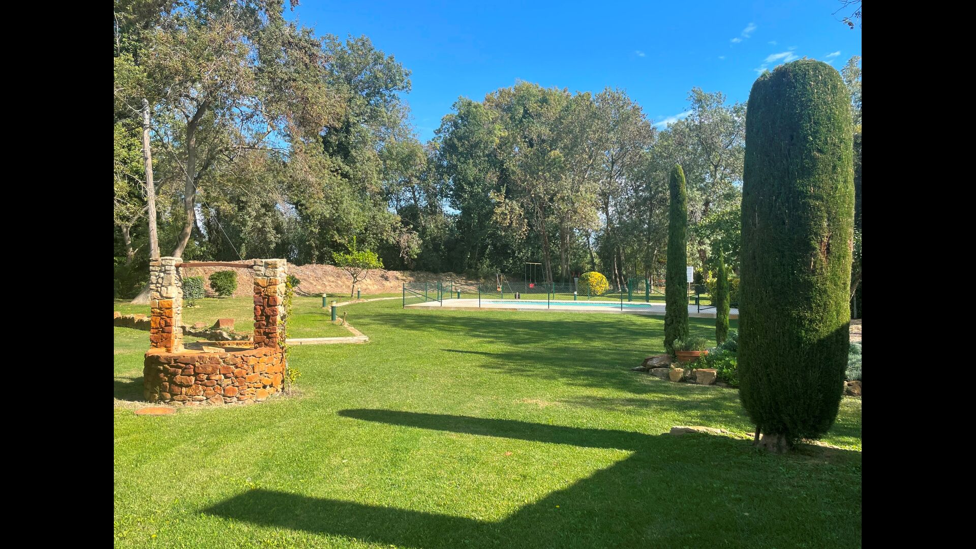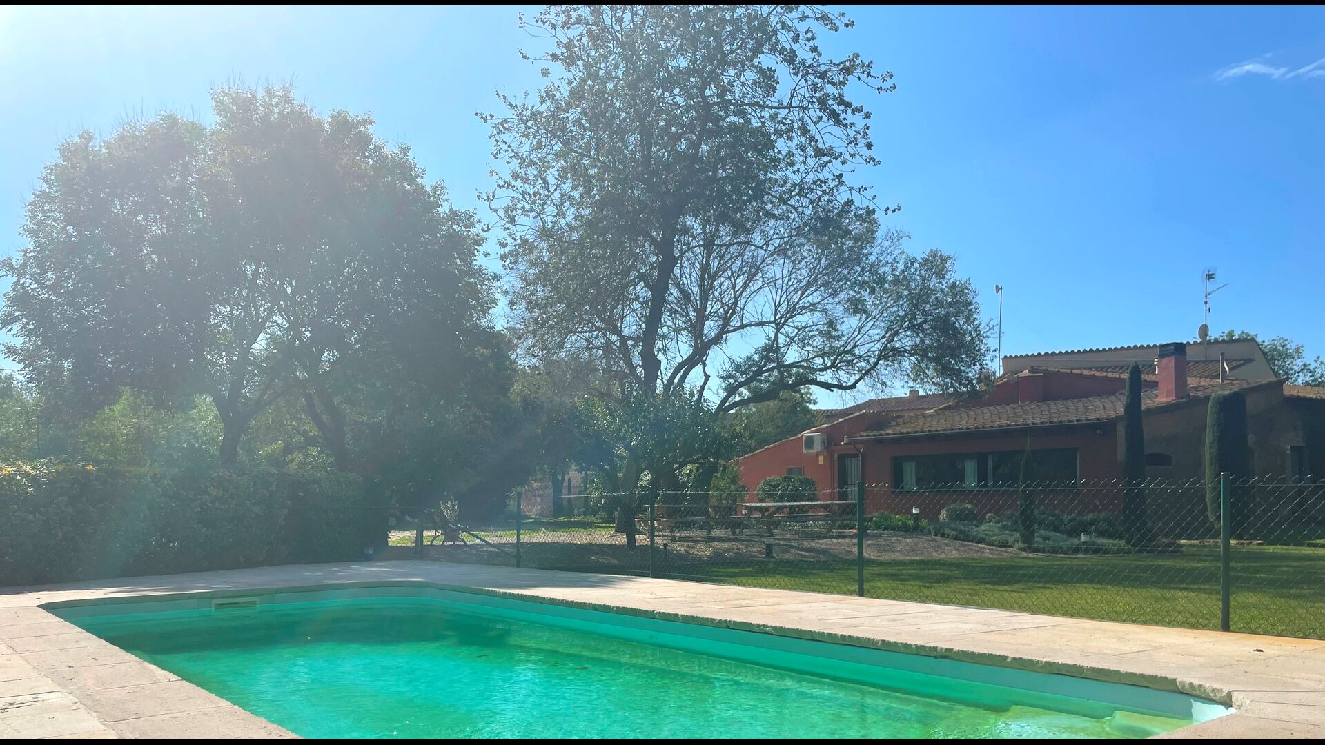 Die größte Qualität des Anwesens ist jedoch der sehr weitläufige und schöne Garten mit dem Swimmingpool (umzäunt zum Schutz kleiner Kinder), der Terrasse neben dem Swimmingpool und der großen Liegewiese mit Fußballtore und ein Spielplatz am anderen Ende.