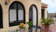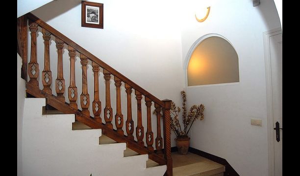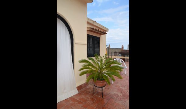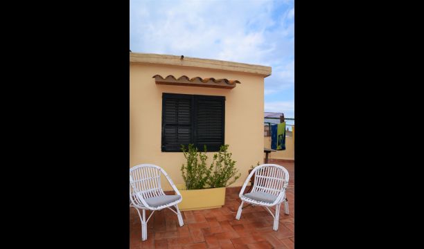 Die großen Zimmer des Hauses sind sehr schön und geschmackvoll eingerichtet. Der Teil des Hauses, das vermietet wird, hat eigenen Eingang. Die Besitzer wohnen im Erdgeschoss und den ersten Stock und die Dach-Terrasse im zweiten Stock sind ausschließlich für die Mieter. Die Wohnung hat zwei geräumige Schlafzimmer mit Doppelbetten (Platz für ein zusätzliches Bett in jedem) und eine kleinere Schlafzimmer mit zwei Einzelbetten.