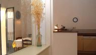 Weiter gibt es Wohnzimmer mit Sofas, ein Esszimmer mit großem Esstisch und eine offene Küche mit Ausstattungen wie Geschirrspüler, Waschmaschine, Mikrowelle, Kaffeemaschine und Toaster. Das Esszimmer sowie das Wohnzimmer haben Balkon gegen die Strasse. Schließlich gibt es ein modernes Badezimmer mit Dusche und Badewanne.