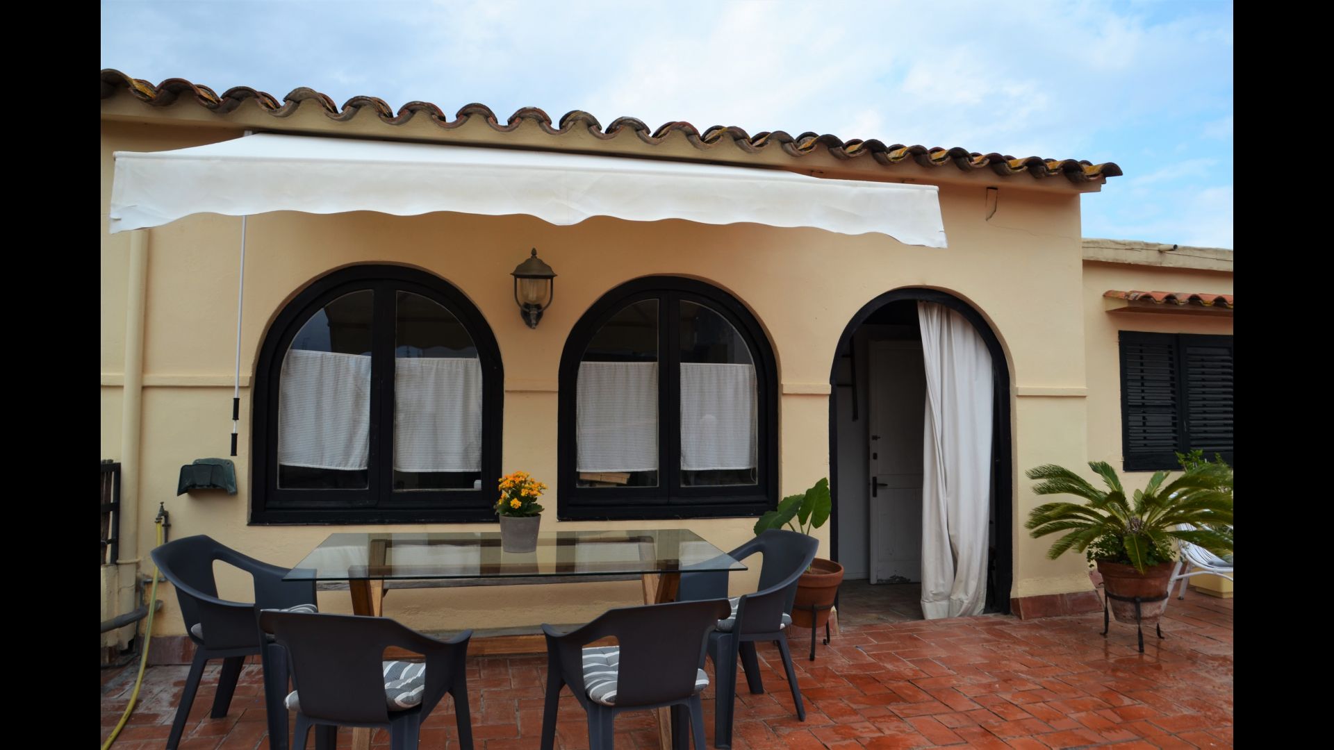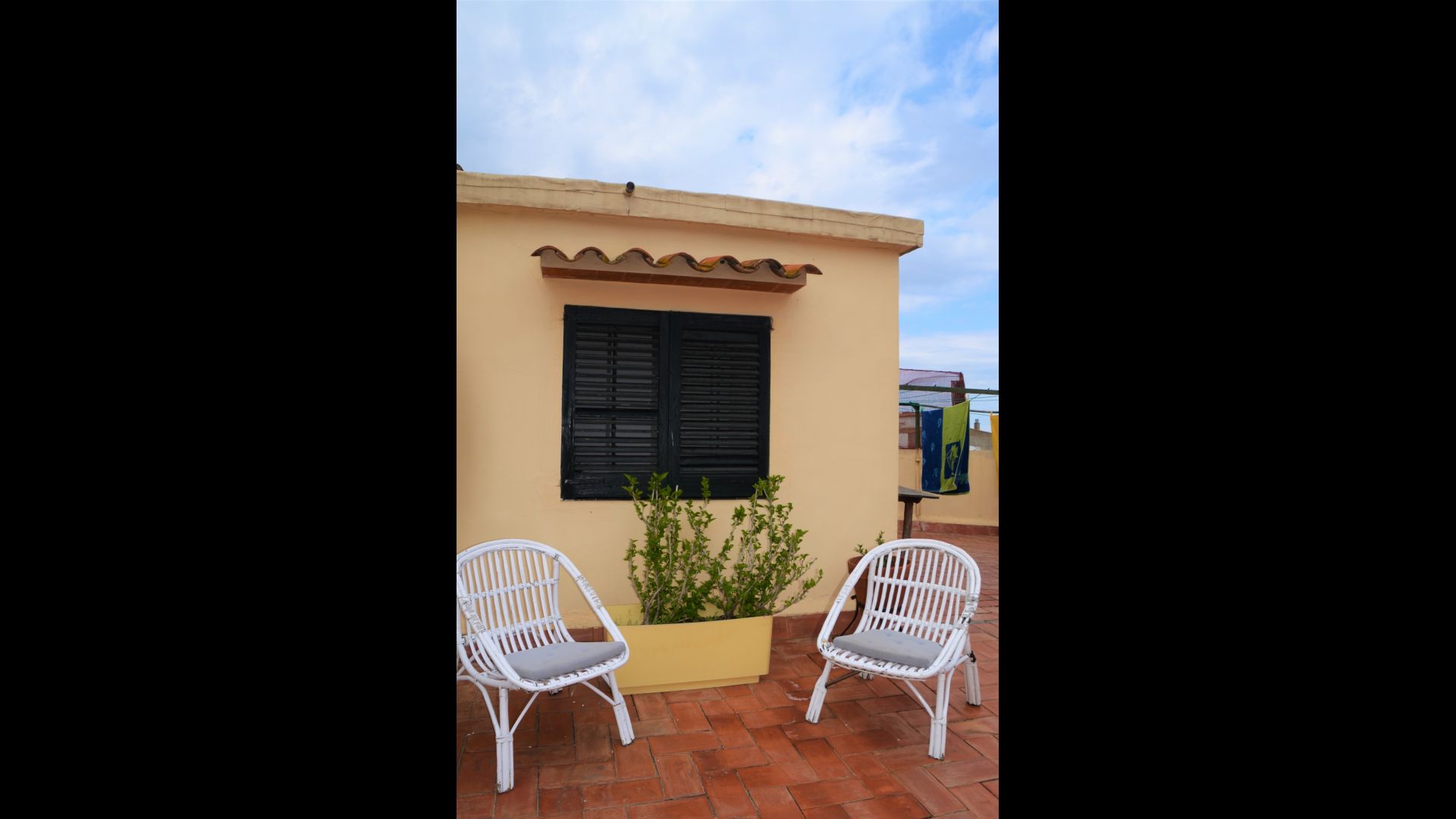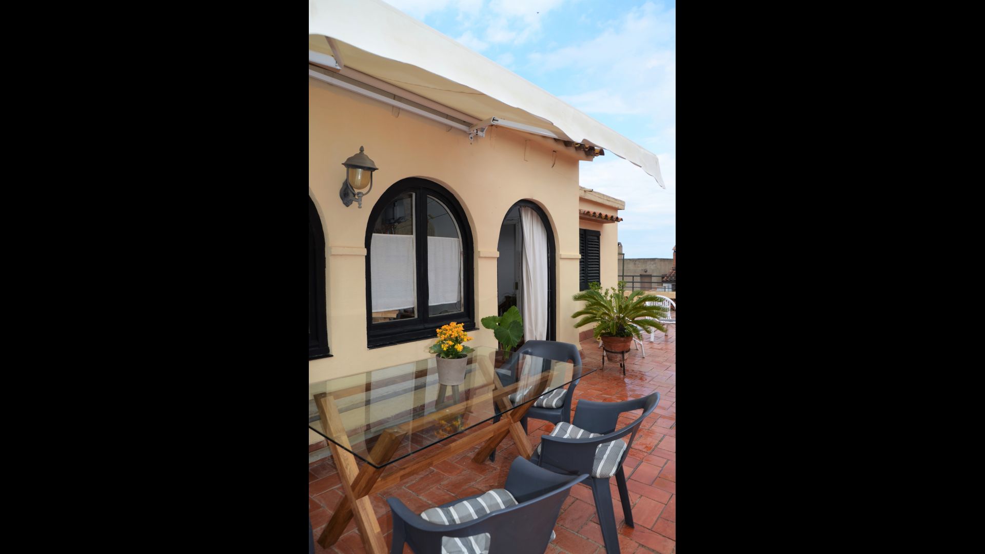 Im zweiten Stock gibt es eine sehr große Dachterrasse für Ihre ausschließliche Verwendung. Hier können Sie die Sonne genießen oder im Schatten unter der Markise sitzen und man kann auch hier essen - z.B vom Grill. Um die Ecke gibt es Leinen für die Wäsche.