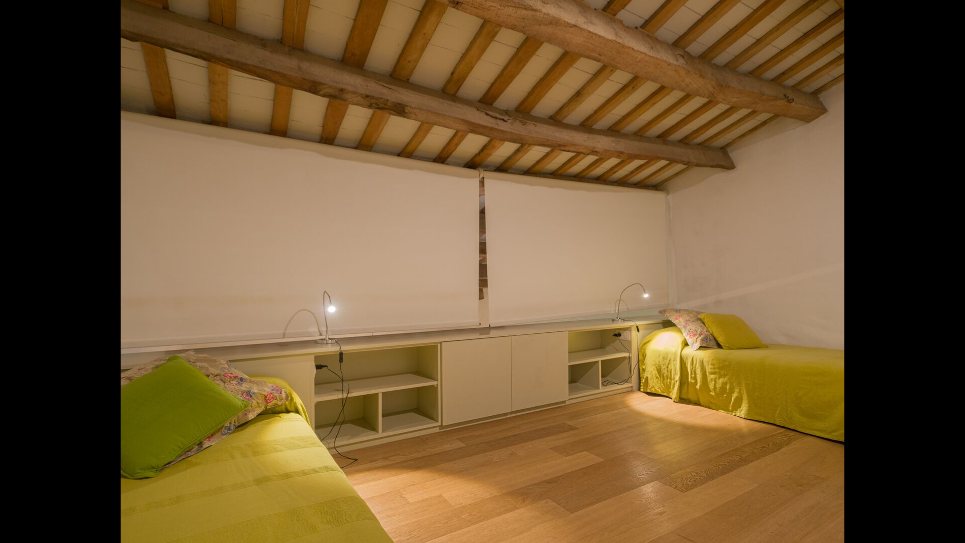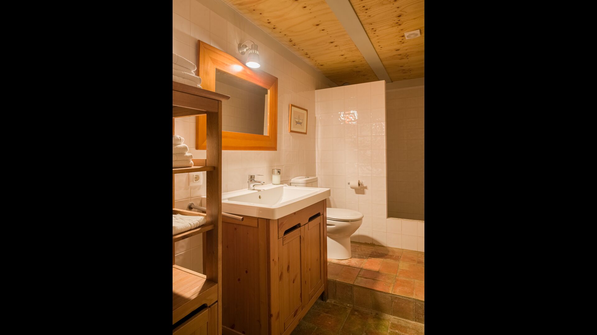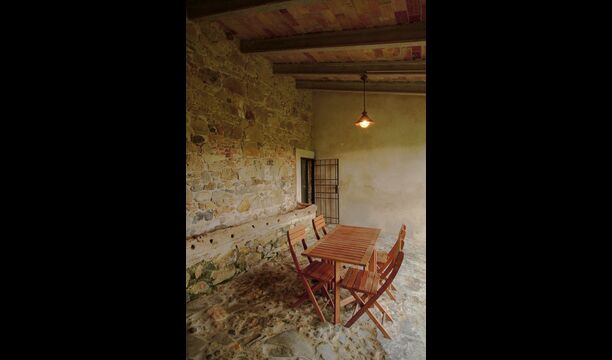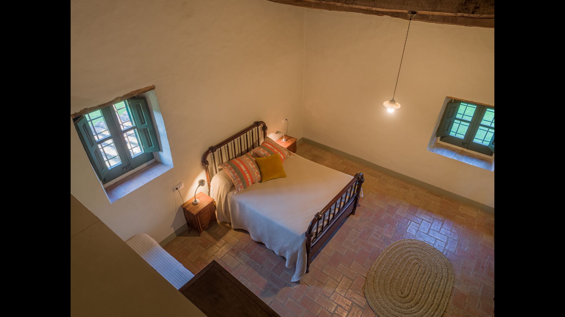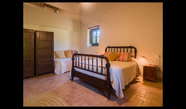 Es gibt ein großes Schlafzimmer mit zwei Einzelbetten im ersten Stock von Casa Piferan-Porxo. Das zweite Schlafzimmer befindet sich im oberen Dachgeschoss und verfügt über zwei Einzelbetten, mit der Möglichkeit, ein weiteres Bett aufzustellen. Es gibt auch ein Badezimmer im ersten Stock.