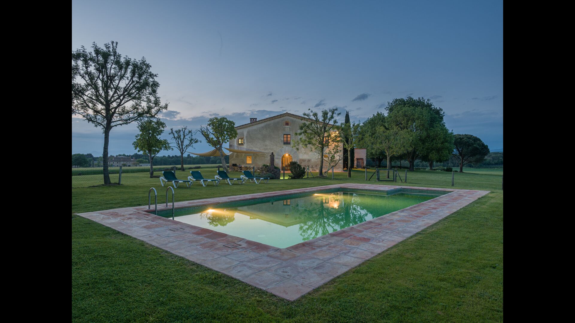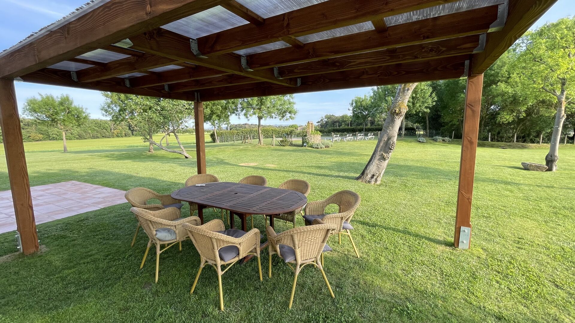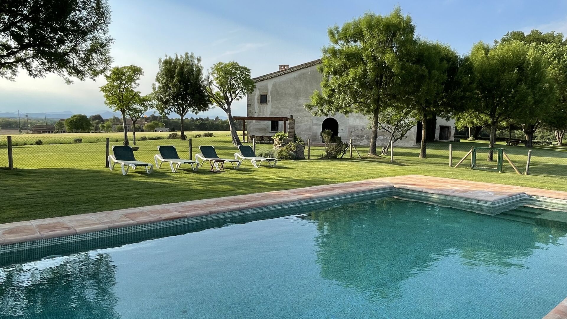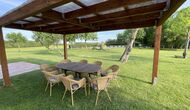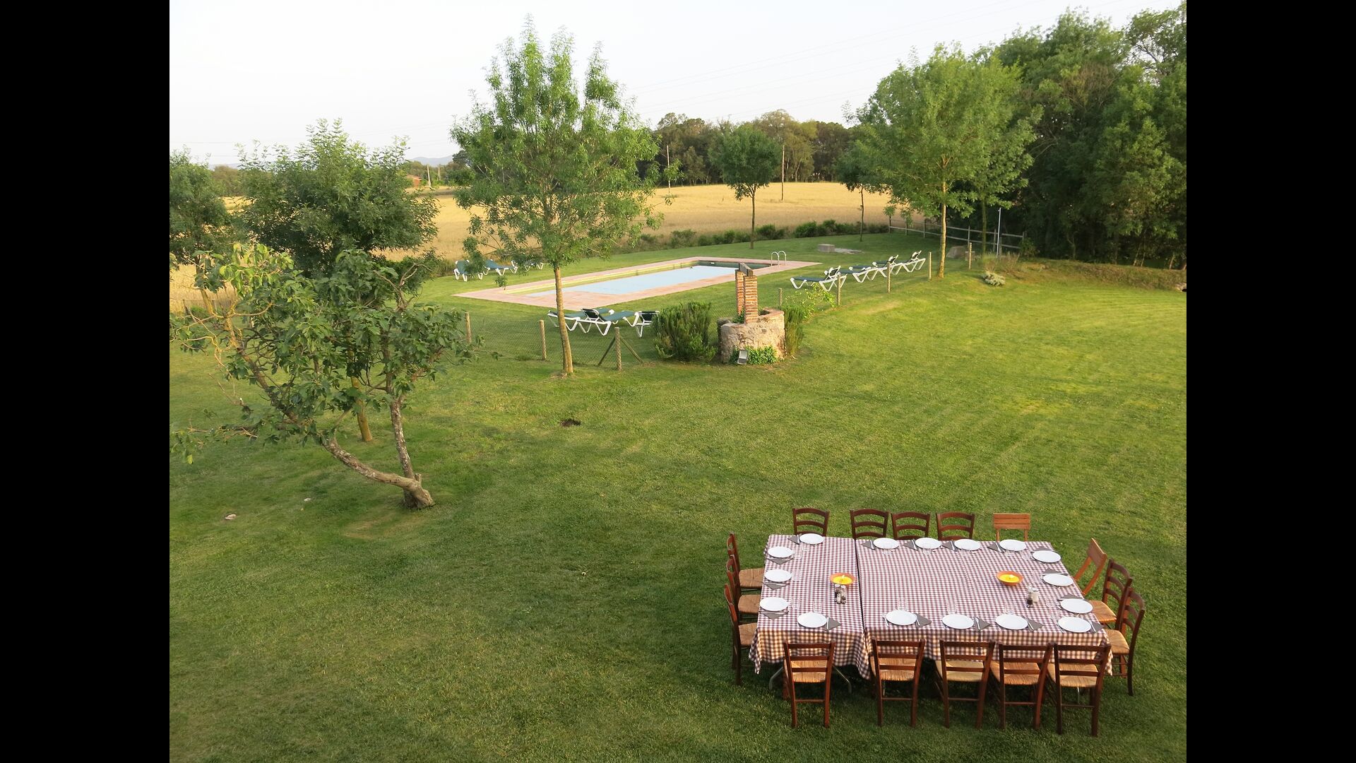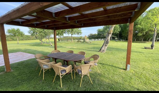 Zum Ferienhaus gehört einen eigenen großen Pool und eine große Wiese zum Spielen und Sonnenbaden. Es gibt auch eine Außenterrasse und Gartenmöbel, so dass Sie hier Ihr Abendessen gemeinsam als Gruppe genießen können.