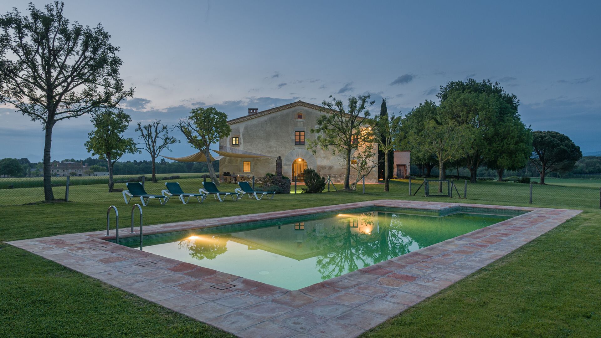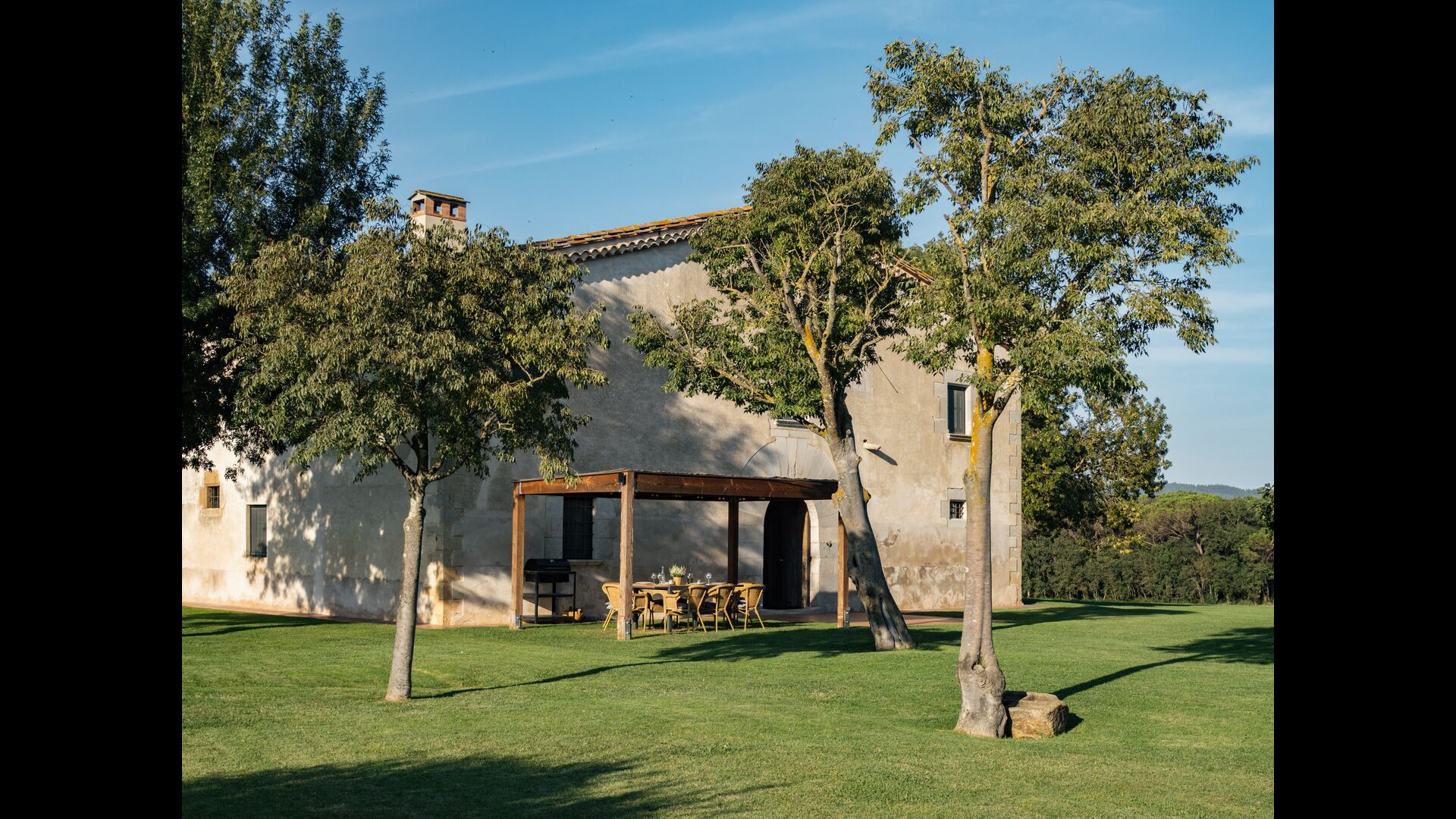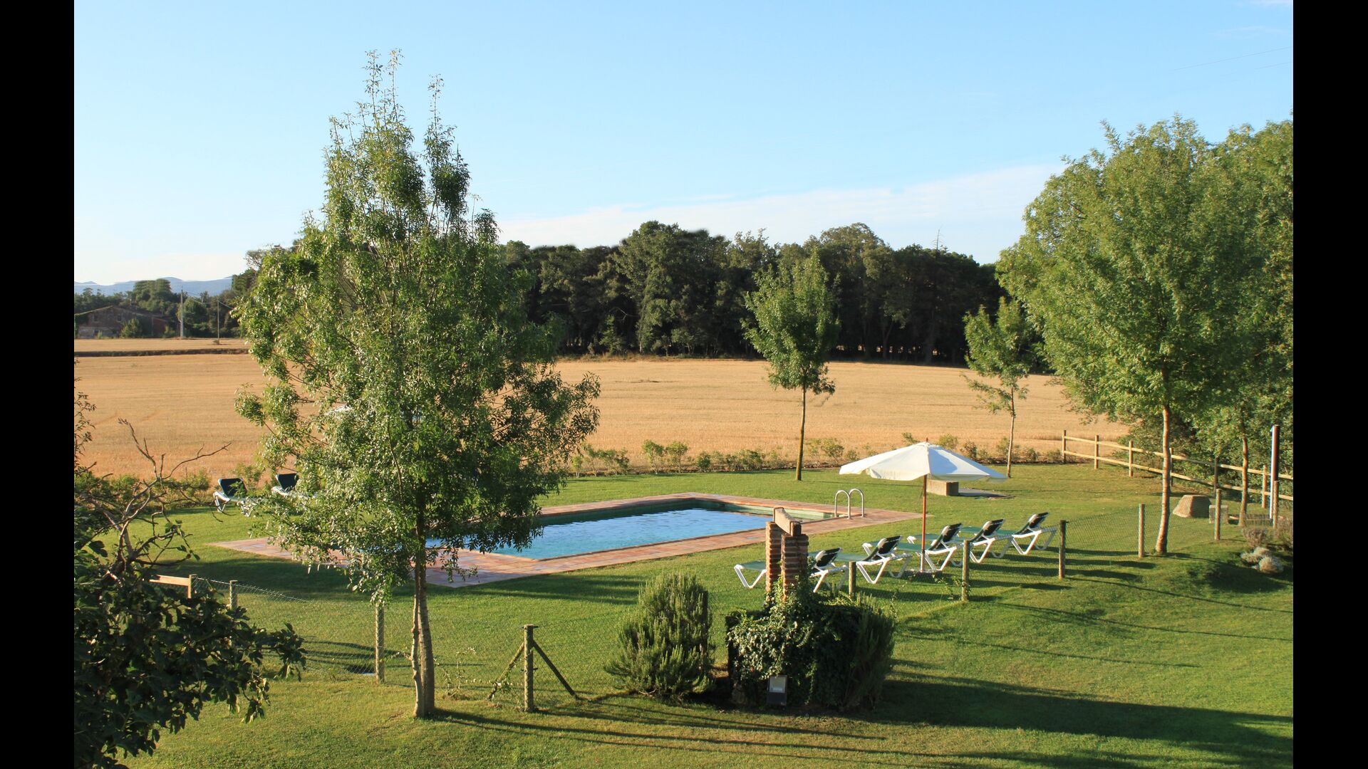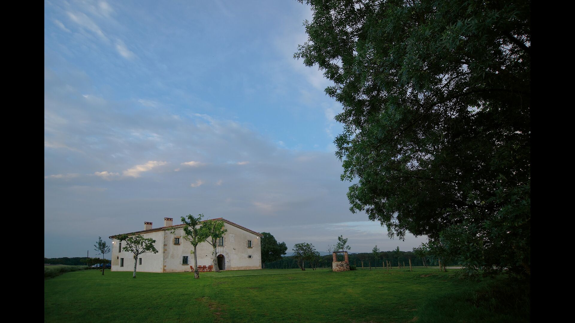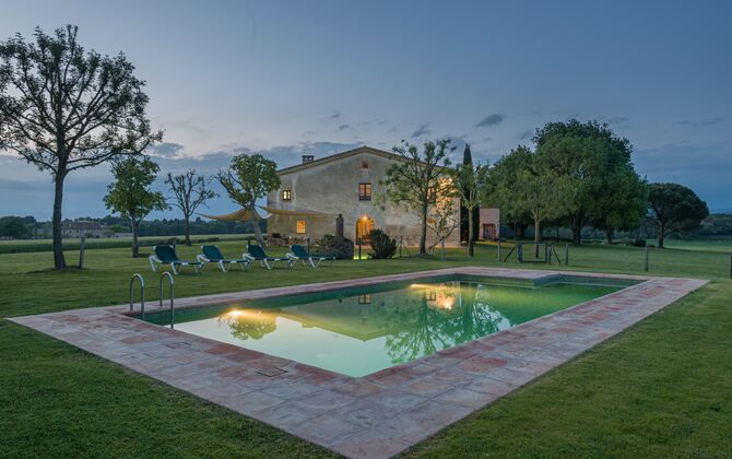 Das Haus steht in einer wunderschönen Lage, die landwirtschaftlichen Flächen mit Eichen-, Steineichen und Pinien und Flüsse und Bäche gesäumt von Vegetation vereint. Das Bauernhaus selbst ist durch eine große Grünfläche mit Bäumen und Feldern umgeben von Pflanzen. Es hat einen außergewöhnlichen Blick auf den Montseny, die Ebene von La Selva und ein guter Teil der katalanischen Pyrenäen und deren Ausläufern.