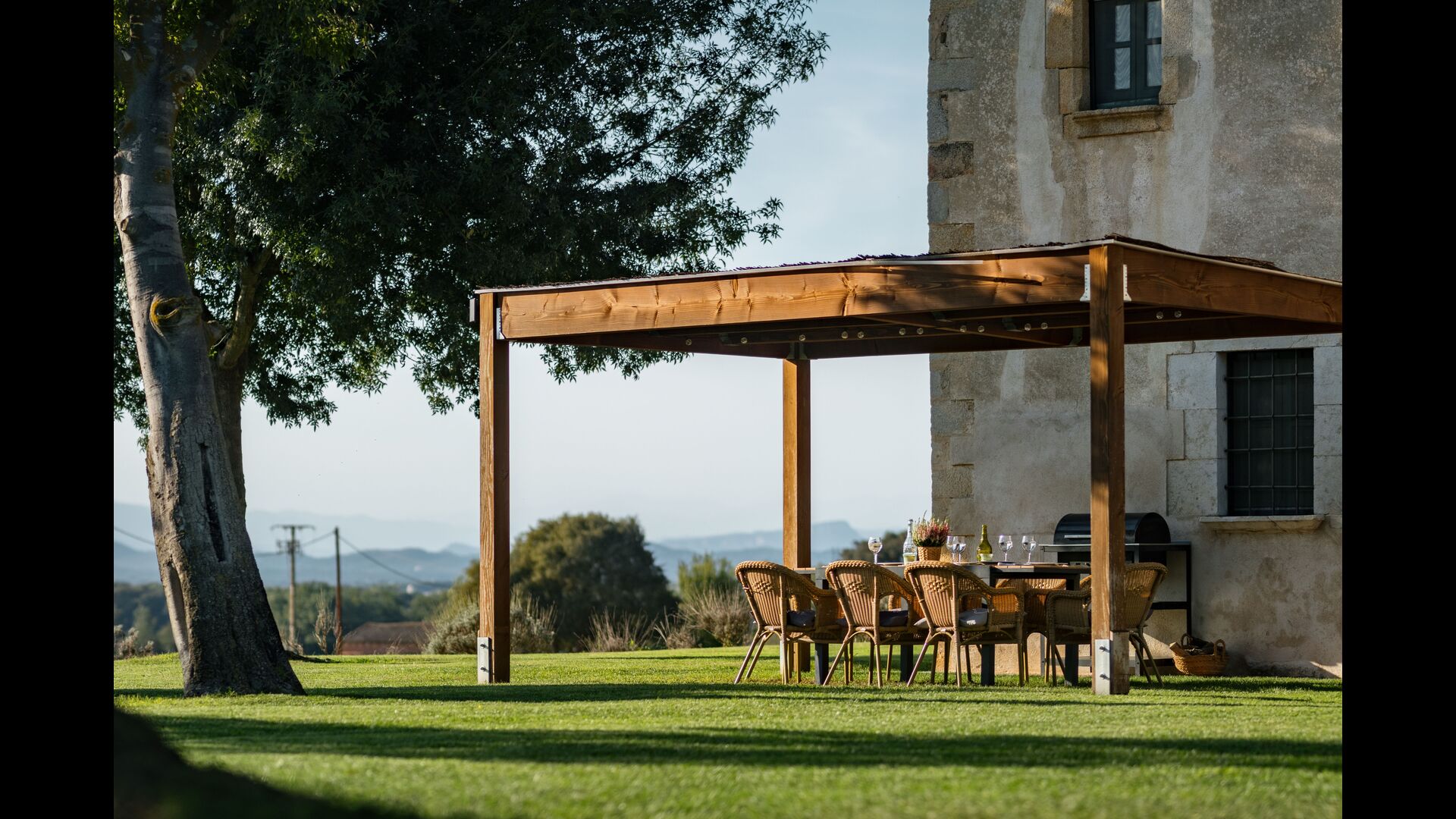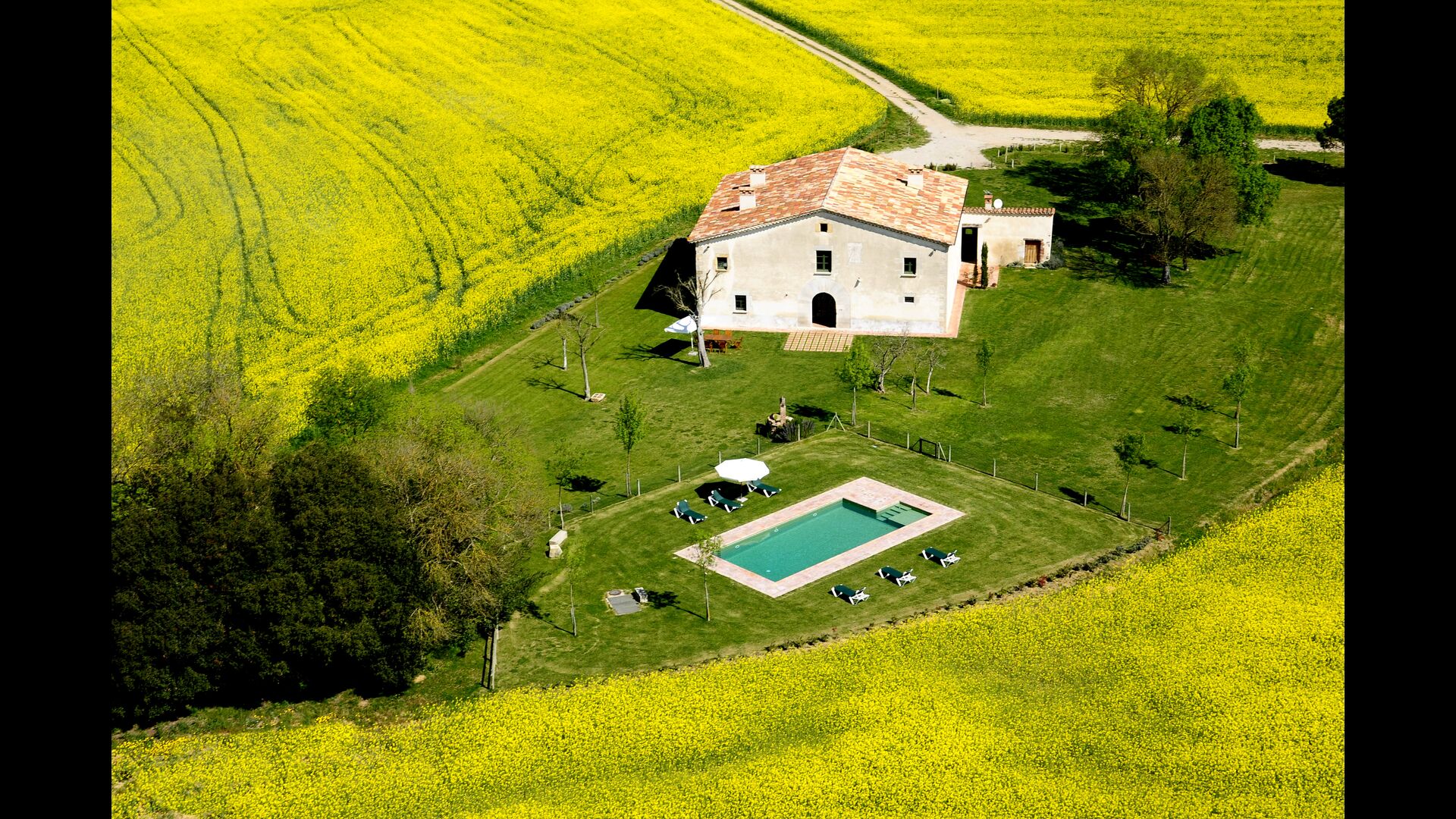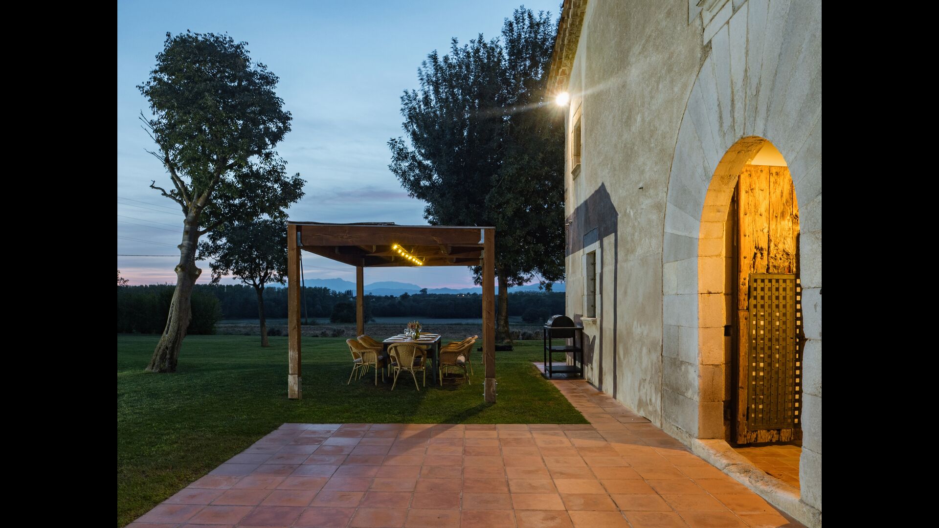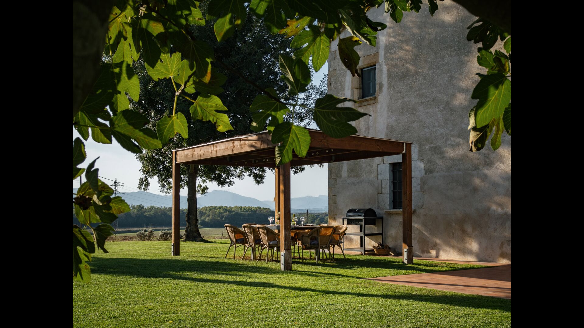 Das Haus steht in einer wunderschönen Lage, die landwirtschaftlichen Flächen mit Eichen-, Steineichen und Pinien und Flüsse und Bäche gesäumt von Vegetation vereint. Das Bauernhaus selbst ist durch eine große Grünfläche mit Bäumen und Feldern umgeben von Pflanzen. Es hat einen außergewöhnlichen Blick auf den Montseny, die Ebene von La Selva und ein guter Teil der katalanischen Pyrenäen und deren Ausläufern.
