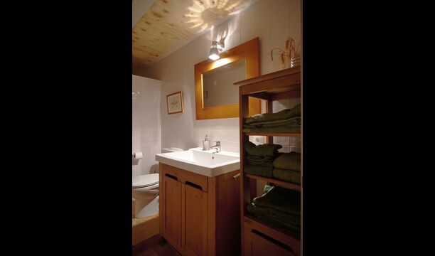 Sie betreten die Einheit für 8 Personen durch eine riesige Halle im Erdgeschoss. Hier liegt auch die voll ausgestattete Küche und ein wirklich hübsches Esszimmer mit einem charmanten Kamin. Im Erdgeschoss finden Sie auch einen schönen Aufenthaltsraum mit TV und Leseecke. Auf dieser Etage gibt es auch eine Toilette.