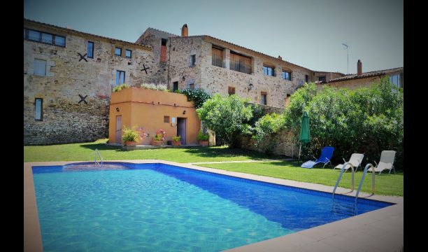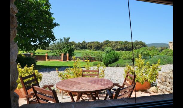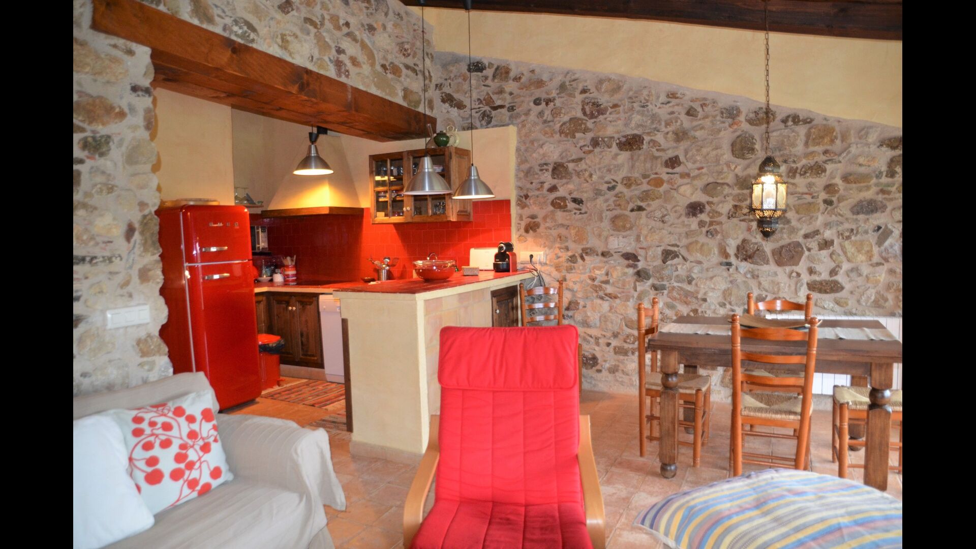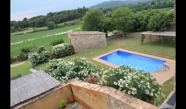 The house has a very large garden with a huge swimming pool, which is secured with a fence and with deck chairs where you can relax, only to be interrupted by a refreshing swim. The rest of the garden has several patio areas and orange and lemon trees provide both shade and a touch of the Mediterranean atmosphere. In the village within walking distance, there are a few restaurants and a shop with a little of everything. Every day at 12:00, a bread van comes to the square, so you can buy fresh bread for lunch. There are larger supermarkets inLa Bisbal, which is renowned for its pottery. This town is just 5 km from the house.
