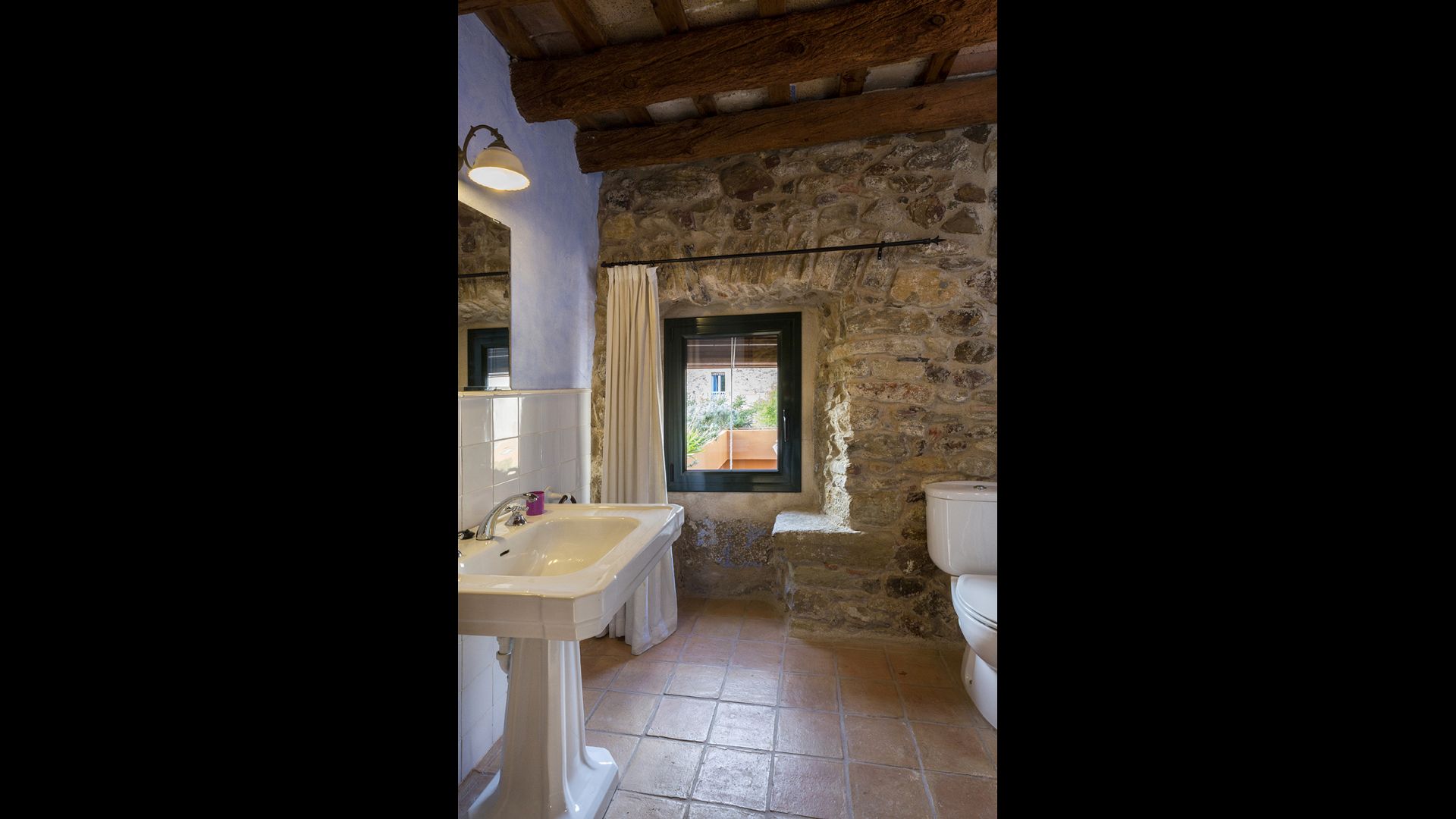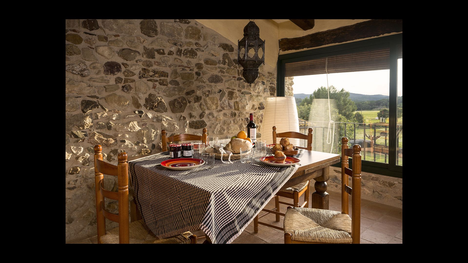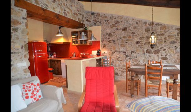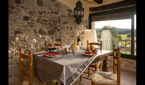 This apartment, Casa Puix Miguel - Roure, can accommodate up to 5 (+1) persons and consists of 2 floors. On the first floor there is a private terrace where you can enjoy your evening meal with a great view of the garden and the mountains in the background. Here too you will find two double rooms and two bathrooms, one of which is one en-suite.