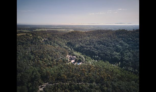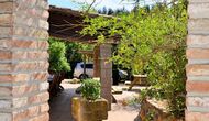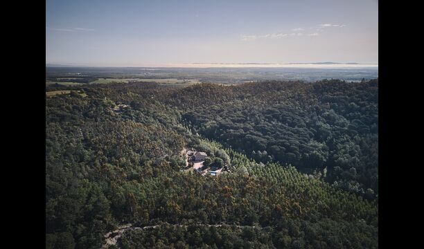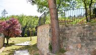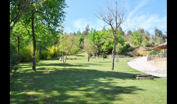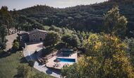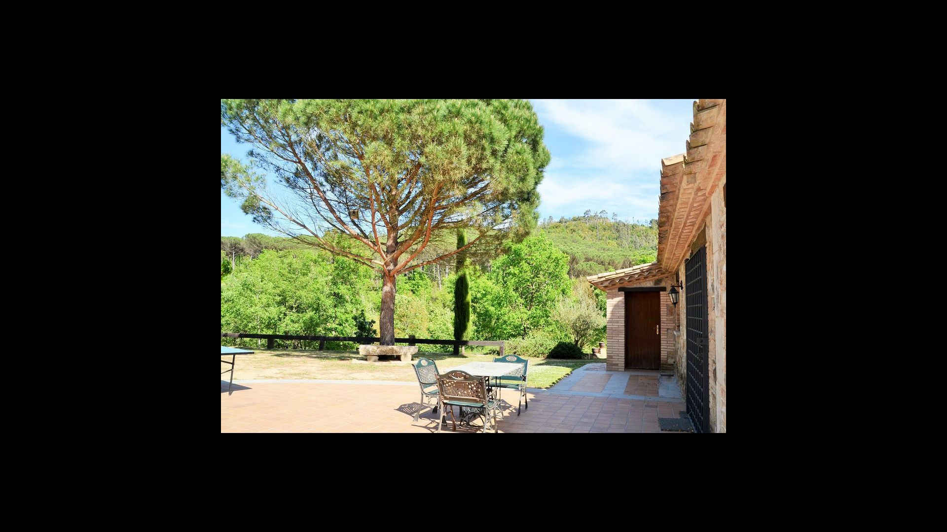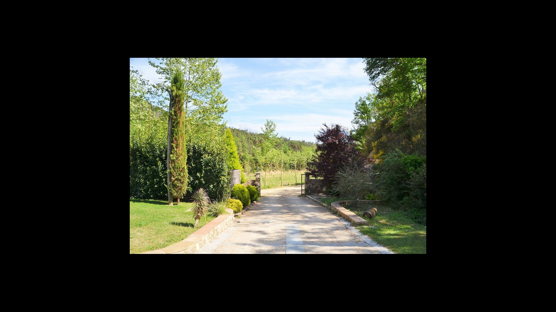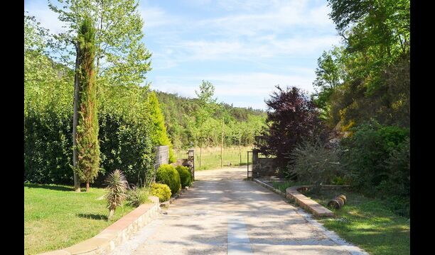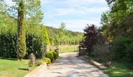 Nach einer kurzen Fahrt eine Schotterstraße durch einen kleinen Wald entlang, gelangt man zu den schönen Tor, wo die gepflasterte Auffahrt, mit Zypressen auf jeder Seite, bis zum Haus führt, mit dem großen Pool-Bereich auf der einen Seite und dem Rasen auf der andere.