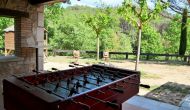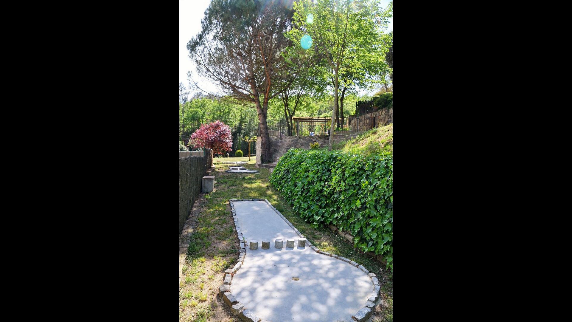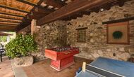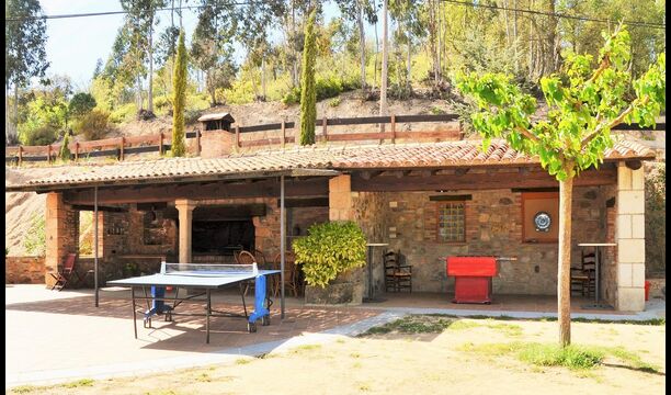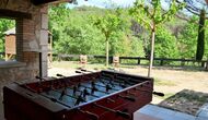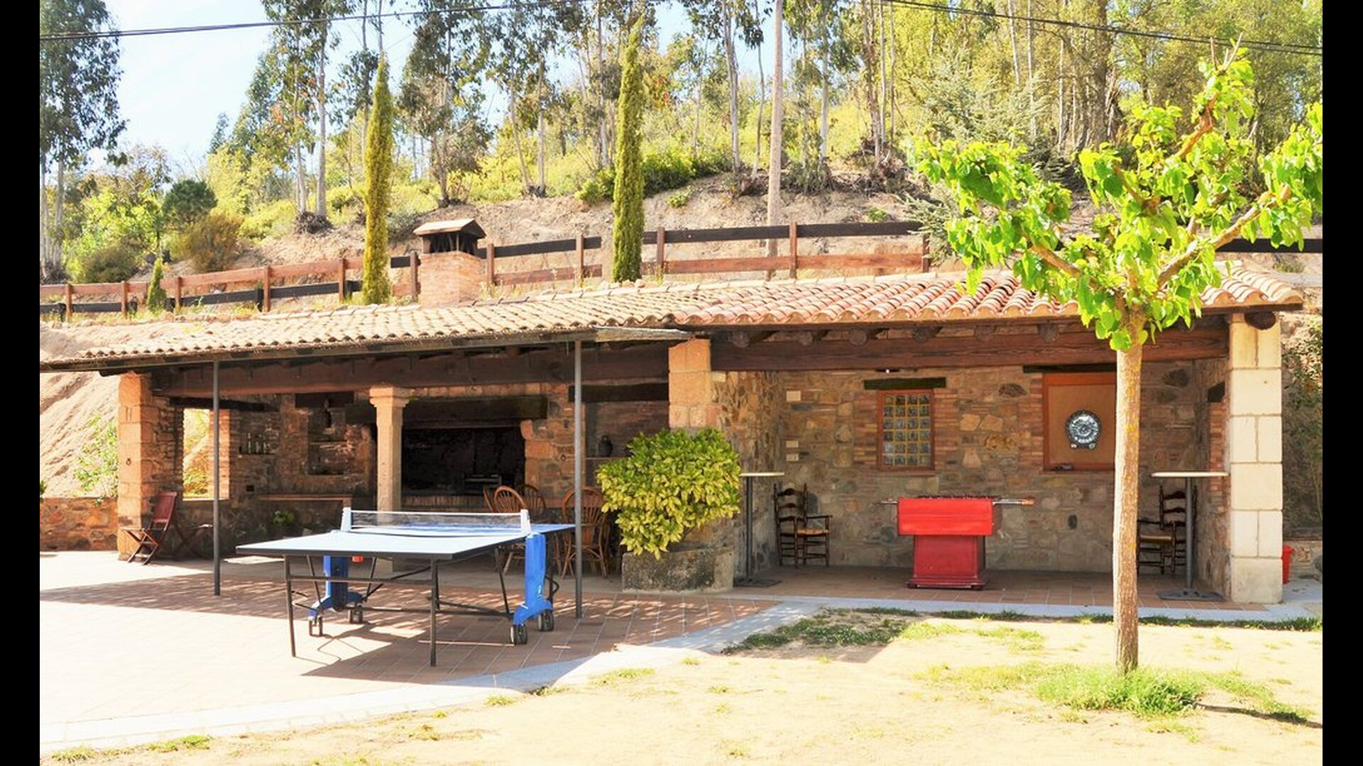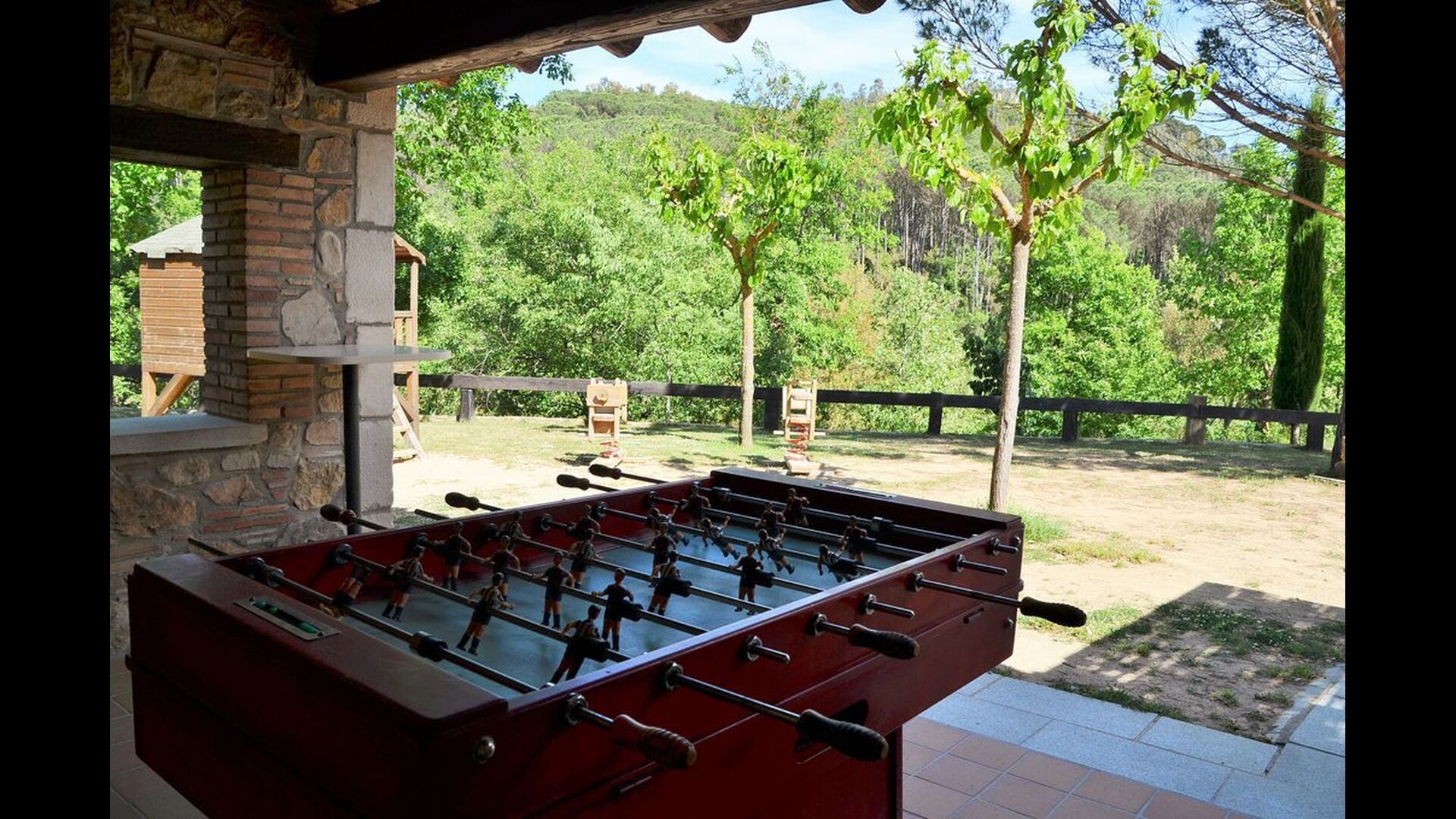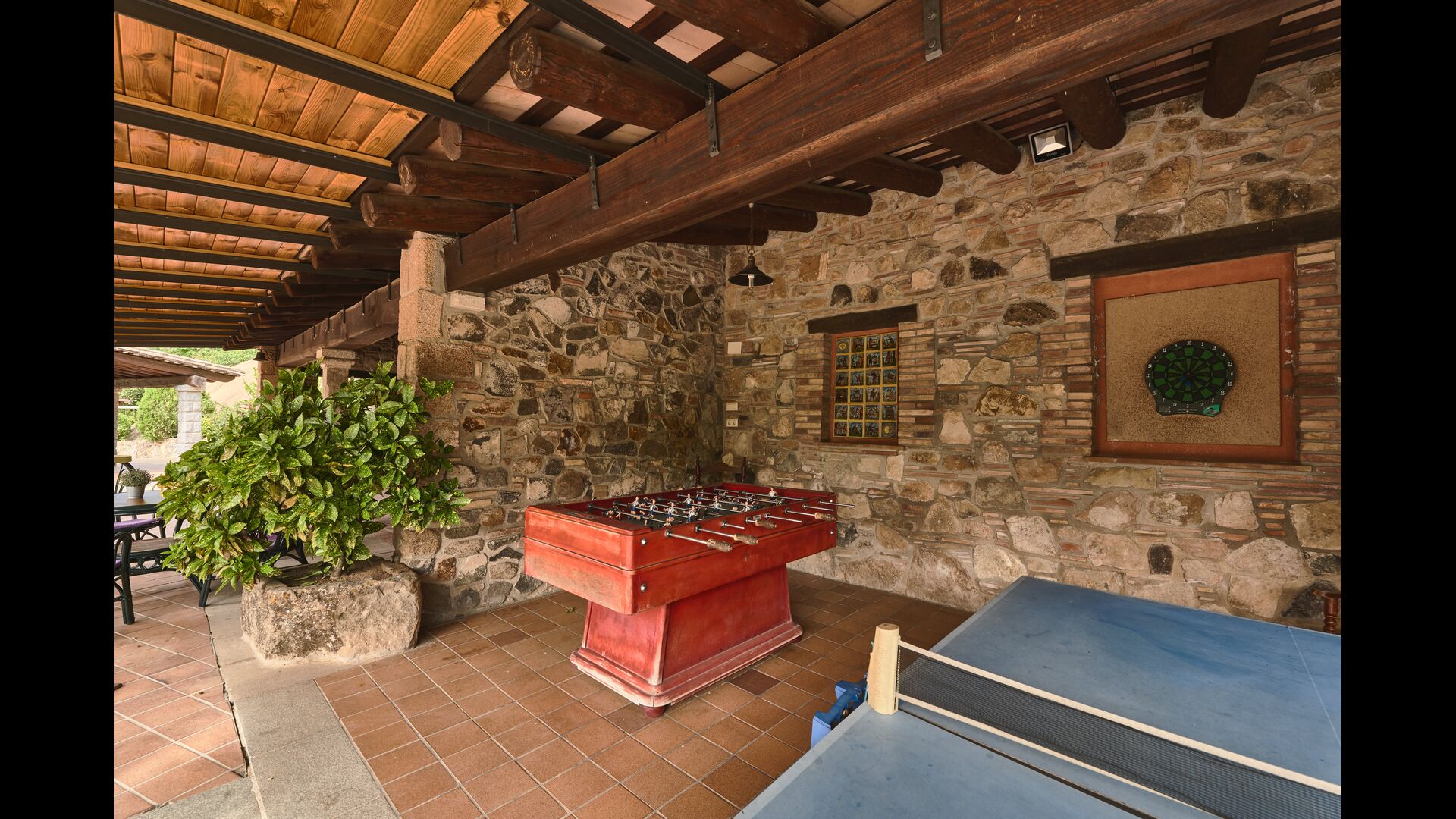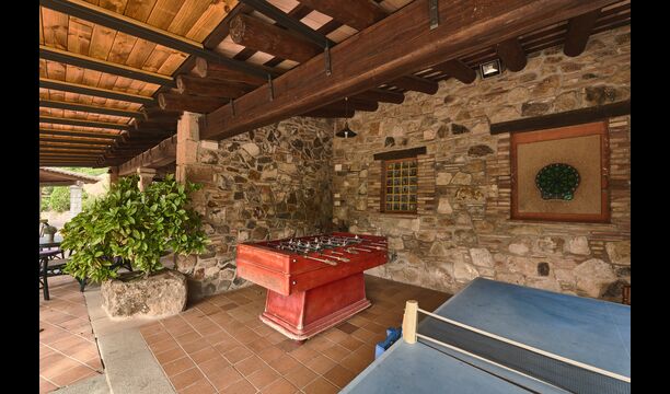 Auf der anderen Seite des Hauses, neben der zweiten Außenterrasse finden Sie eine überdachte Fläche mit Dart, Tischfußball und Tischtennis, sowie ein Spielhaus mit Mini-Küche und Sandkasten, damit die Kinder sich unterhalten können, während die Eltern entspannen am Esstisch. Hier ist die perfekte Stelle für Mahlzeiten im Freien, gedeckt oder offen, wie Sie es bevorzugen, da es Verbindungstüre direkt in die Küche gibt, und auf die andere Seite findet man einen großen überdachten Grillplatz. Es gibt auch eine Toilette, damit Sie nicht benötigen das Haus zu betreten.