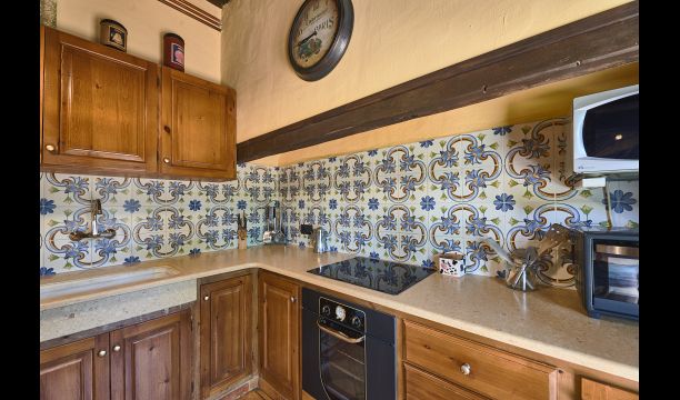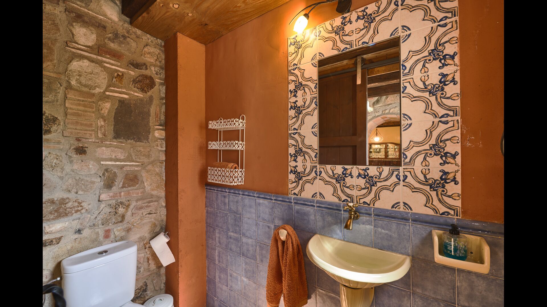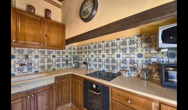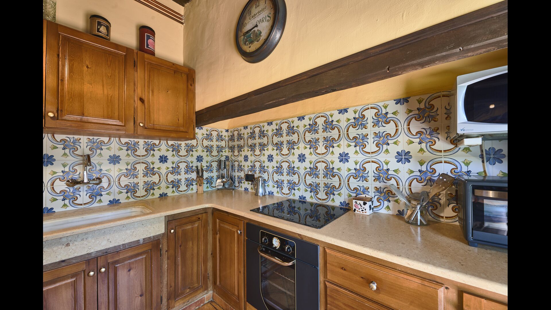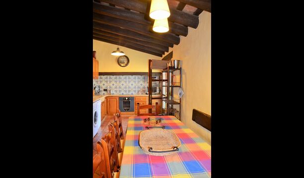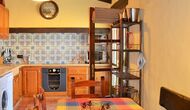 Die Küche ist gut ausgestattet mit Kochplatten, Backofen, Kühlschrank, Gefrierschrank, Mikrowelle, Geschirrspüler, und innen ist sie mit dem Esszimmer verbunden. Das Wohnzimmer mit TV ist mit einem zweiten Esszimmer verbunden. Es gibt auch eine zweite Toilette.