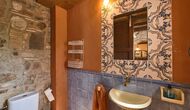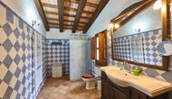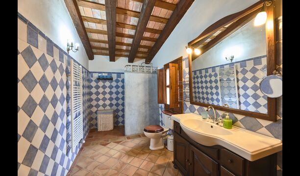 Auf der ersten Etage gibt es eine kleine Sitzecke und 4 moderne Zimmer, alle mit Bad. Ein Schlafzimmer hat ein Doppelbett und ein integriertes Bad mit einer halben Wand, sehr schöne Lösung. Das zweite Schlafzimmer ist sehr groß, mit zwei kleinen Doppelbetten und eigenem Bad. Hier können 2 + 2 Personen (Kinder) schlafen.