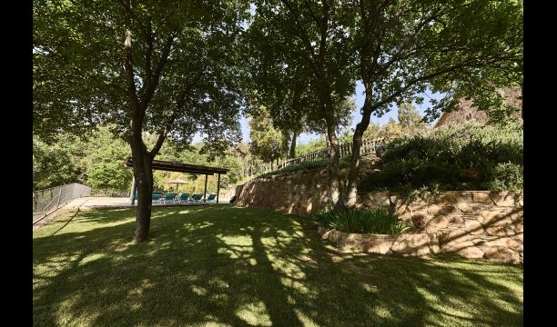 Die Außenanlagen sind herrlich und die Gartenanlage ist sehr groß. Hier werden Sie einen eingezäunten und gesicherten Pool-Bereich finden, mit vielen Sonnenliegen und einem überdachte Entspannungsbereich, wo Sie einen Snack oder ein Glas Wein am Pool genießen können. Der Swimmingpool ist ideal für Kinder, da es römische Treppe hat und es ist auch eingezäunt, damit die jüngsten nicht unbeaufsichtigt hinein kommen können.