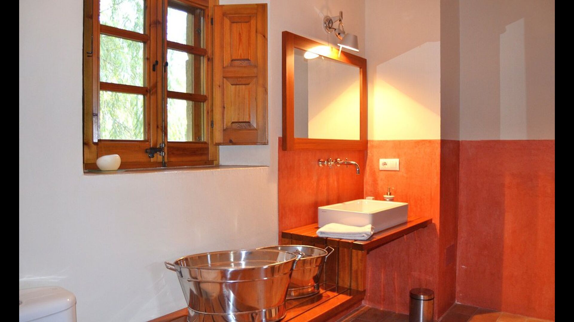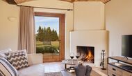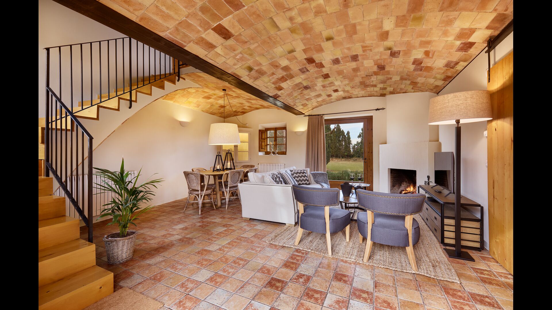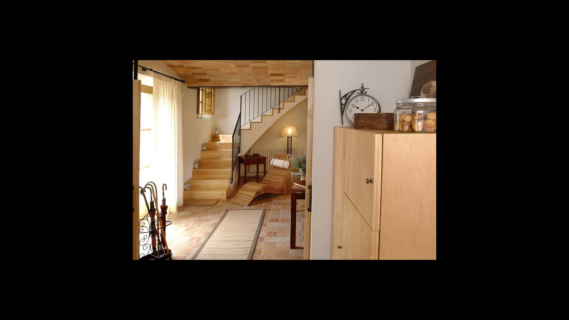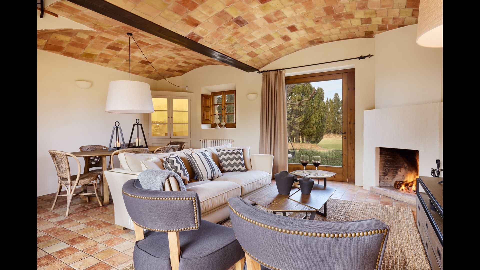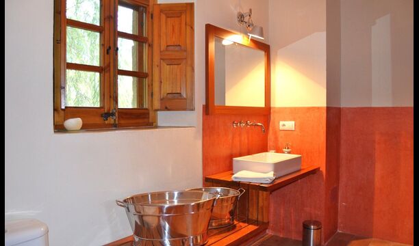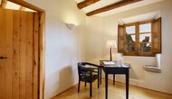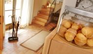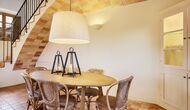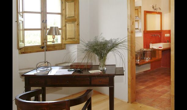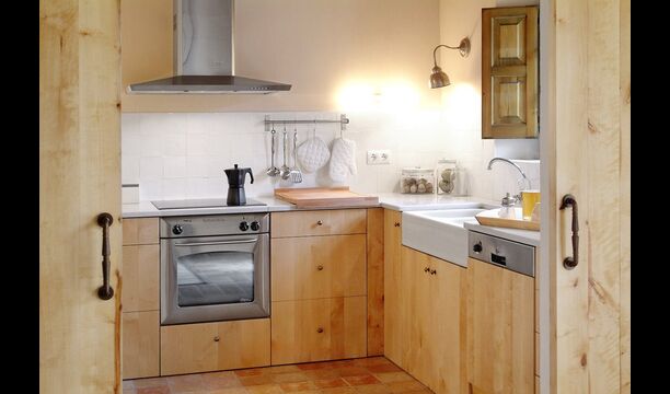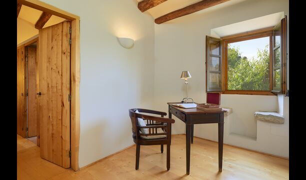 Vorderseite der schönen Ferienwohnung hat Blick auf den großen Garten. Das Haus mit seinen Steinmauern hat eine sehr authentische und rustikale Atmosphäre. Die Wohnung verfügt über eine Terrasse, wo Sie Ihre hausgemachte Mahlzeiten während der warmen katalanischen Abenden genießen können.
