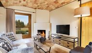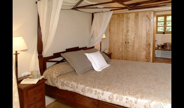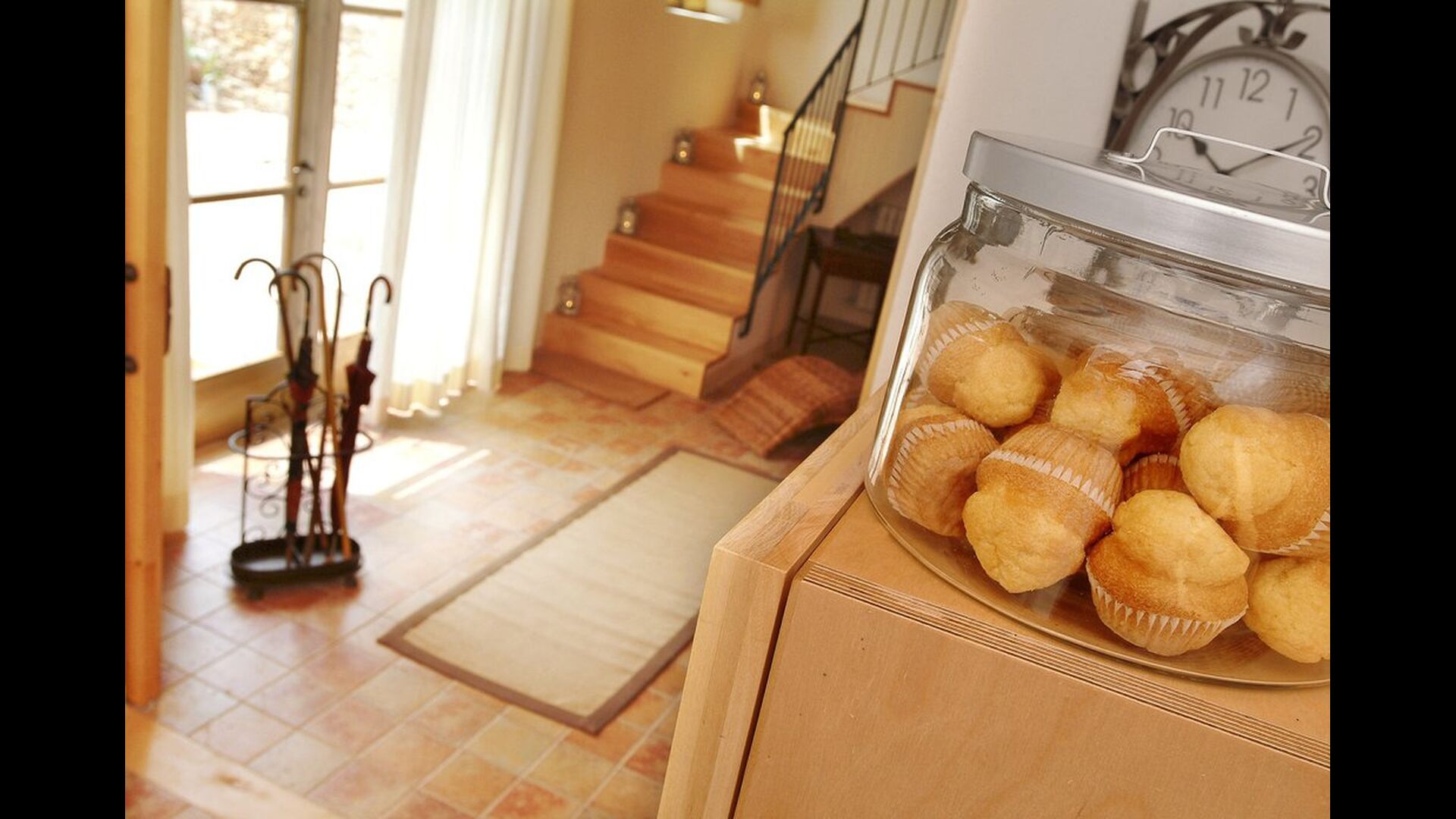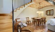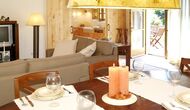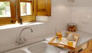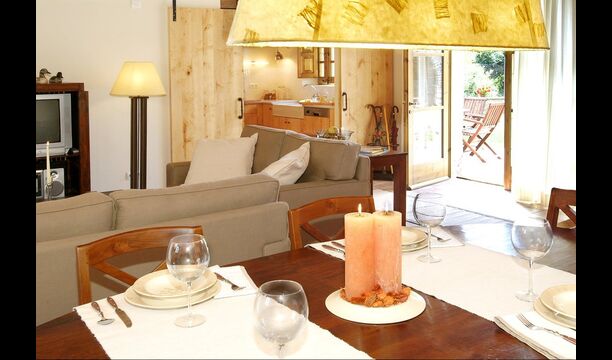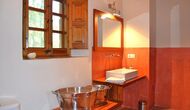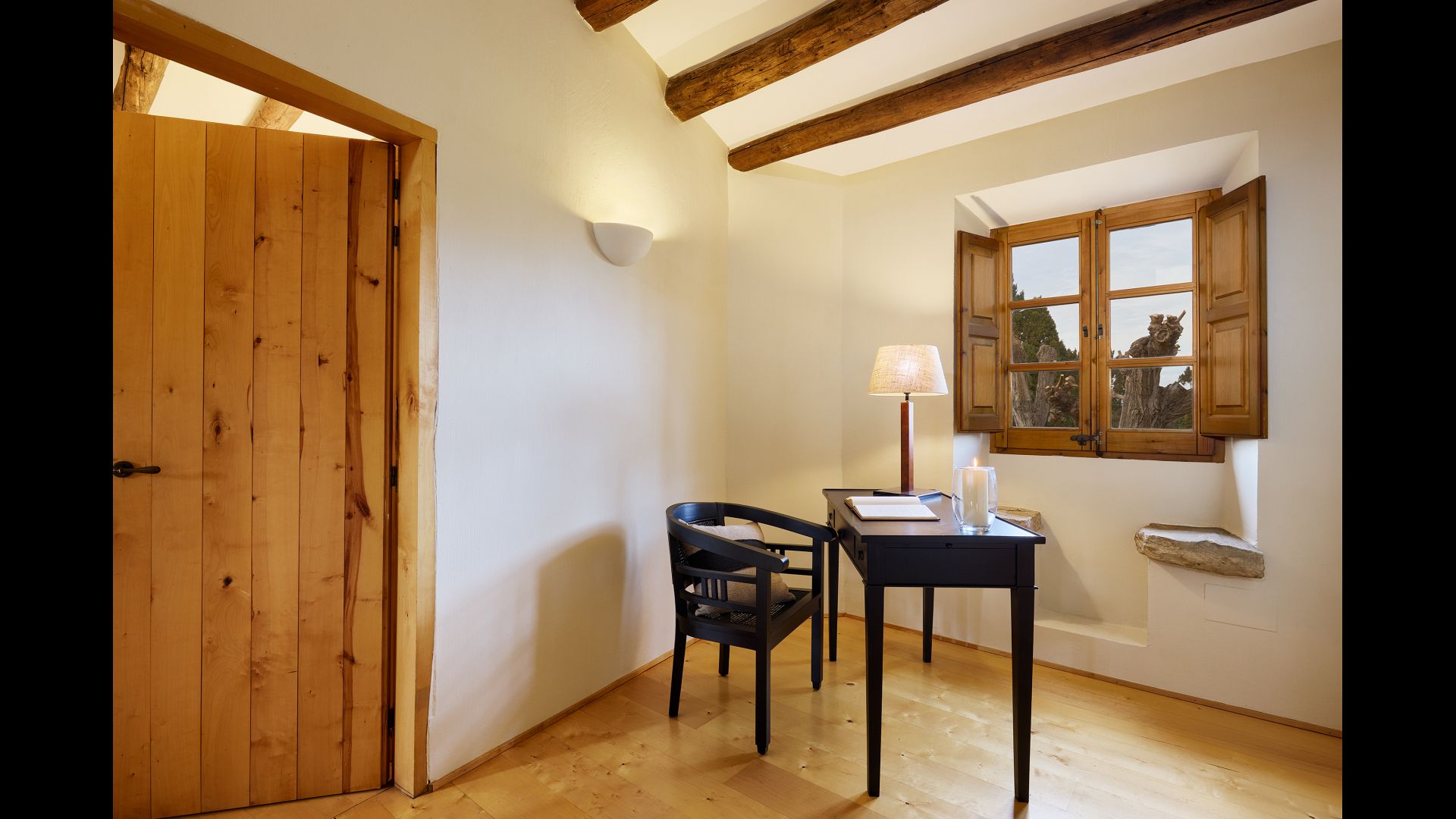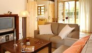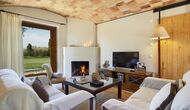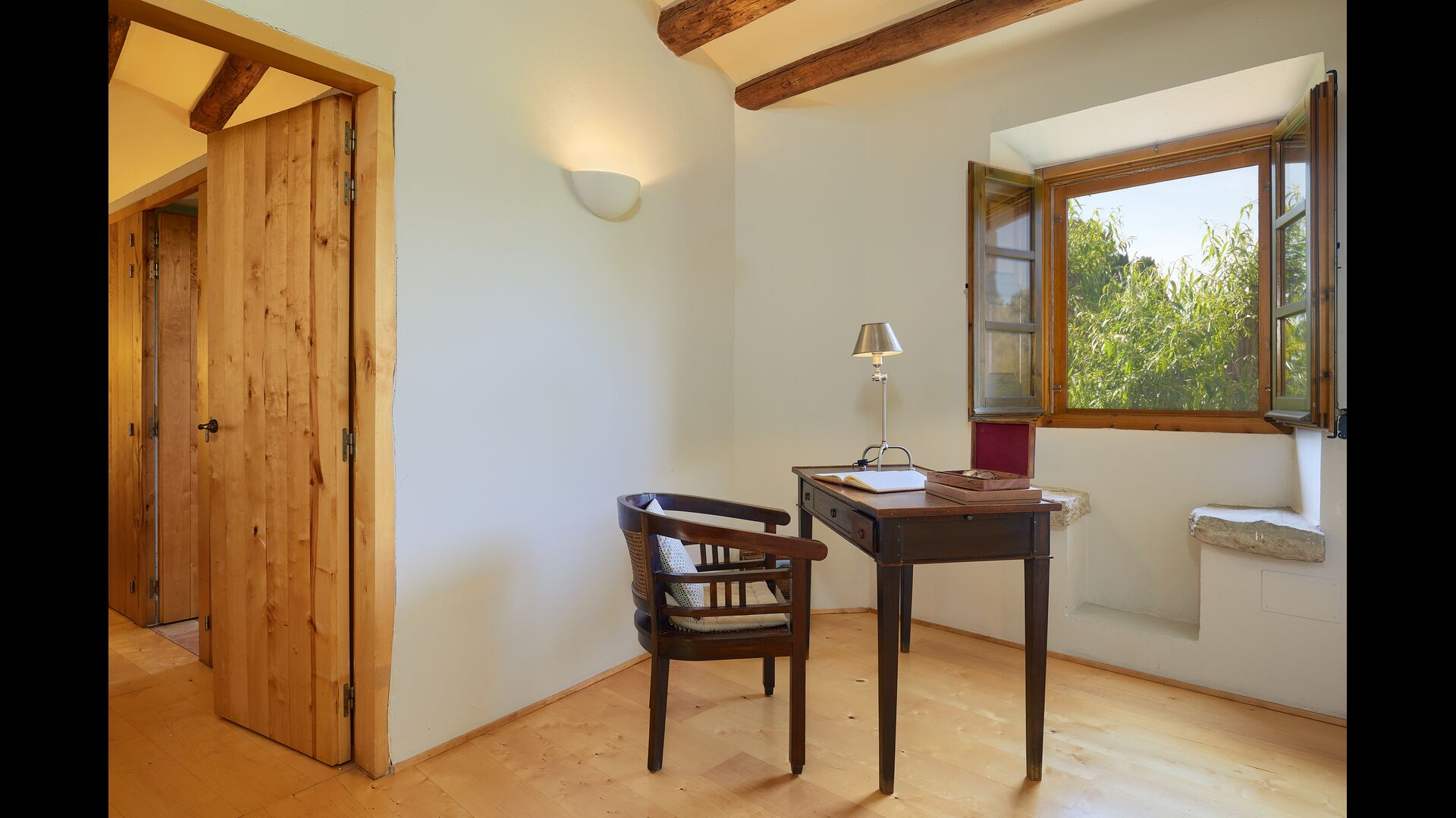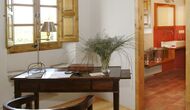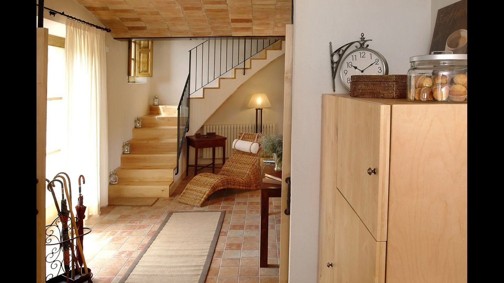Vorderseite der schönen Ferienwohnung hat Blick auf den großen Garten. Das Haus mit seinen Steinmauern hat eine sehr authentische und rustikale Atmosphäre. Die Wohnung verfügt über eine Terrasse, wo Sie Ihre hausgemachte Mahlzeiten während der warmen katalanischen Abenden genießen können.
