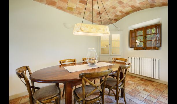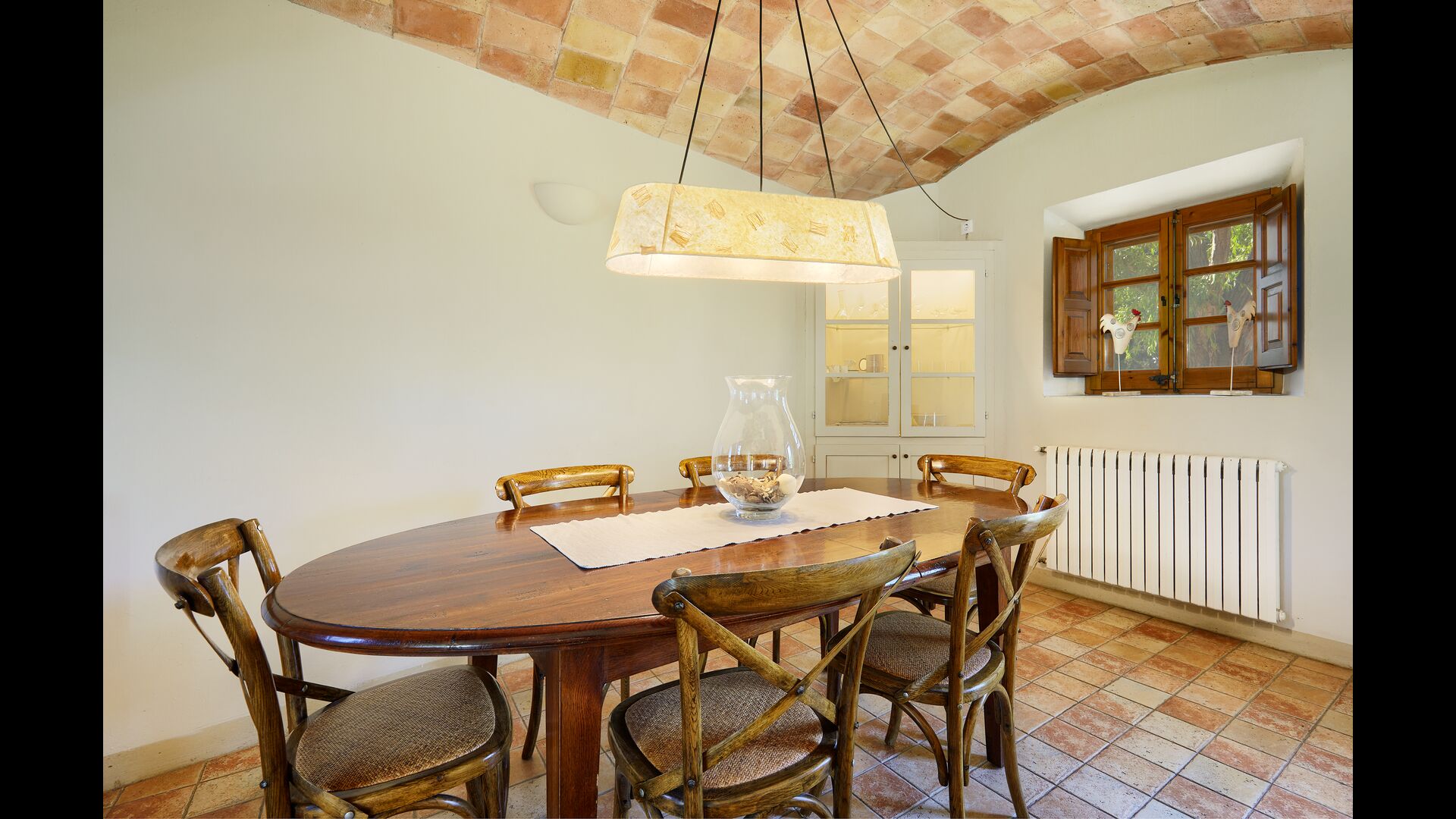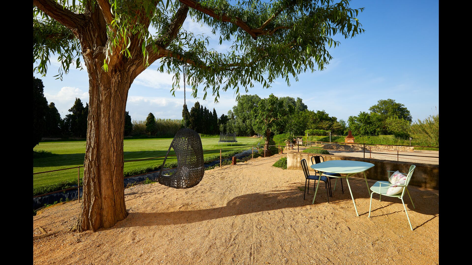 Draußen gibt es einen relativ großen Garten. Es gibt einen gemeinsamen 50m2 Pool den ein sicherer Hit bei den Kindern ist, die sicherlich viel Zeit in ihm verbringen werden. Besonders in den Sommermonaten, wenn es sehr heiß in Katalonien ist, ist es wesentlich dass man nach einer sehr kurzen Zeit gekühlt werden kann. Darüber hinaus gibt es einen großen Grill im Garten mit einem gehörigen abgedeckten Esstisch, wo Sie die frisch zubereiteten Speisen in den warmen katalanischen Abenden genießen können. Darüber hinaus gibt es mehrere Sitzgelegenheiten rund um den Garten. Für die kleinere Gruppe ist ein kleiner Spielplatz mit Spielhaus und Schaukel.