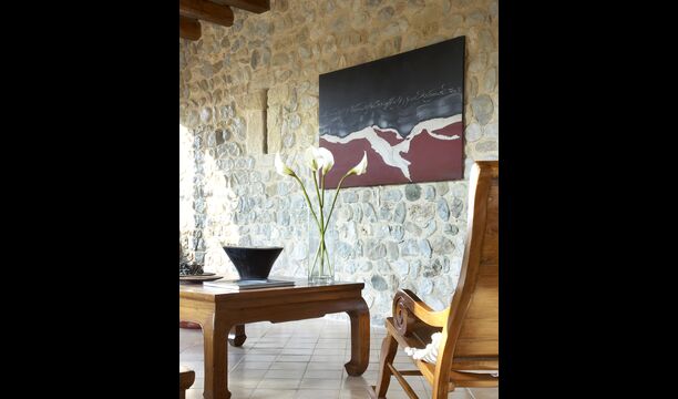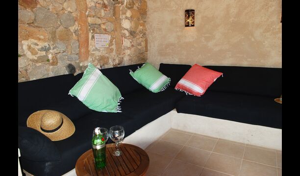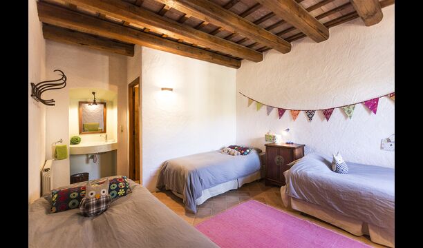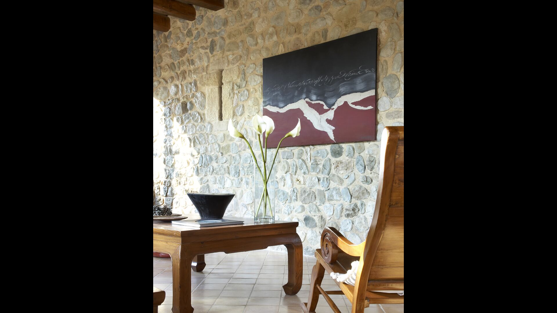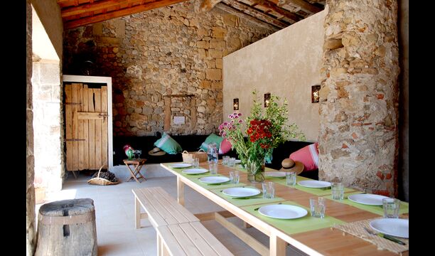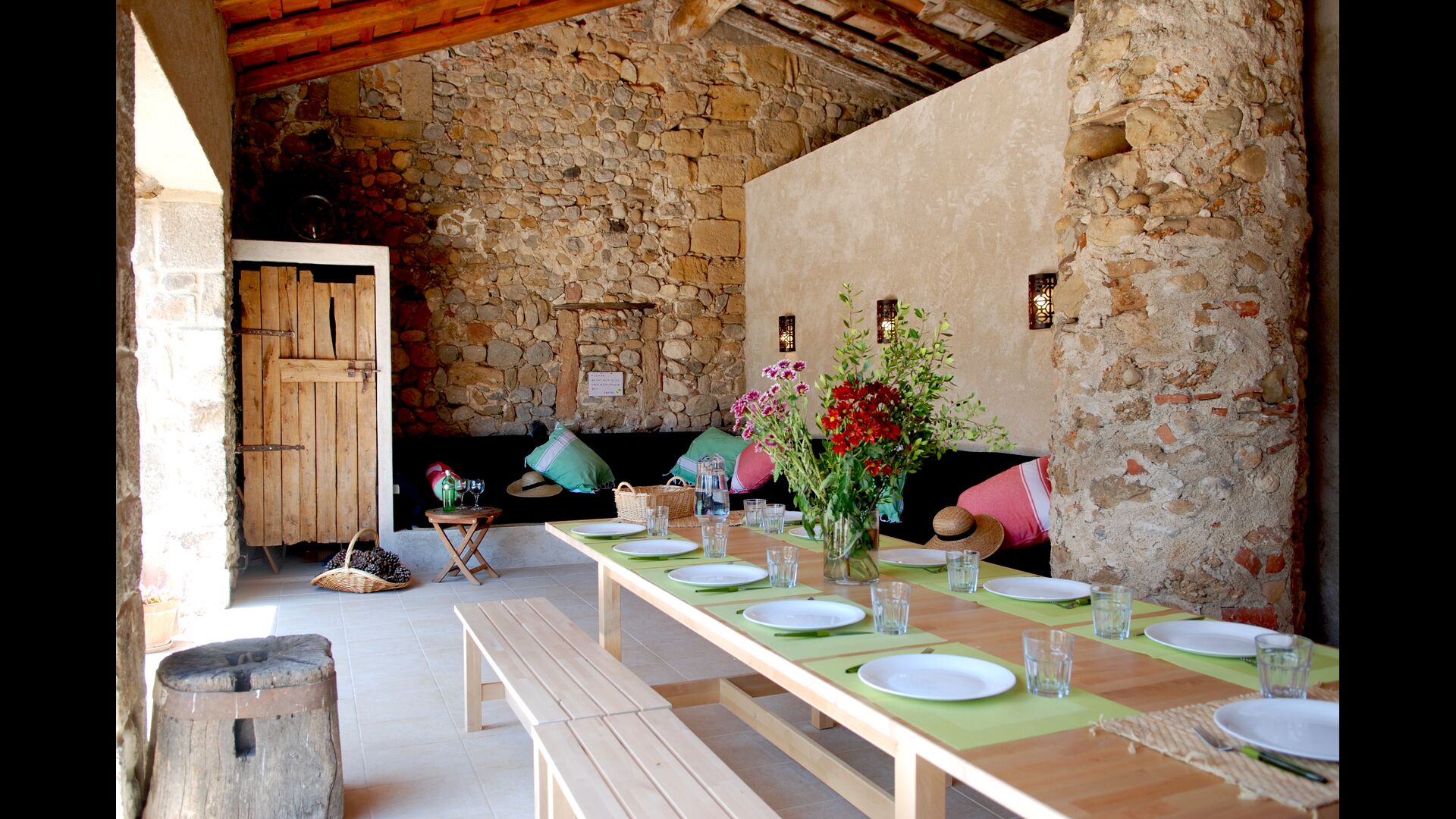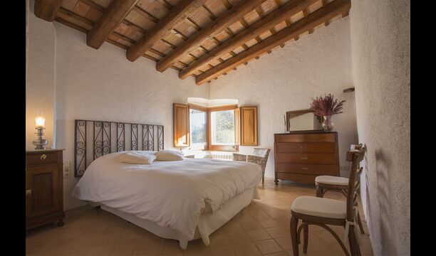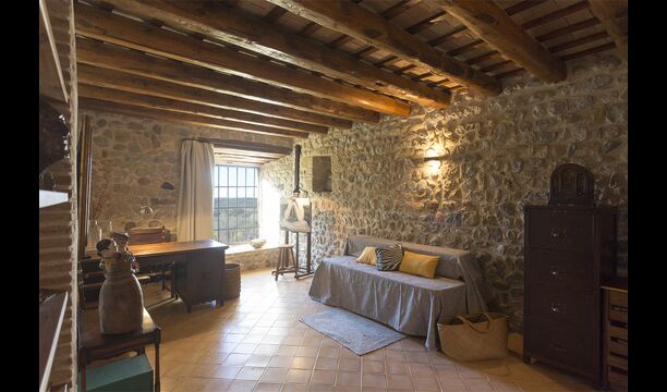 Das Haus ist ein privates Ferienhaus, das im Winter von der Besitzer, ein wohlhabender Mann aus Barcelona, benutzt wird, aber im Sommer wird es vermietet. Deshalb, trotz des Hauses "400m2, gibt es nur vier umfangreichen Bett-Zimmer im ersten Stock, alle mit eigenem Bad. Im Erdgeschoss, kann ein großes Büro als ein fünftes Bett-Zimmer benutzt werden. Die Gesamtkapazität:12 Personen. Das Haus ist unter anderem die Ausgangspunkt für eine Fotoserie mit Fokus auf Ferienwohnungen in einem Magazin von Haus-Design gewesen.