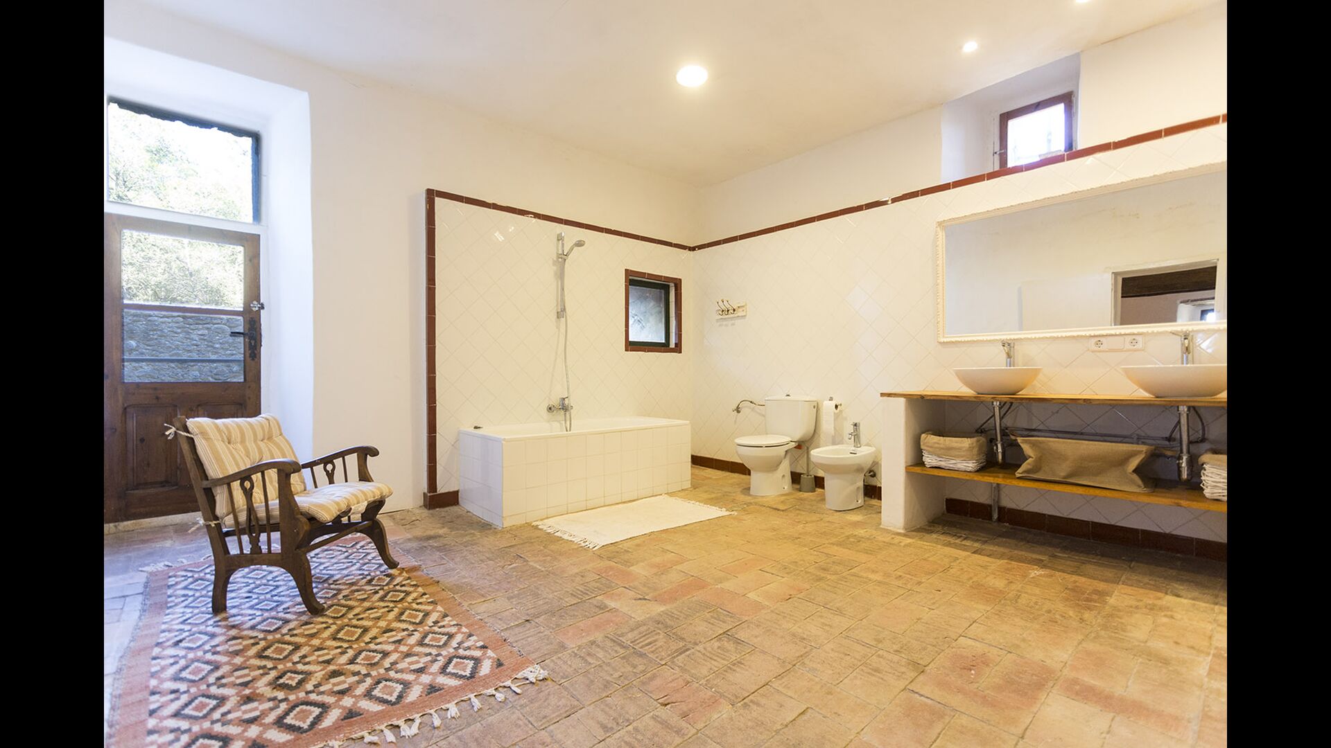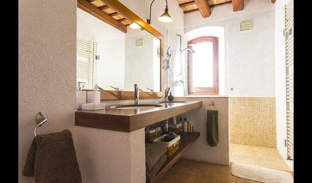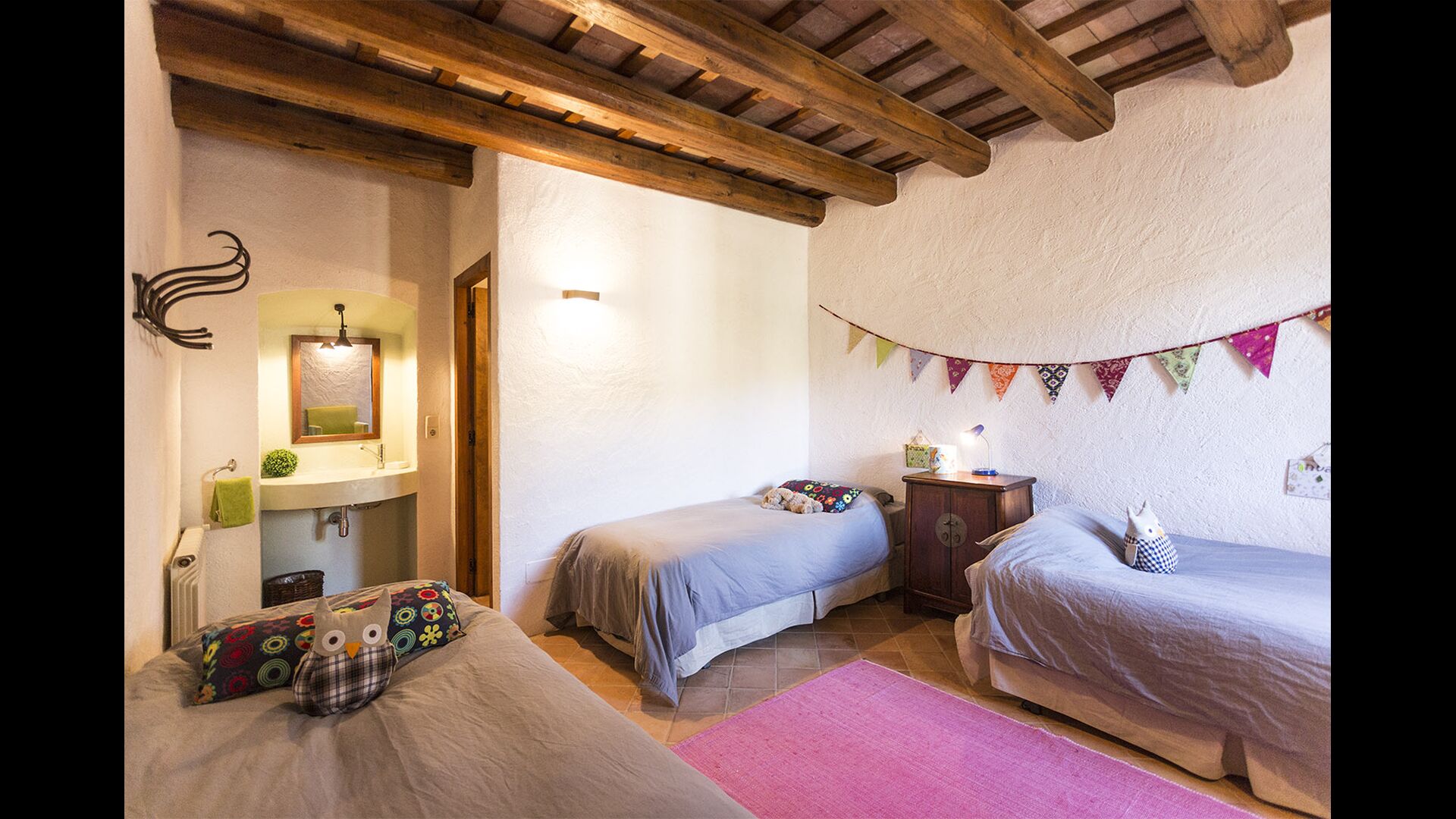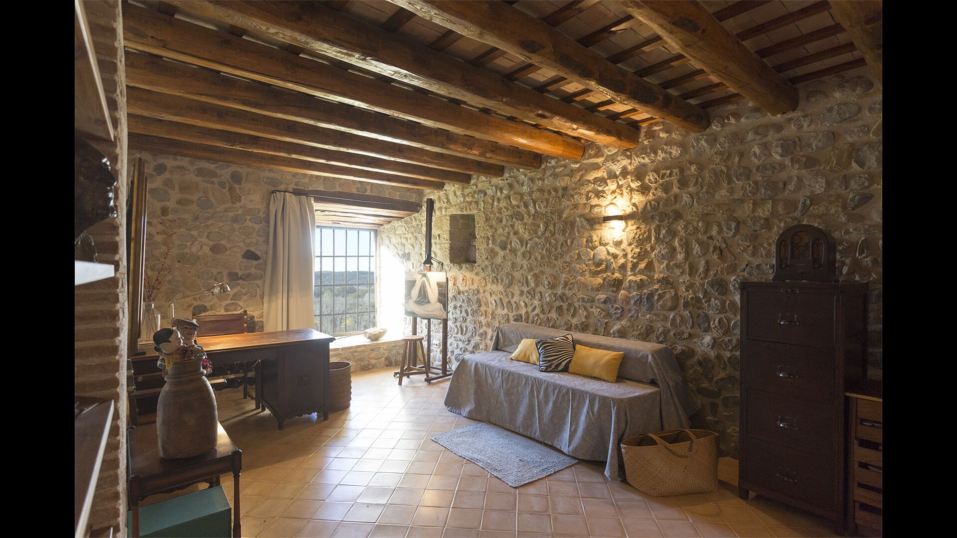 Im ersten Stock finden Sie einen großen Saal mit vier anstoßenden Doppelzimmer. Jedes Zimmer ist zwischen 30 und 40m2, drei von ihnen haben Doppelbetten und die vierte verfügt über zwei Einzelbetten. Jedes Zimmer haben anstoßende moderne Badezimmer, und drei von ihnen Badewannen mit Whirlpool. Von jedem Zimmer haben Sie eine hervorragende Aussicht auf bzw. die Pool-Bereich oder die schöne katalonische Landschaft. Im Jahr 2009, bekommt das Haus eine Klimaanlage..