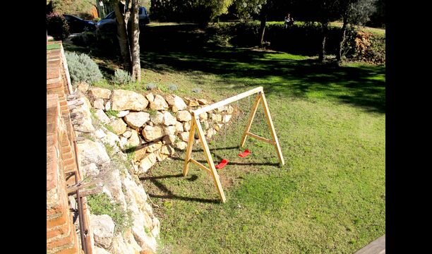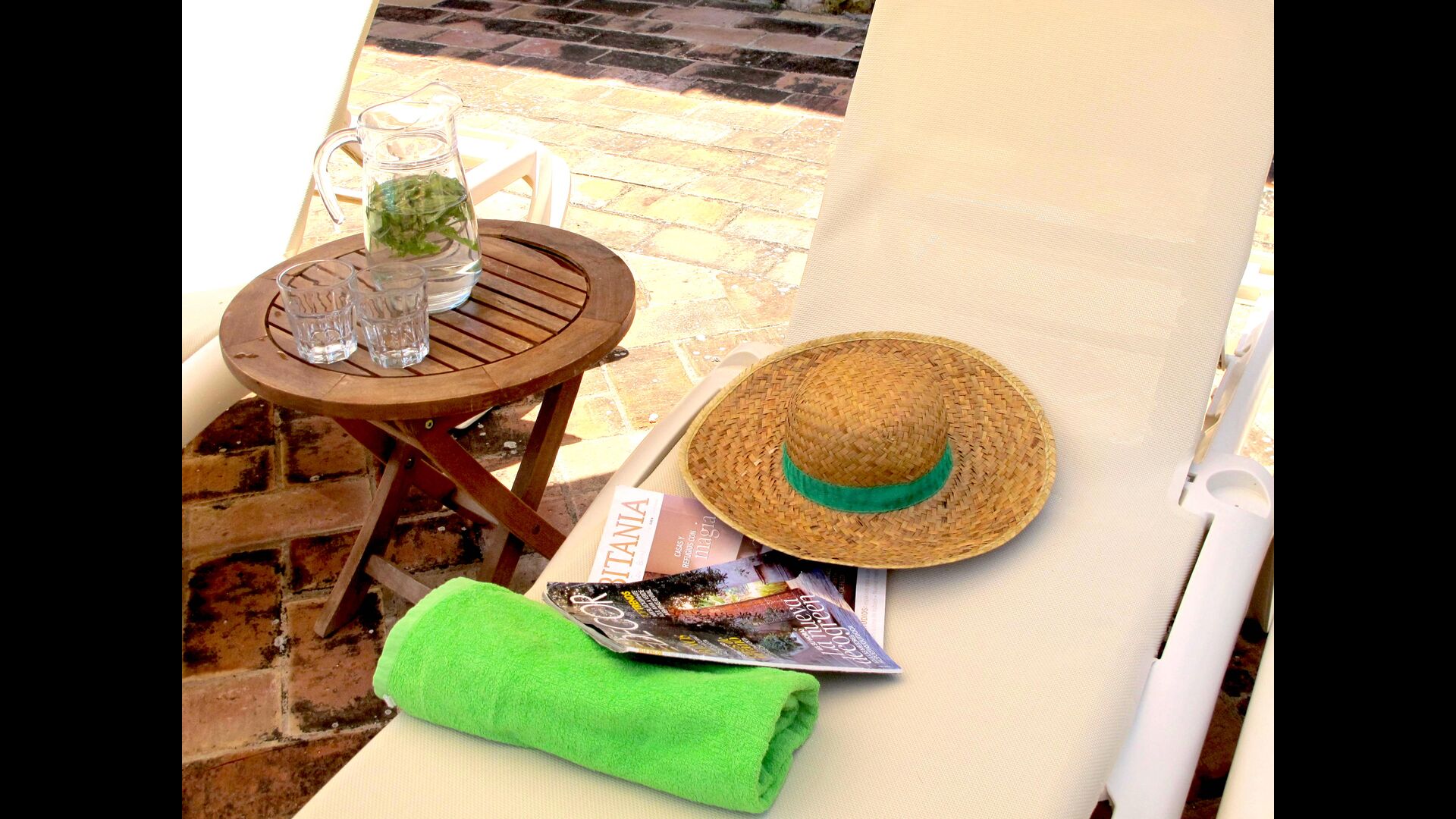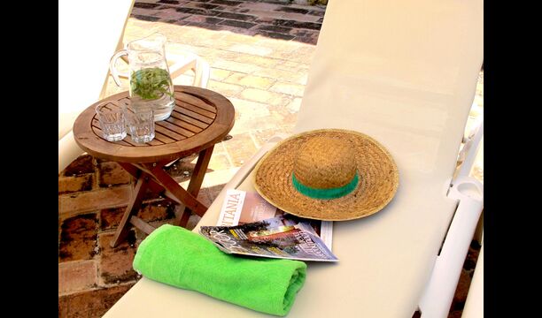 Im Freien findet man auf der Vorderseite des Hauses, den Kalkstein-Mauer der den Pool-Bereich umgibt. Der Swimmingpool ist 10 x 5 Meter, und nach einem erfrischenden Bad, können Sie in einem der Liegestühle trocknen oder - wenn Sie Motion brauchen, Tischtennis spielen. Auf der Ost-Seite des Hauses, finden Sie die Terrasse mit Tisch, Stühlen und Sonnenschirmen, die groß genug für die gesamte Gruppe gemeinsam zu essen ist. An der Südseite des Hauses befindet sich ein Rasen und ein Pfad führt hinunter zum Fluss. Es besteht die Möglichkeit, ein erfrischendes Bad im Fluss zu nehmen.