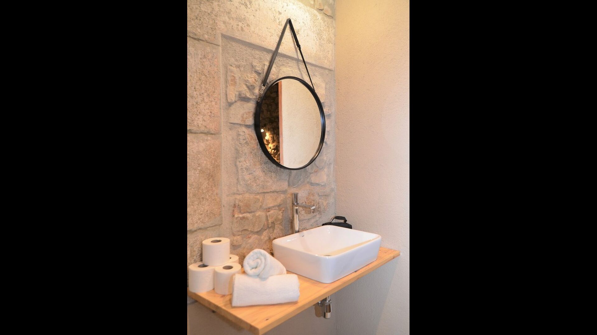 The house is divided into "apartments", which means that the rooms are distributed into separate units around the castle, where there are several rooms in many of the units. There is a total of seven of these "apartments" with 10 rooms and space for 26 people in total. With the 10 rooms comes 6 bathrooms of which 3 are en-suite. Furthermore, 2 of the rooms have direct access to the pool area. There are multiple well-equipped kitchens as well as a living room with flat-screen TV and several seating arrangements. There is also, in connection with the kitchens, several dining tables, so you can enjoy meals together.