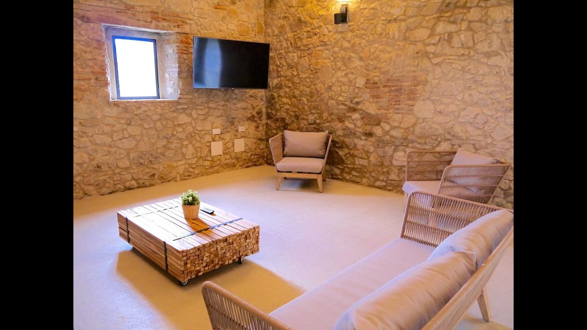 The holiday home’s facilities are numerous - the highlight is of course the 15-meter pool that overlooks the horizon and the beautiful scenery. The pool has varying depths and a Jacuzzi function at one end. With the pool comes several sun loungers and other seating arrangements, where you can sit with a cold drink and enjoy the view and the lovely Catalan sun with the unique opportunity to just take a dip in the refreshing water at any given time. On the same side of the house as the pool, lies the beautiful garden with several levels and all sorts of beautiful flowers and plants - but in reality, the entire area is your garden; you can freely move in the countryside that surrounds the castle. Besides this, there is a large courtyard with room for almost everything in might want - you can, for instance, move the mobile grill in there and have a barbecue party.