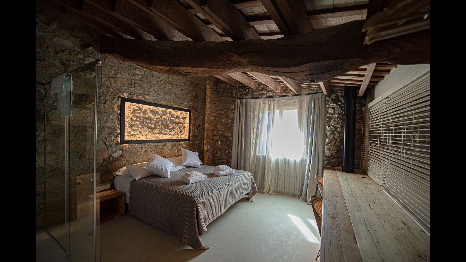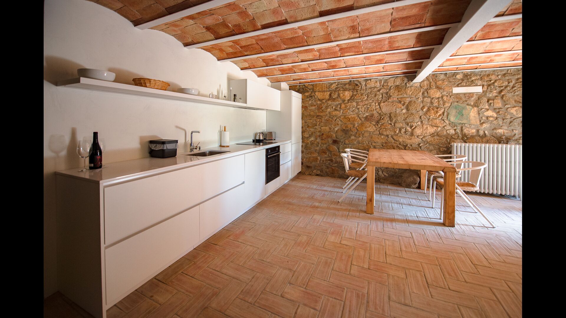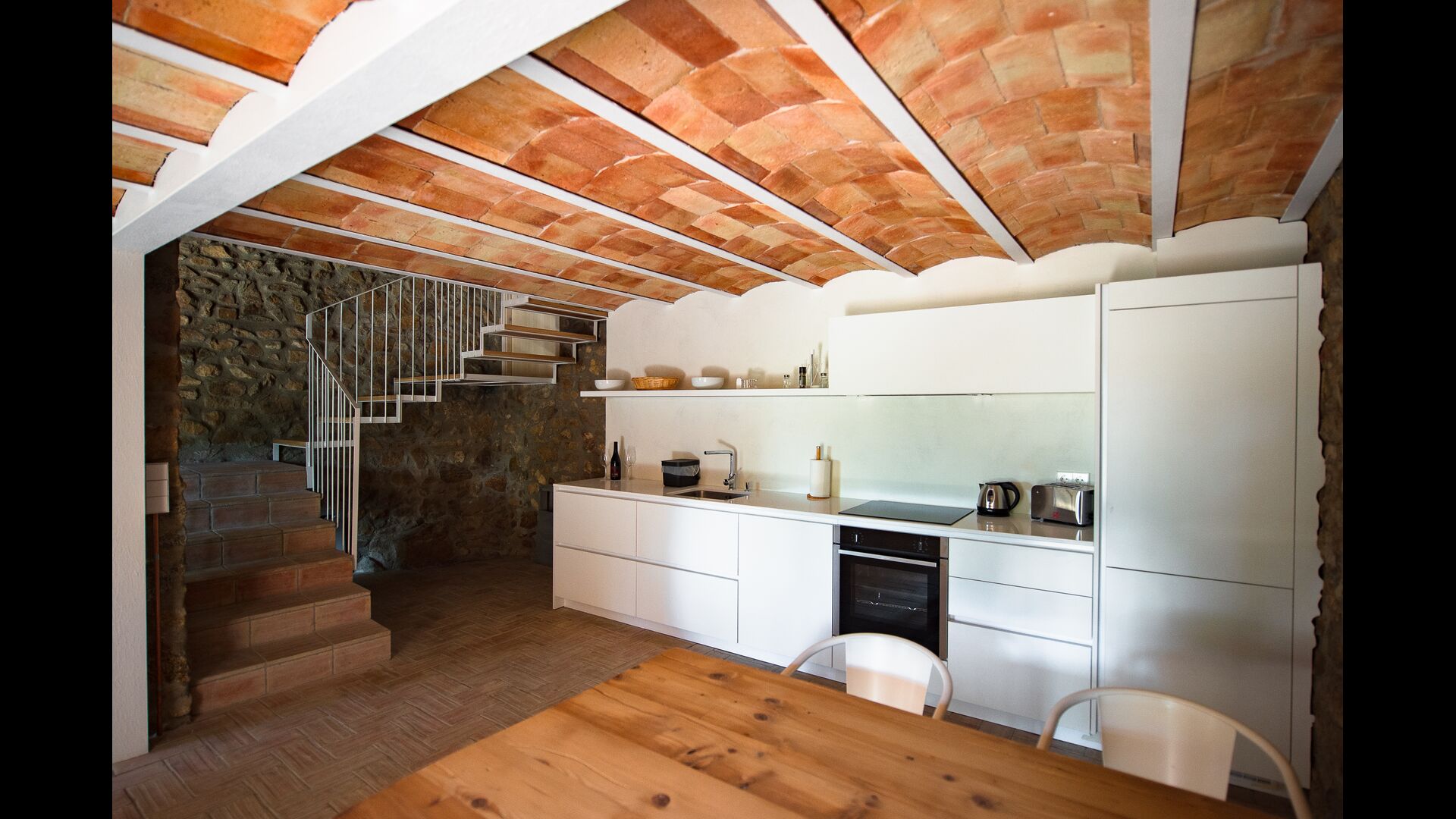 El Mas besteht aus vier rustikalen Häusern oder Apartments mit modernem Komfort, die sieben geräumige Boutique-Zimmer mit Biomasseheizung, Klimaanlage, umweltfreundlichen Badezimmersets, Hausschuhen und hochwertigen Handtüchern bieten. Beide Hauptgebäude verfügen über eine voll ausgestattete Küche mit einfachem Zugang zum Garten für Mahlzeiten im Freien.