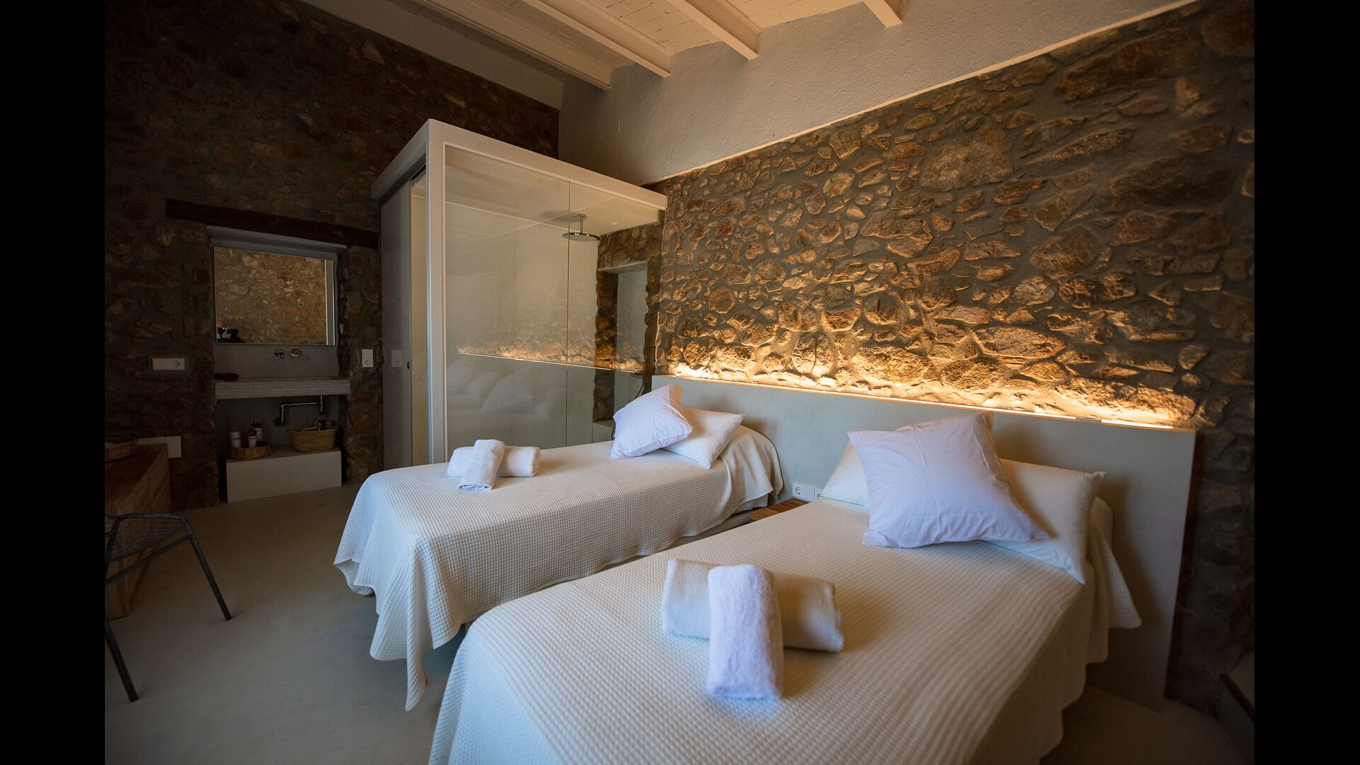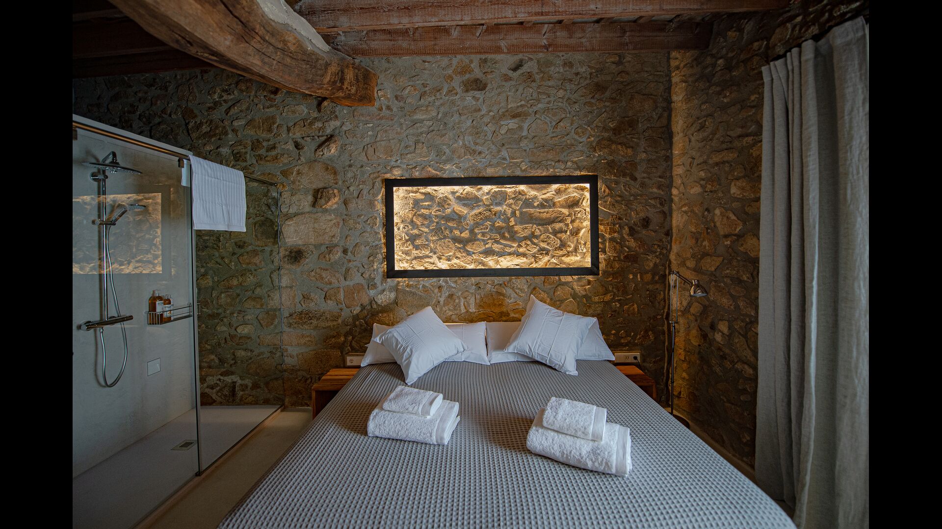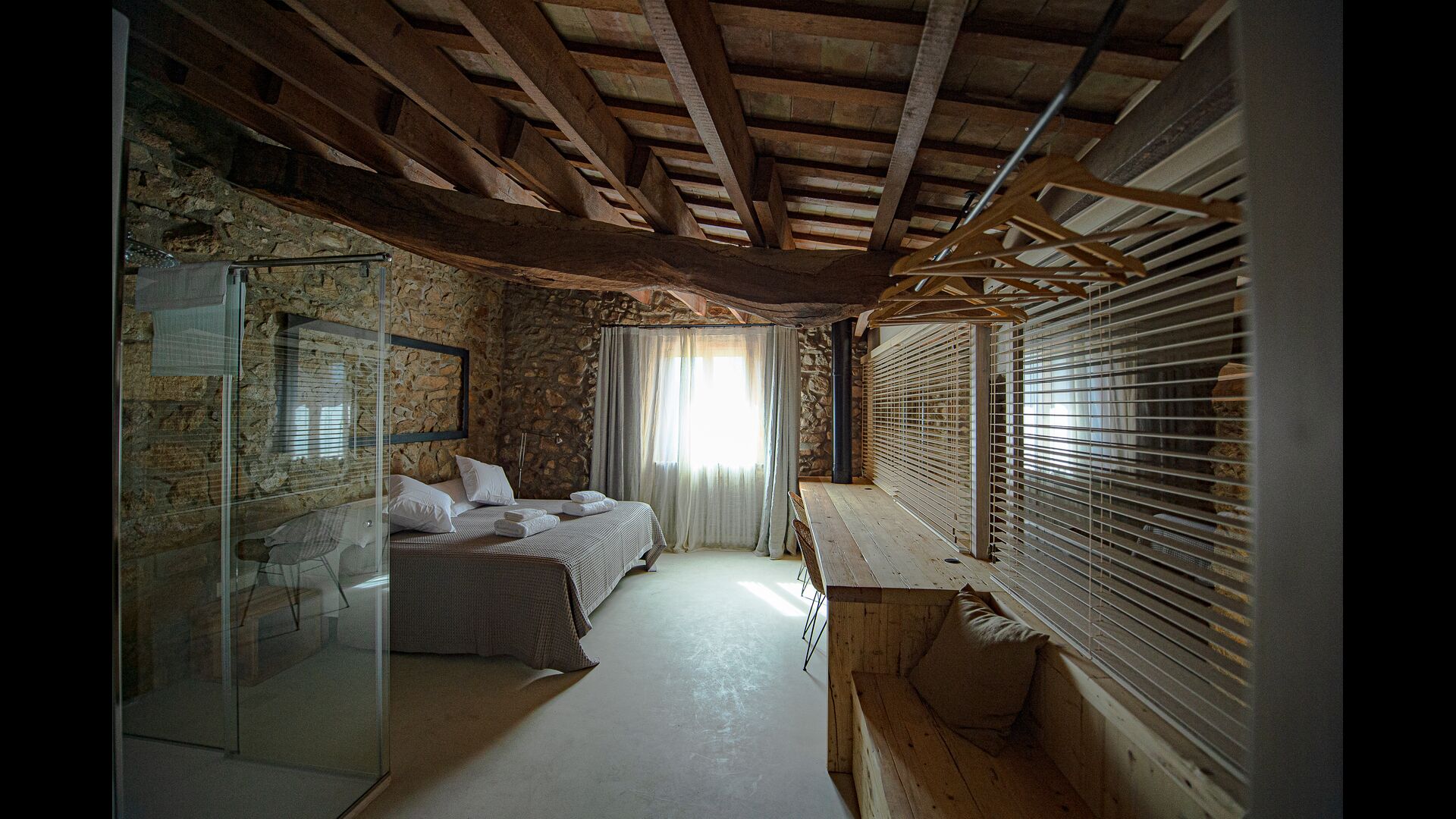 El Mas besteht aus vier rustikalen Häusern oder Apartments mit modernem Komfort, die sieben geräumige Boutique-Zimmer mit Biomasseheizung, Klimaanlage, umweltfreundlichen Badezimmersets, Hausschuhen und hochwertigen Handtüchern bieten. Beide Hauptgebäude verfügen über eine voll ausgestattete Küche mit einfachem Zugang zum Garten für Mahlzeiten im Freien.