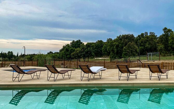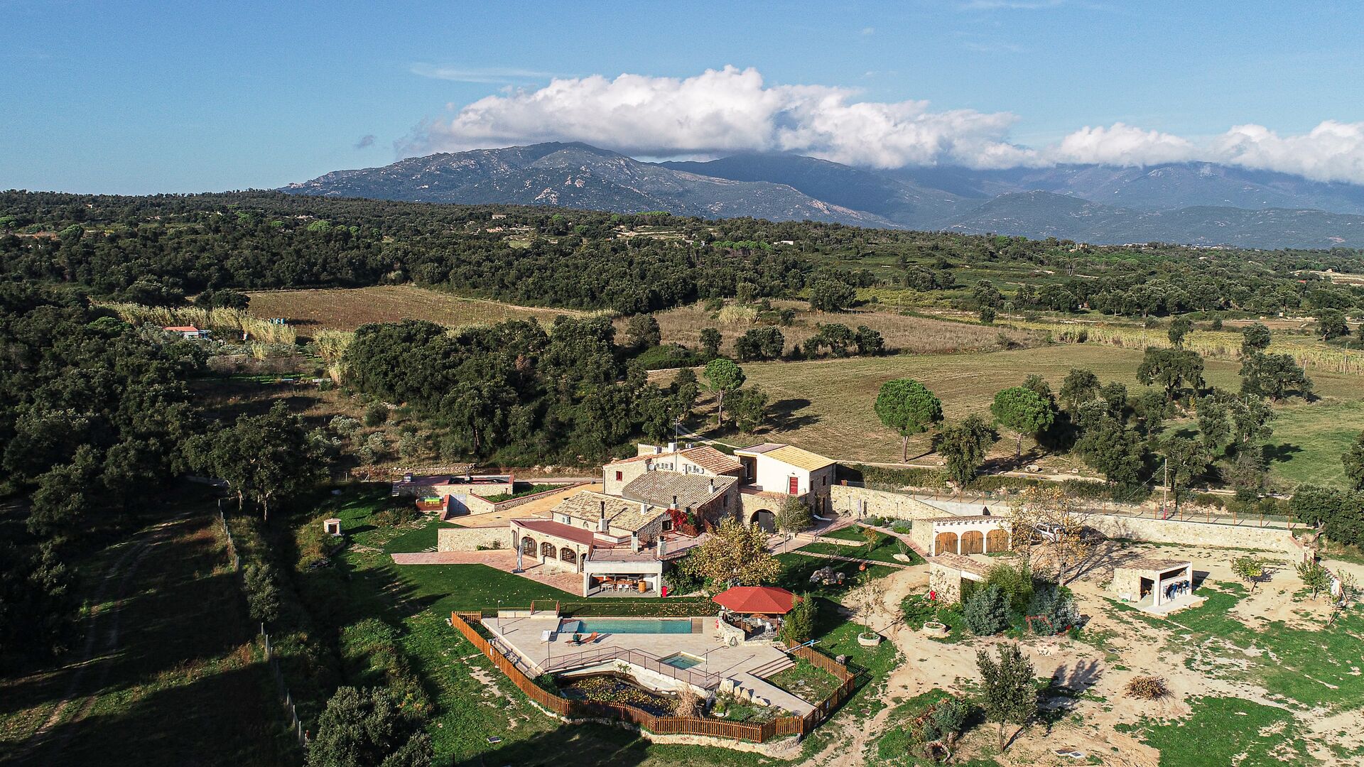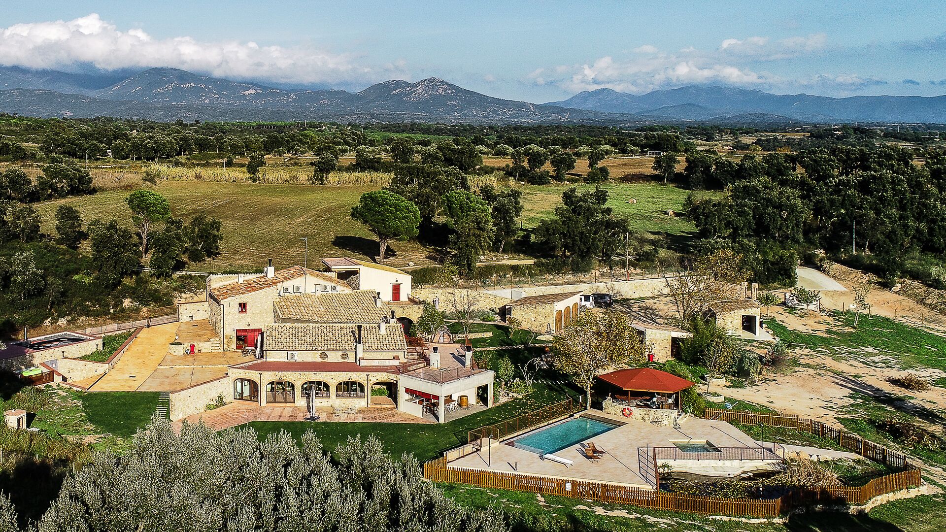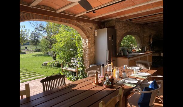 Im Garten gibt es viele verschiedene Räume und Ecken, zwei große Veranden mit Grillmöglichkeiten und auch einen schönen Pavillon aus Stein und Holz, alles am Pool und Whirlpool, beide Salzwasser. Sie finden auch Sportgeräte wie einige Fahrräder, Schläger, Netze, Bälle, Tore und traditionelles katalanisches Bowling. Erwähnenswert sind auch die vielzahligen Routen zum Wandern, Radfahren oder Mountainbiken, die das Mas umgeben.